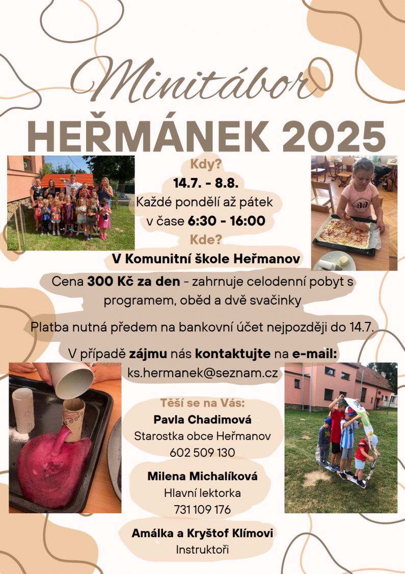 Těšit se můžete na tancování v krojích na parketě, na minitábor Heřmánek pro děti, tradiční Heřmanovskou pouť a také Karmelskou pouť ve farnosti Heřmanov.