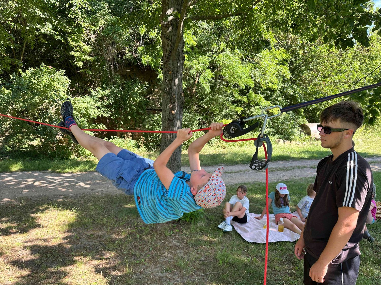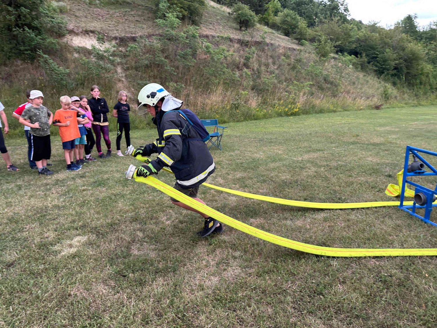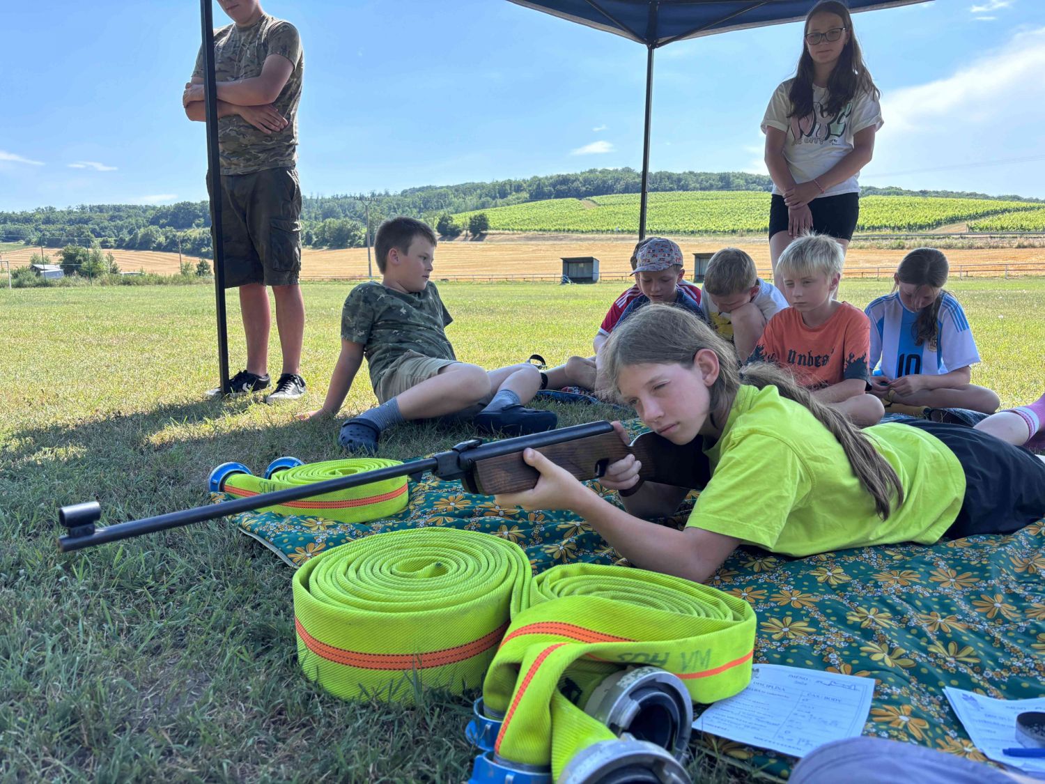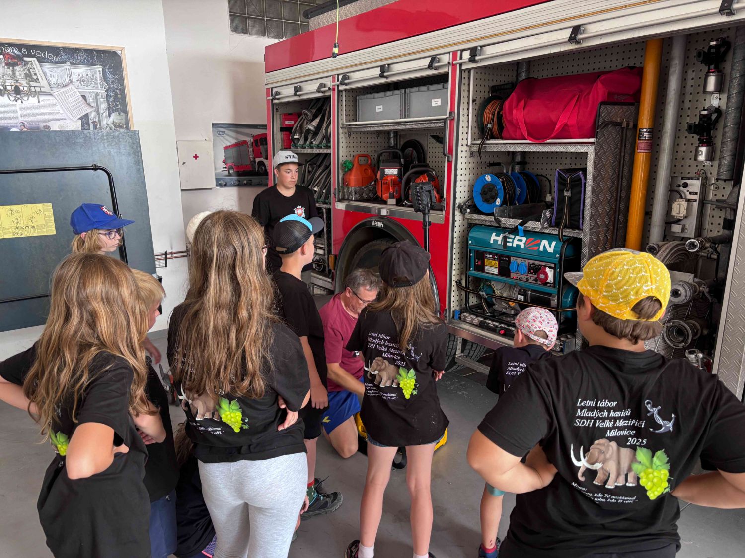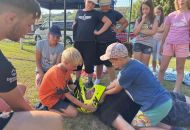 Samozřejmě, co by to bylo za hasičský sportovní tábor, kdyby neprobíhaly tréninky hasičských štafet. Nacvičovali jsme střelbu ze vzduchovky, proběhlo i klání v disciplínách TFA v dětském provedení a mnoho dalších hasičských disciplín v rámci přípravy na podzimní sezónu a hru Plamen. Dětem jsme také přichystali ukázky záchrany osob z výšek pomocí slaňování, přišla řada také na zdravovědu i s praktickými ukázkami včetně záchrany zraněného motorkáře. Děti si vyzkoušely různé metody obvazování zranění i sundání motorkářské helmy ze zraněného. Třešničkou na dortu bylo praktické cvičení, kdy děti prováděli poskytnutí první pomoci člověku se sečným zraněním od sekery. Zde nechyběla ani umělá krev, aby celá akce vypadala věrohodně. Jako publikum se přidaly i ženy – hasičky z domácího SDH Milovice. S dětmi jsme si také povídali o hasičích, jejich činnosti, organizaci a výstroji, kterou si mohli během besedy i prakticky vyzkoušet. Celý táborový týden byl nabytý akcemi, zážitky a soutěžemi. Musíme touto cestou poděkovat všem lidem, kteří nám na našich cestách na táboře vyšli vstříc a všemožně nám pomohli. Na závěr patří poděkování celému organizačnímu a provoznímu týmu letošního tábora, bez nich by to nešlo. Dětem přejeme krásné prázdniny a v září ve zdraví návrat na hasičské tréninky u SDH Velké Meziříčí.