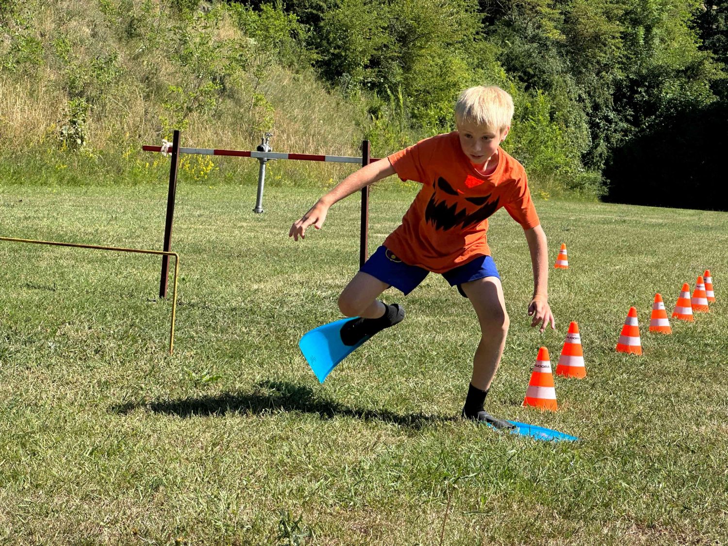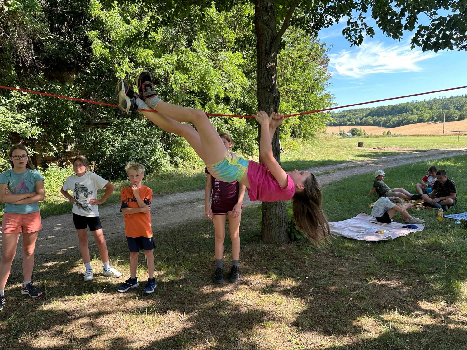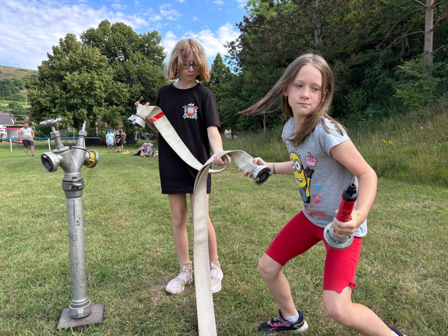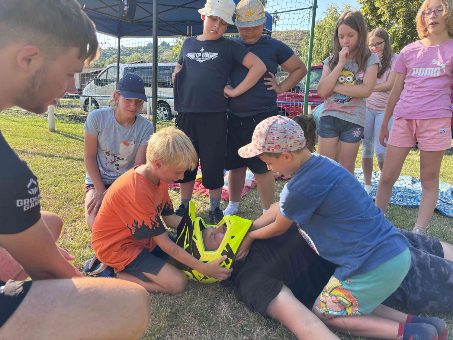 Samozřejmě, co by to bylo za hasičský sportovní tábor, kdyby neprobíhaly tréninky hasičských štafet. Nacvičovali jsme střelbu ze vzduchovky, proběhlo i klání v disciplínách TFA v dětském provedení a mnoho dalších hasičských disciplín v rámci přípravy na podzimní sezónu a hru Plamen. Dětem jsme také přichystali ukázky záchrany osob z výšek pomocí slaňování, přišla řada také na zdravovědu i s praktickými ukázkami včetně záchrany zraněného motorkáře. Děti si vyzkoušely různé metody obvazování zranění i sundání motorkářské helmy ze zraněného. Třešničkou na dortu bylo praktické cvičení, kdy děti prováděli poskytnutí první pomoci člověku se sečným zraněním od sekery. Zde nechyběla ani umělá krev, aby celá akce vypadala věrohodně. Jako publikum se přidaly i ženy – hasičky z domácího SDH Milovice. S dětmi jsme si také povídali o hasičích, jejich činnosti, organizaci a výstroji, kterou si mohli během besedy i prakticky vyzkoušet. Celý táborový týden byl nabytý akcemi, zážitky a soutěžemi. Musíme touto cestou poděkovat všem lidem, kteří nám na našich cestách na táboře vyšli vstříc a všemožně nám pomohli. Na závěr patří poděkování celému organizačnímu a provoznímu týmu letošního tábora, bez nich by to nešlo. Dětem přejeme krásné prázdniny a v září ve zdraví návrat na hasičské tréninky u SDH Velké Meziříčí.