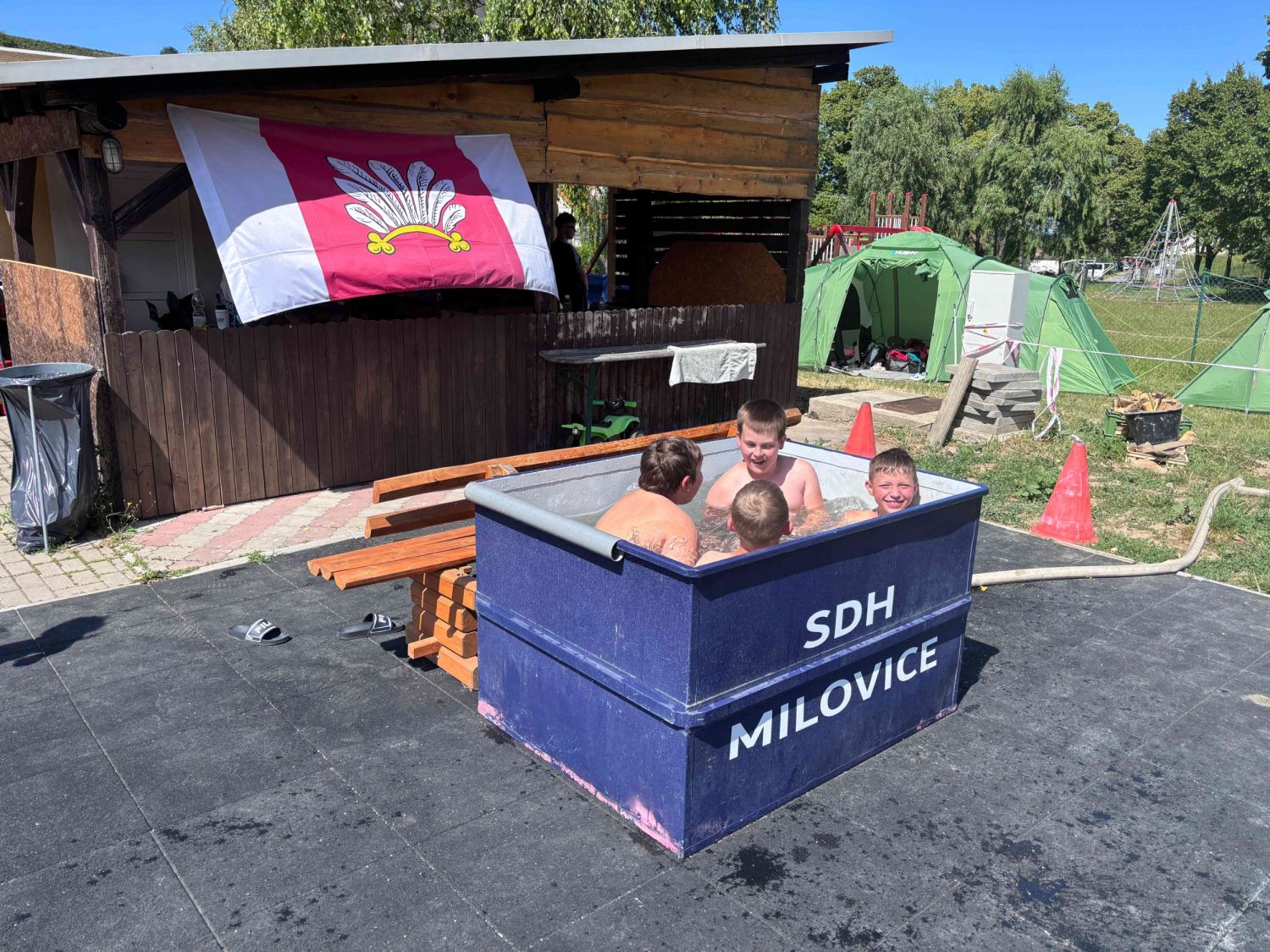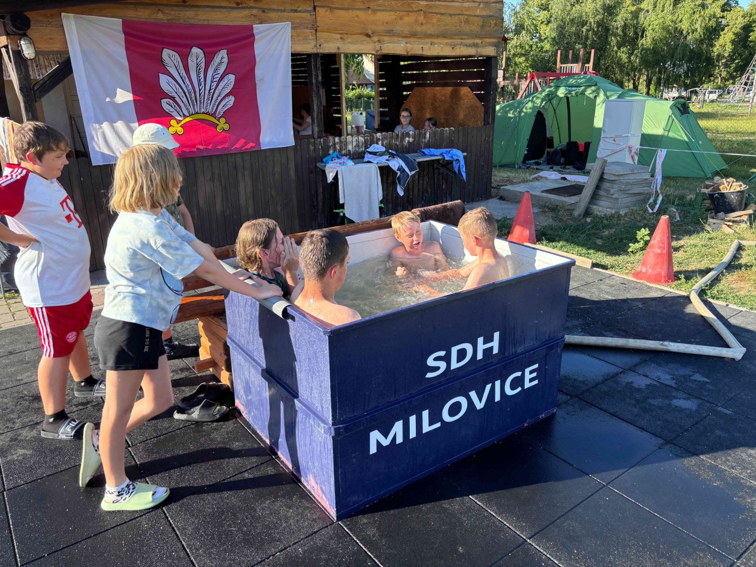 Sbor dobrovolných hasičů ve Velkém Meziříčí pod vedením vedoucího mládeže Zdeňka Álló uspořádal další ročník stanového tábora. Letos jsme tábořili v prostorách fotbalového hřiště v obci Milovice u Mikulova. Odjížděli jsme v sobotu 28.června den poté, co děti dostaly ve škole vysvědčení.