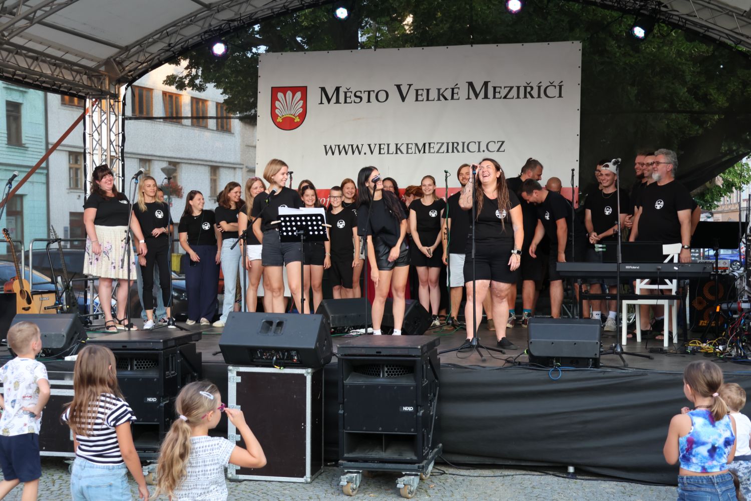 Zazněly slavné písně z broadwayských a filmových muzikálů, ale také překvapivě moderní hity. Publikum roztleskaly nestárnoucí Backstreet Boys, rozechvěla legendární balada od Queen a nejedna skladba přiměla návštěvníky zpívat si s interprety. Příkladem toho byla italská klasika Ciao bella. Slunce zapadalo, ale náměstí žilo. Lidé posedávali na schodech, lavičkách i obrubnících, děti tančily pod pódiem, a starší diváci si se zaujetím vychutnávali hudbu, kterou znají z divadel i rádií. O skvělé občerstvení a nápoje se postarala restaurace Lanč Branč přímo na místě. Koncert trval téměř tři hodiny a ani minutu se návštěvníci nenudili. Každé číslo bylo odměněno bouřlivým potleskem, závěrečný aplaus si vysloužil i přídavek. Mnozí diváci si po koncertu odnášeli nejen zážitky, ale i obdiv k tomu, co dokáže parta nadšenců z Velkého Meziříčí vytvořit na domácí scéně. Během tříhodinového koncertu zaznělo 36 skladeb.