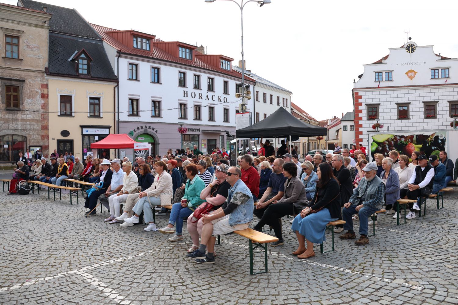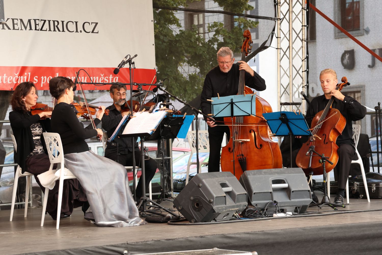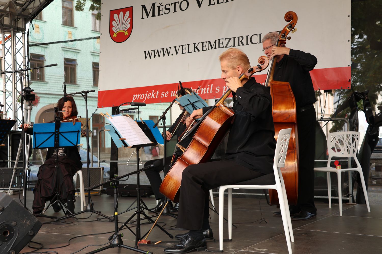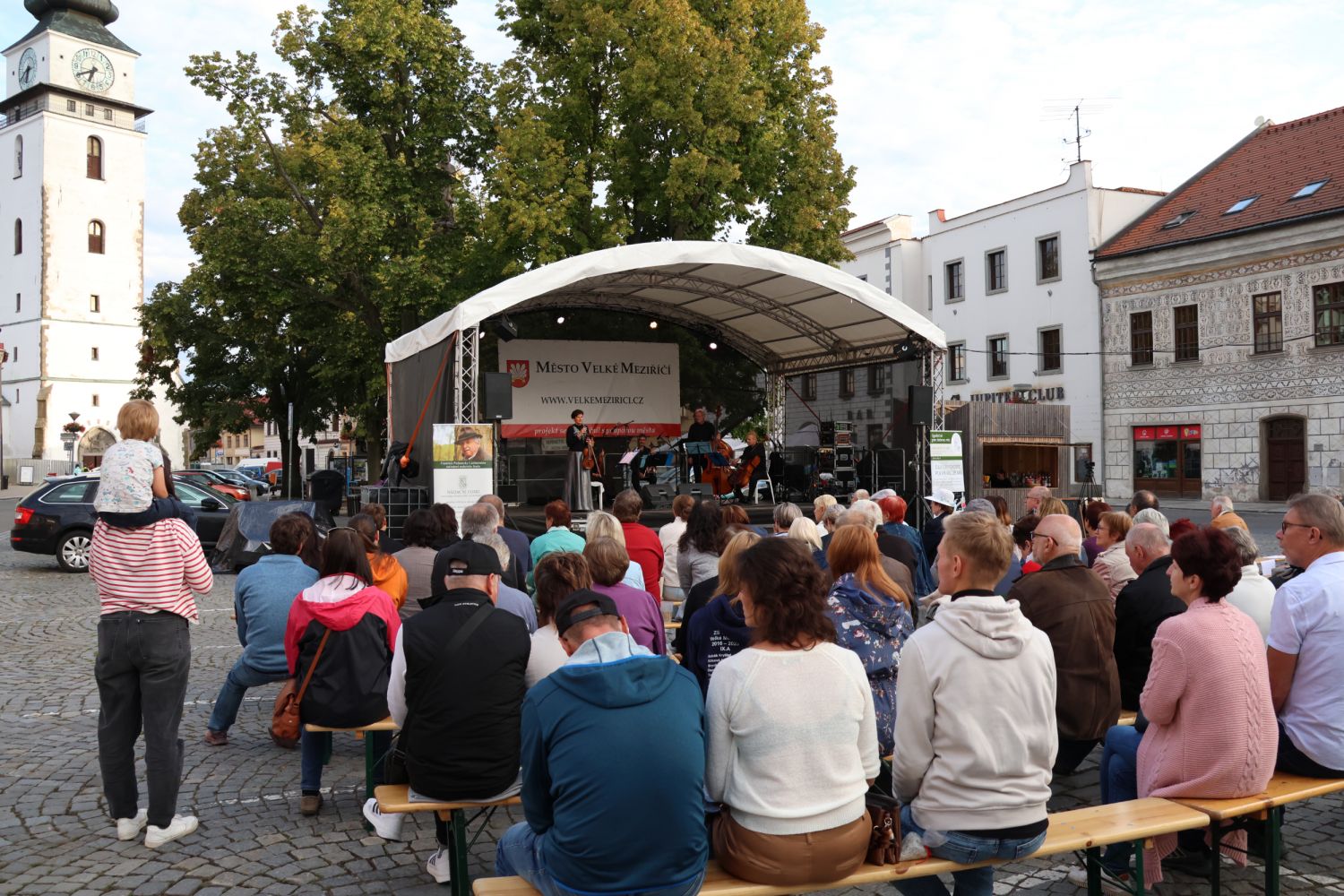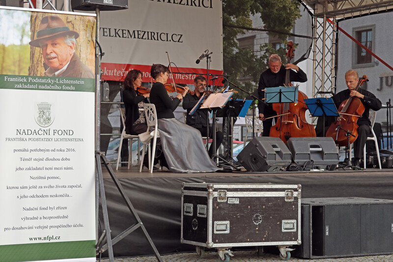 „František Podstatzky Lichtenstein chtěl, abychom pokračovali v tom, co on započal, abychom nezištně pomáhali potřebným. A my tak konáme,“ řekla úvodem Hana Sklenářová ze správní rady nadačního fondu, který tentokrát přizval k potěše posluchačů Praga Camerata quintet. Ten přivezl sice vážnou, přesto populární hudbu jako třeba Slovanský tanec od Antonína Dvořáka, Malou noční hudbu Wolfganga Amadea Mozarta, Květinový valčík z baletu Louskáček od Petra Iljiče Čajkovského či Uherský tanec od Johannese Brahmse. „Nestává se nám, že bychom hráli vážnou hudbu na náměstí,“ zmínila mimořádnou atmosféru koncertu první houslistka souboru Lucie Sedláková Hůlová. I pro velkomeziříčské náměstí je klasická hudba vcelku ojedinělá událost, a o to větší zážitek to byl. Z projevu hudebníků byla znát radost ze společného muzicírování. Starobylé centrum lemované renesančními fasádami domů, v pozadí s kostelem osvíceným zapadajícím sluncem vytvořily koncertu zcela jedinečnou atmosféru. Posluchači se rádi tím vším nechali unést a výkon umělců odměňovali vřelým potleskem. O to vřelejším, že se tu všichni setkali zejména proto, aby pomáhali.