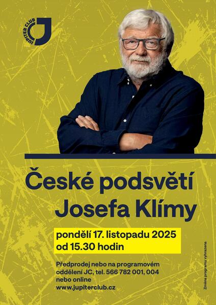 Na všechny tyto otázky odpoví Josef Klíma – investigativní novinář, spisovatel a scenárista, který se těmito tématy dlouhá léta zabývá. Beseda se uskuteční v pondělí 17. listopadu 2025 od 15:30 v kinosále Jupiter clubu.