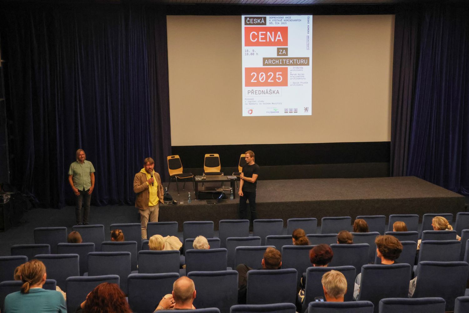 Ve čtvrtek 18. září proběhla v kinosále Jupiter clubu přednáška nominovaných ateliérů na Českou cenu za architekturu 2025.