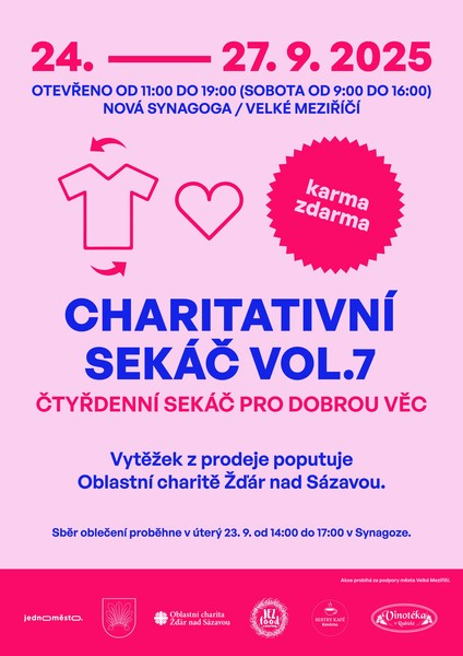 Jedná se o sedmý ročník sekáče, kde se vybírají peníze lidem a spolkům, buď přímo z Velkého Meziříčí nebo v blízkého okolí. Letos proběhne akce v nové synagoze v termínu od středy 24.9. do soboty 27.9.2025 každý den od 11:00 do 19:00 hodin, v sobotu od 9:00 do 16:00.