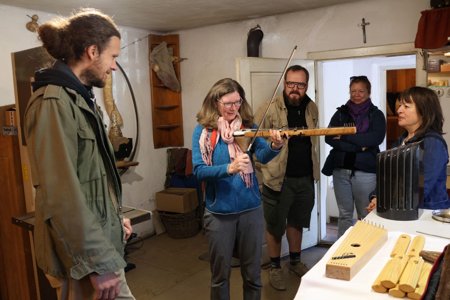 Dny otevřených ateliérů na Vysočině ve dnech 4. a 5. října nabídly pestrou směsici výtvarného umění a řemeslných dovedností. Lidé měli z čeho vybírat, co prohlížet a na mnoha místech i vlastníma rukama tvořit. „Můžu si zkusit zahrát na to didgeridoo?“ tázaly se návštěvnice, které dorazily k výrobci netradičních hudebních nástrojů Tomáši Dufkovi až z Brna. Krom toho pak vyzkoušely i ravanhatu, kamennou harfu či rámové bubny, takže malá modrá chaloupka v Dolních Radslavicích byla stále plná více či méně harmonických zvuků.