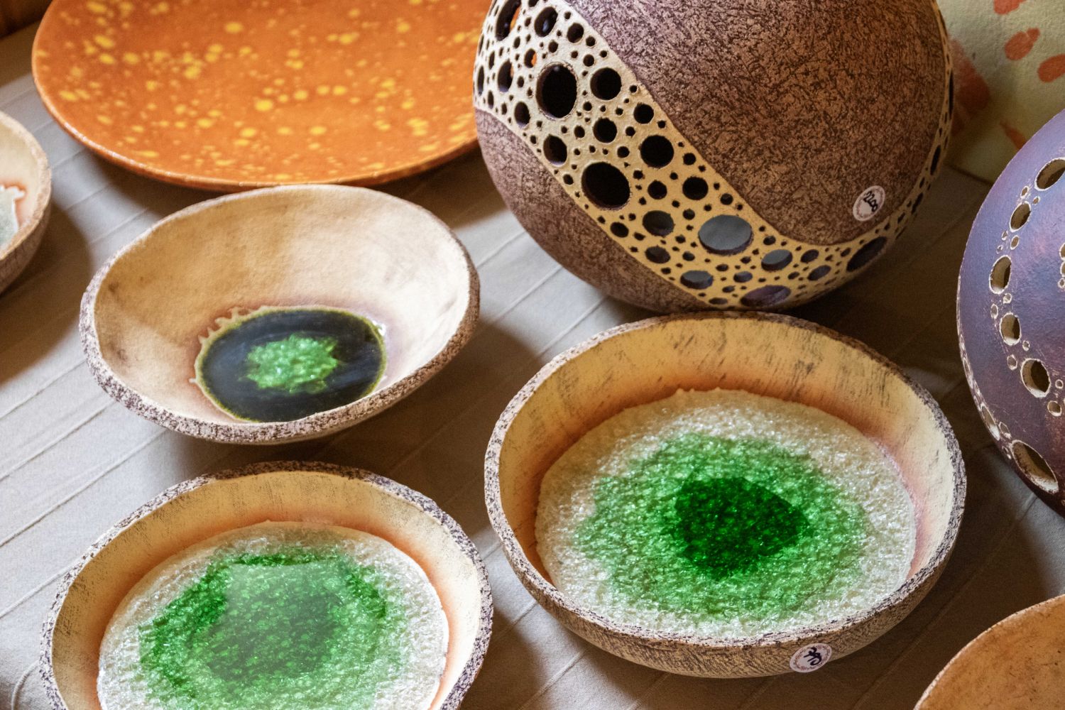 V Jupiter clubu se sešly ateliéry dva. Výstavní síň rozzářili malbami, plastikami, akvarely, kovovými šperky a prostorovými objekty, grafikou a mýdlovou poezií Bořivoj, Eva a Igor Pejchalovi, Miroslav Štěpánek a Ivana Bíbrová, zatímco vedle v koncertním sále své sochy, portrétní plastiky, figurální a abstraktní obrazy i malbu prezentovali Petr, Eliška a Quirin Jedličkovi. Lidmila Anna Dohnalová svými obrázky zútulnila faru v Budišově, kde ukazovala i svoji vzpomínkovou knihu Co odnesla řeka, jejíž dotisk se chystá, zatímco Jana a Jan Hikešovi zvali návštěvníky do svého oslavického ateliéru, jenž vznikl z původního chléva. Prostoru, vyzdobenému kolem dokola keramikou pro radost, vévodil hrnčířský kruh z Kamenné vyrobený na zakázku, aby lidé věděli, na čem všechna ta hlína dostává svůj tvar.