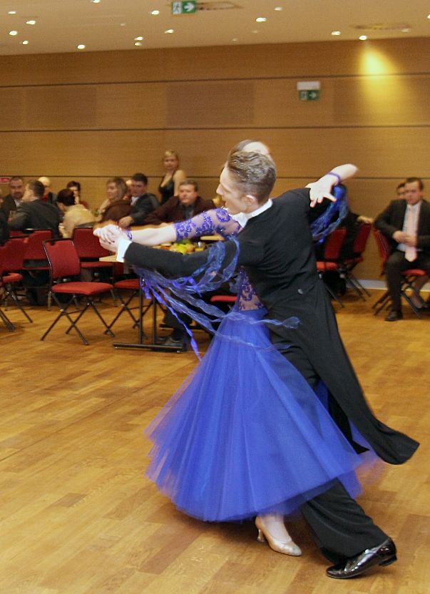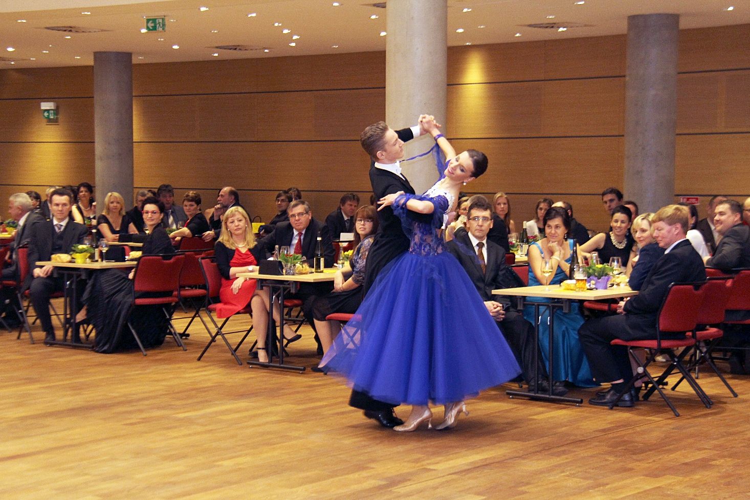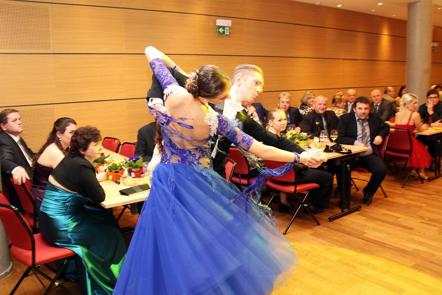 Zábava vypukla krátce po osmé hodině večerní, kdy starosta veselí na hlavním sále slavnostně zahájil. Na pódiu, jemuž vévodil znak města, složený ze šesti set živých květů karafiátu. A hned nato se návštěvníci mohli nechat inspirovat figurami, jež předvedl pár patnáctiletých tanečníků Karolína Trutnová a Daniel Vojtěšek z Taneční školy Starlet Brno. Ti své vystoupení zahájili ve stylu standardním, tedy waltzem, valčíkem či tangem, a v další části večera pak pokračovali v latinsko-americkém rytmu.