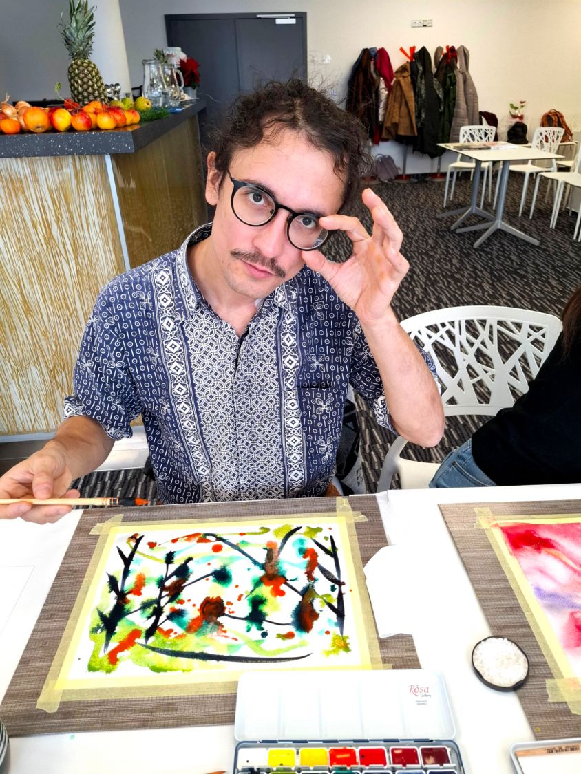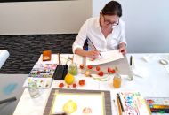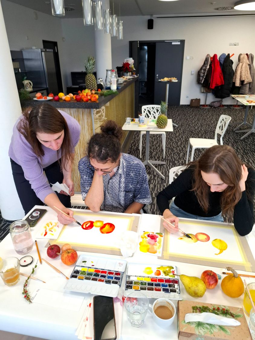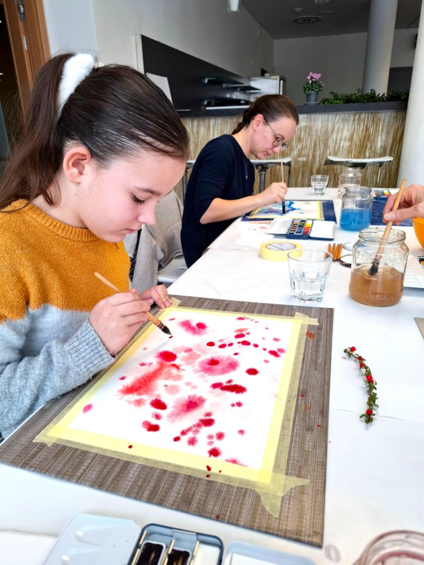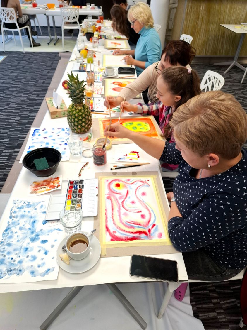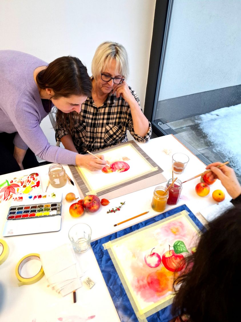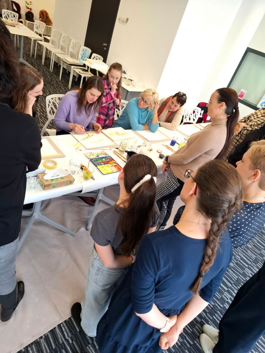 Třináct začínajících i pokročilých malířek a malířů se sešlo při workshopu akvarelové malby, který proběhl 29. listopadu v salónku Jupiter clubu. Vedla ho zkušená lektorka Eva Pejchalová.