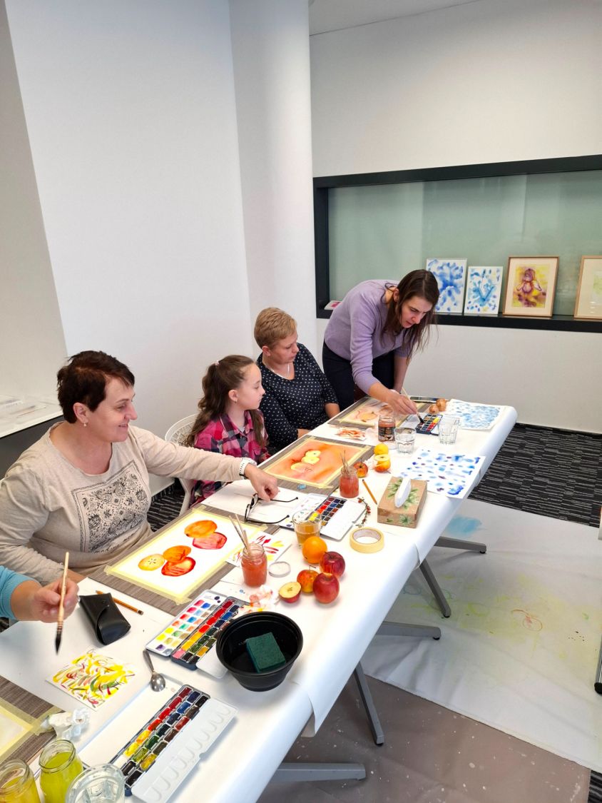 Projekt byl zaměřen na zpřístupnění malířské techniky akvarelu široké veřejnosti, na rozvoj tvořivosti, relaxace a také na společné prožitky napříč generacemi. Účastníci se seznámili s technikou akvarelu, používanými materiály a vyzkoušeli si základní postupy (malbu do mokra, do sucha) a práci s vrstevnatostí barev. Vznikaly drobné reálné motivy (ovoce, větvičky) i hravé abstraktní akvarelové vločky s experimentováním se solí. Kurzu se zúčastnilo 13 malířek a malířů, včetně několika dětí. Někteří přijeli i mimo Velké Meziříčí, například z Brna, což potvrdilo, že o akvarel je v regionu velký zájem.
