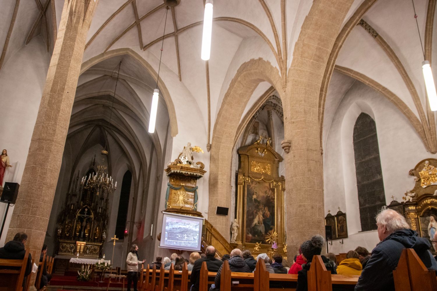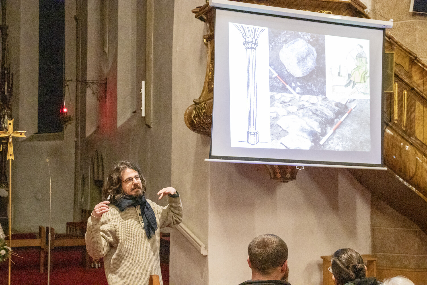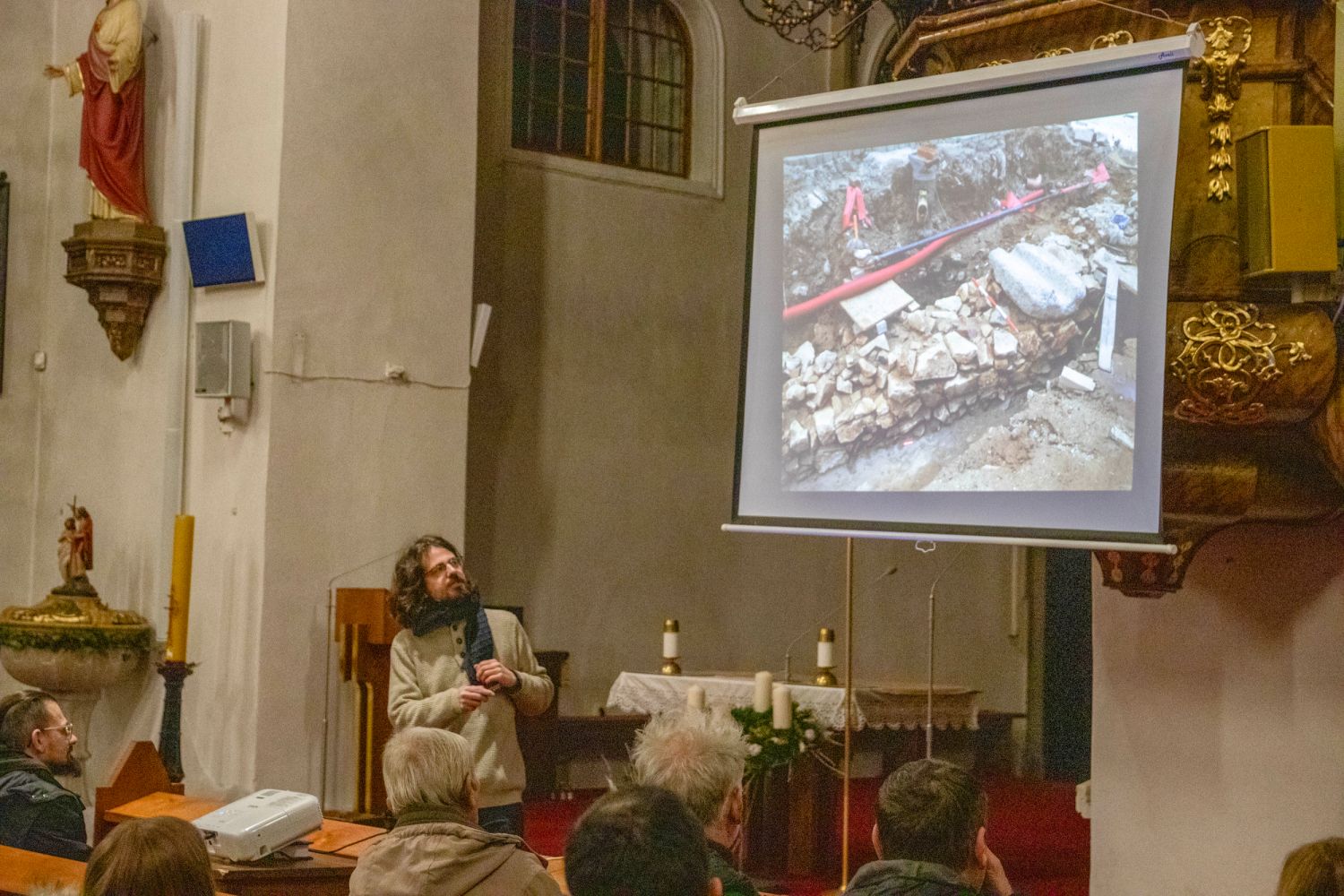 V sobotu od 19:30 proběhla v kostele svatého Mikuláše poutavá přednáška věnovaná nedávnému archeologickému výzkumu právě kolem kostela. Výsledky zájemcům představil Šimon Kochan ze společnosti Archaia.