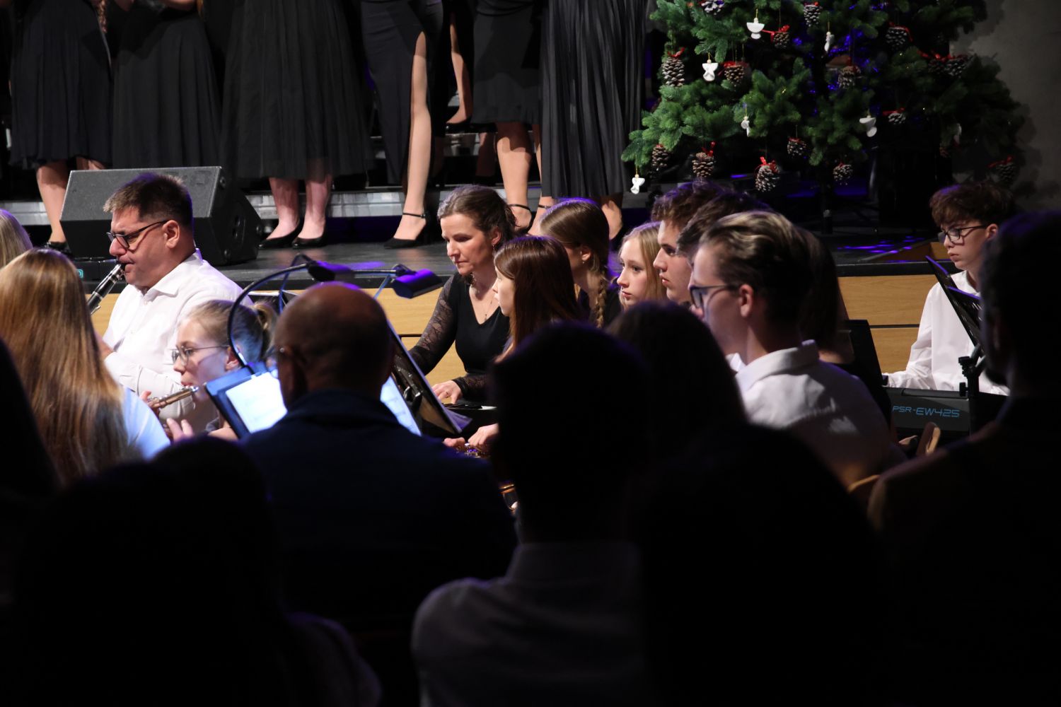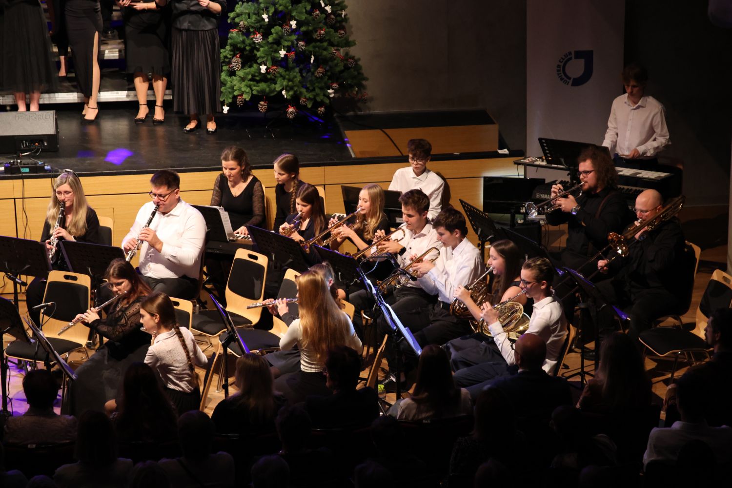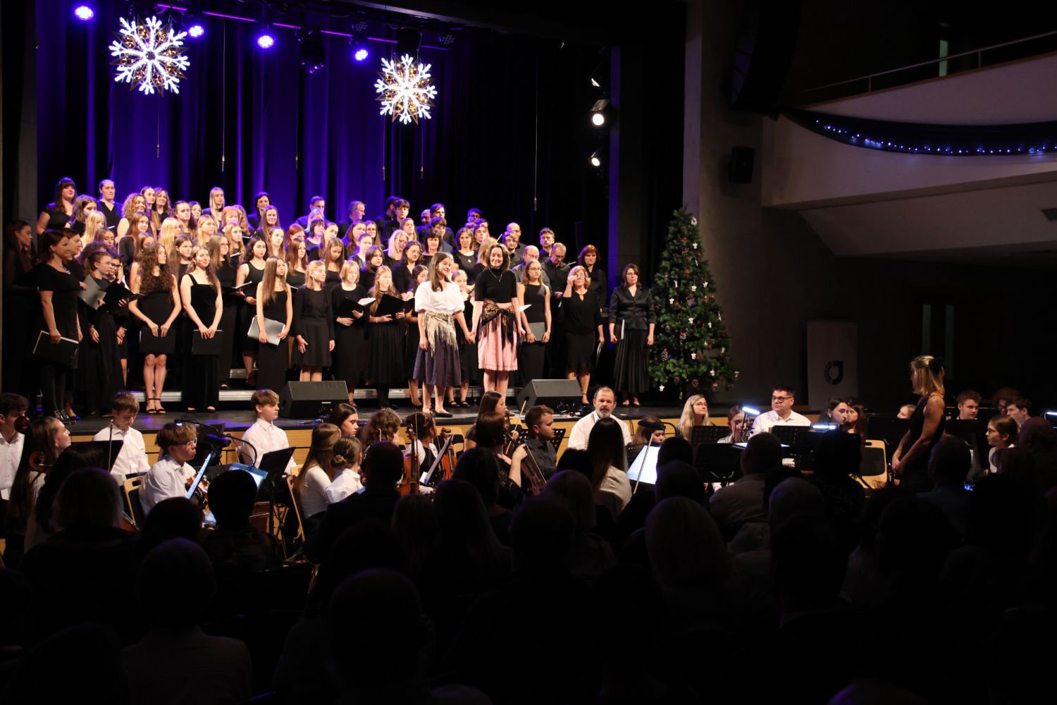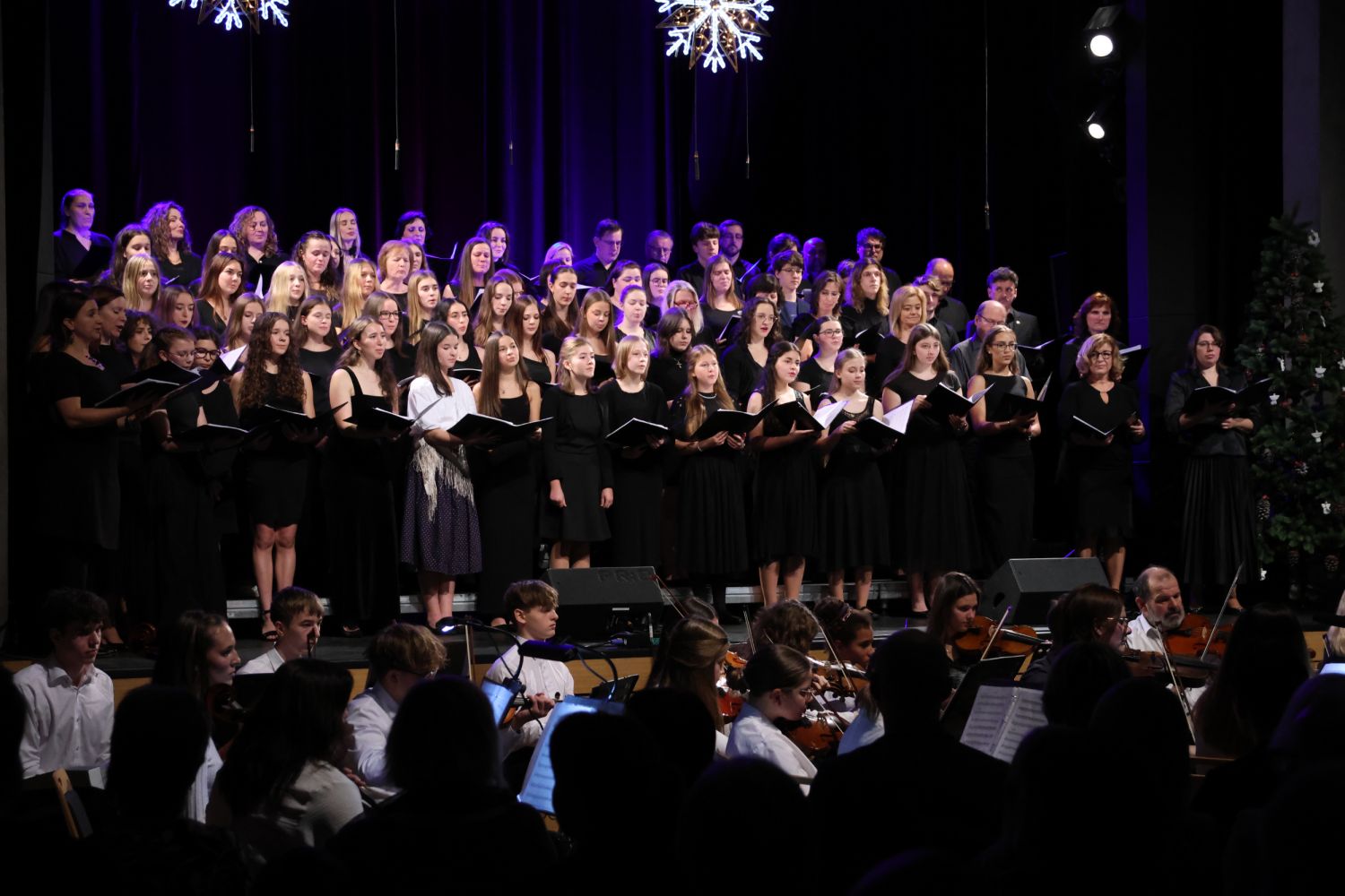 Koncert si užívalo nejen publikum, ale i sami účinkující, což bylo z jejich projevu znát. Na pódiu se blýskly pěvecké sbory gymnázia, Harmonie a Harmonie Ladies, Iuventus, Slunko, chrámový pěvecký sbor a orchestr kostela sv. Mikuláše a samozřejmě početný sbor s orchestrem základní umělecké školy. Zazářili natolik, že si obecenstvo vytleskalo přídavek, a to koledu Narodil se Kristus Pán.
