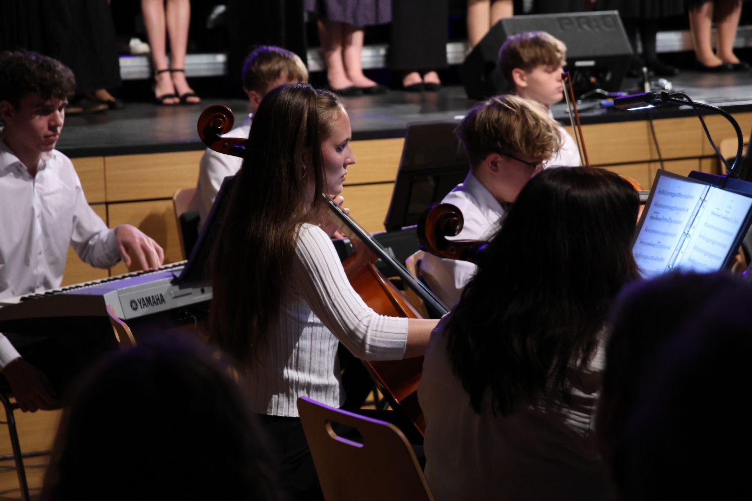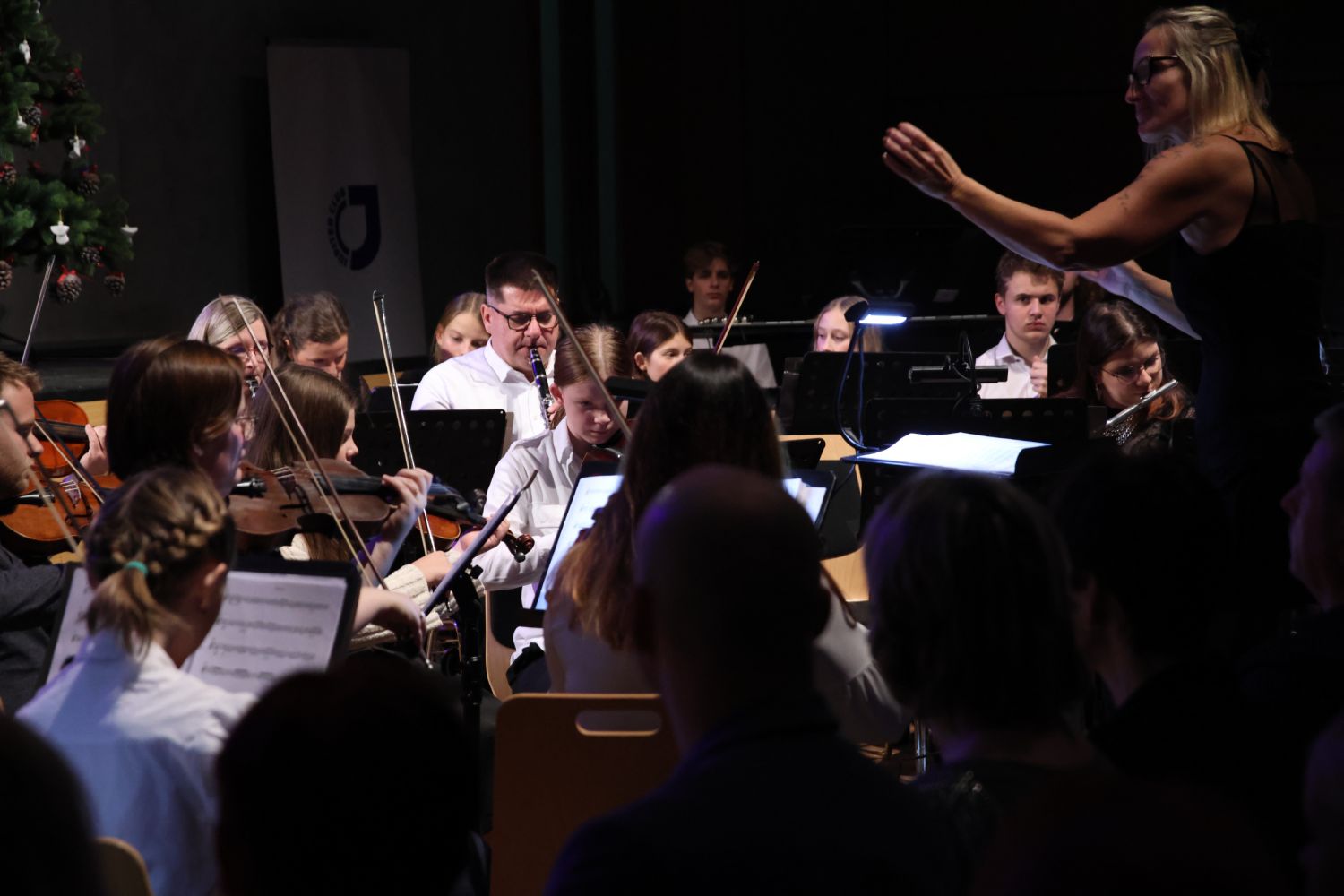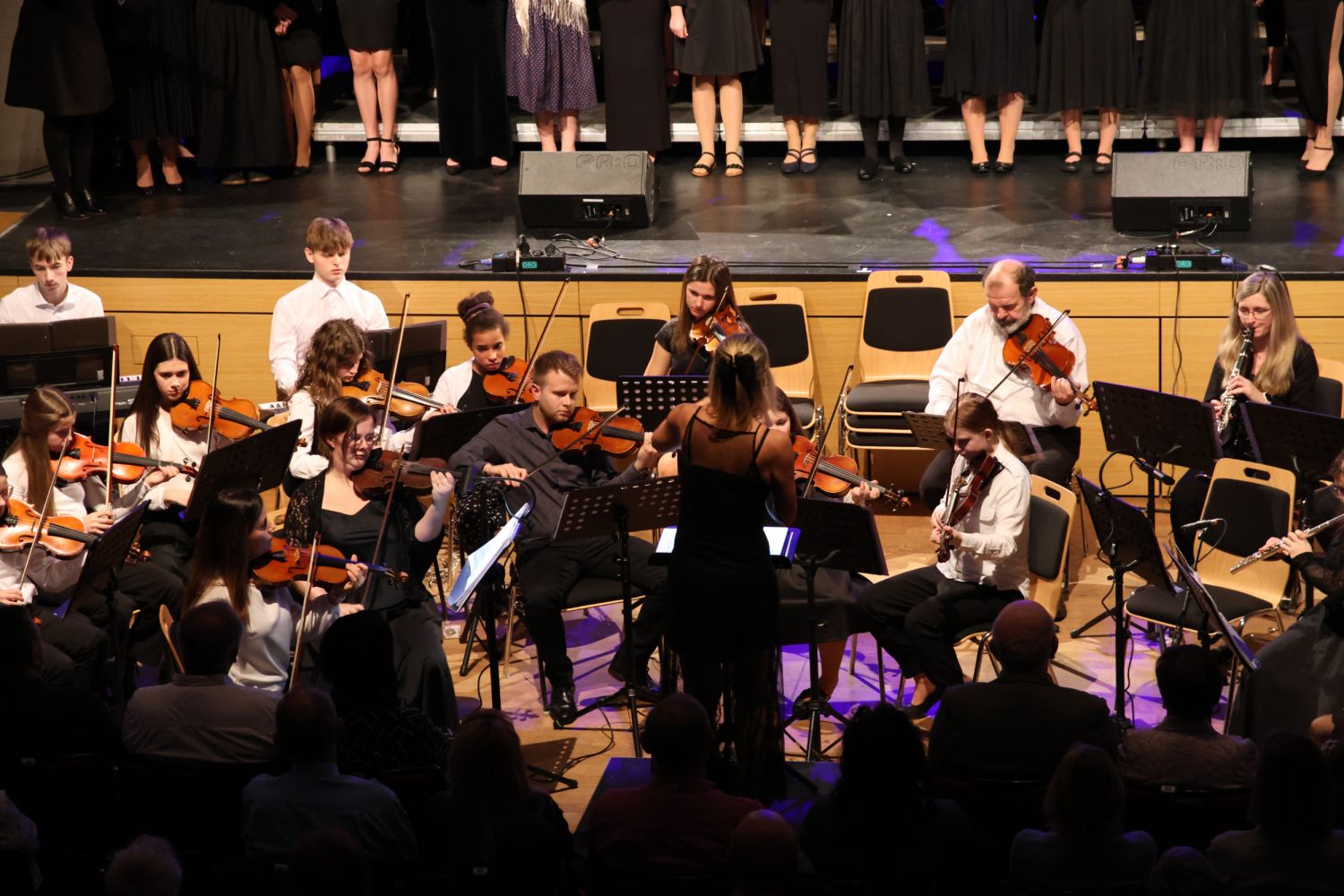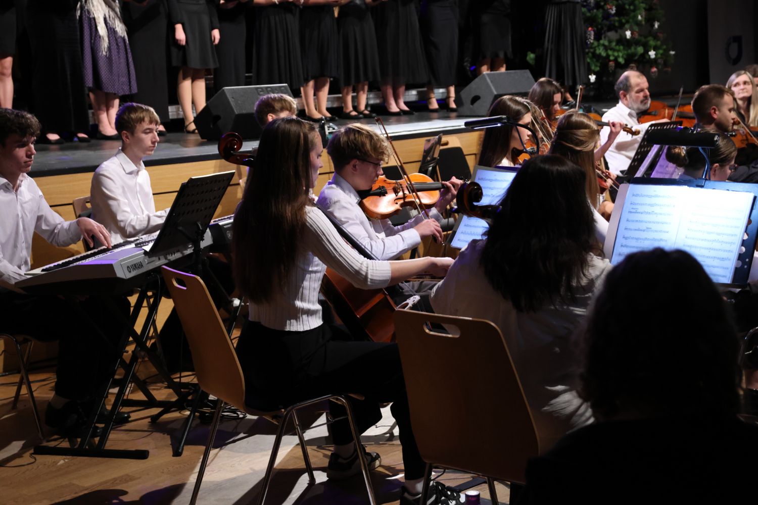 Koncert si užívalo nejen publikum, ale i sami účinkující, což bylo z jejich projevu znát. Na pódiu se blýskly pěvecké sbory gymnázia, Harmonie a Harmonie Ladies, Iuventus, Slunko, chrámový pěvecký sbor a orchestr kostela sv. Mikuláše a samozřejmě početný sbor s orchestrem základní umělecké školy. Zazářili natolik, že si obecenstvo vytleskalo přídavek, a to koledu Narodil se Kristus Pán.