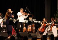 Pěvecké dívčí trio Tři barvy doprovázené muzikanty s folklórním srdcem návštěvníky naladili na sváteční notu. Nejen vánočními písněmi jako třeba Bílé Vánoce, ale také muzikálovou či filmovou hudbou Ennia Morriconeho, od nějž zaznělo například Jednoho dne se vrátíš. Jedna světová melodie střídala druhou, stejně jako se střídaly žánry. Muzikanti hráli mistrovsky a s citem, což posluchači ocenili.