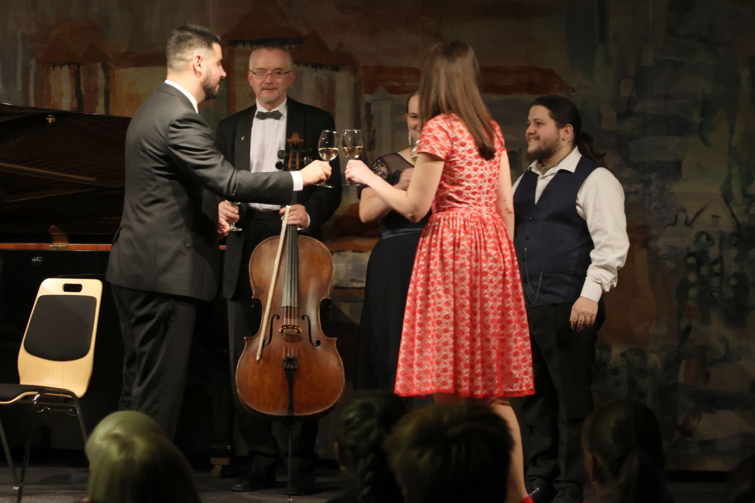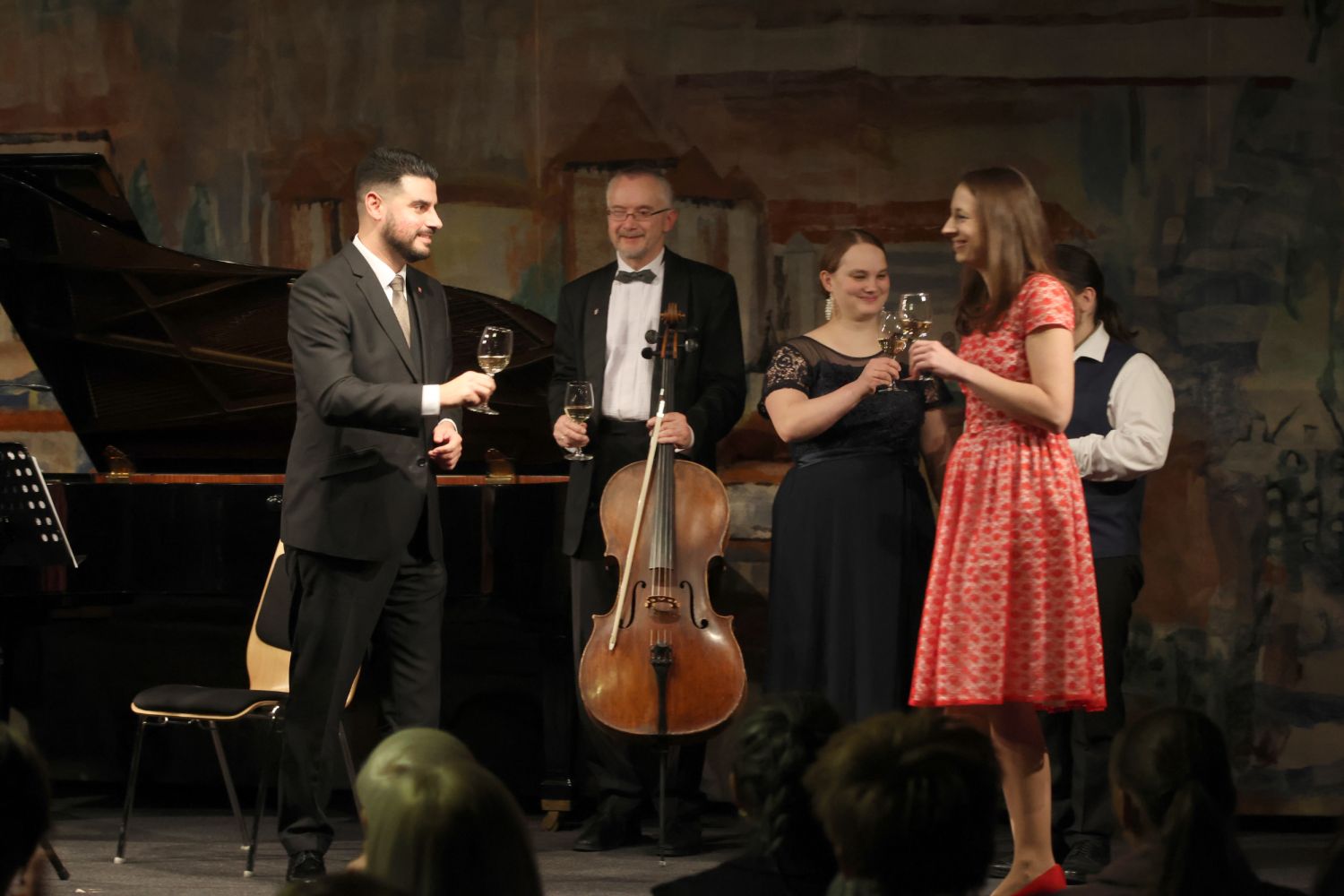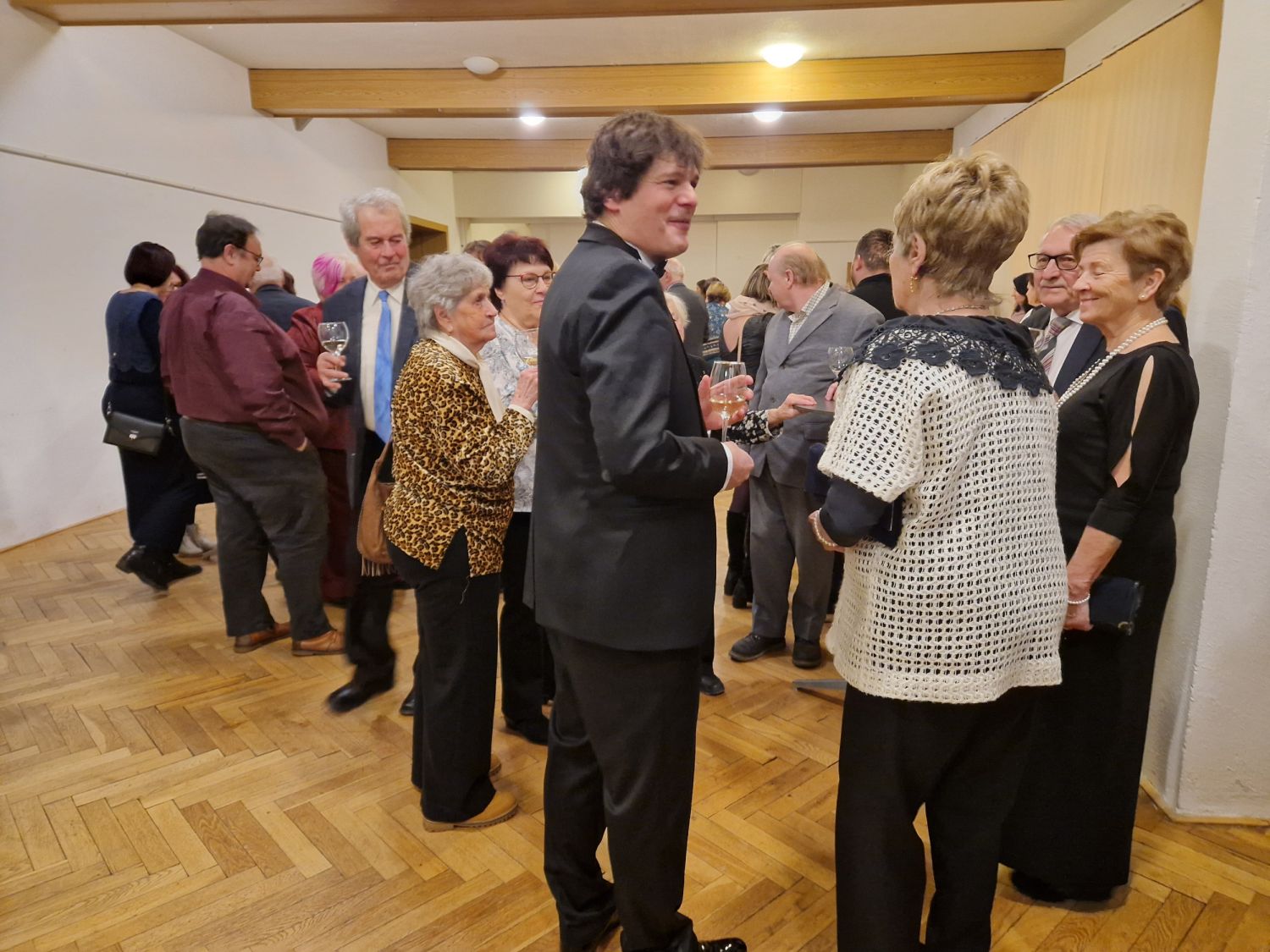 O přestávce si lidé připíjeli na úspěšný nový rok se starostou Alexandrosem Kaminarasem, jednatelkou Jupiter clubu Adélou Šoukalovou či s vystupujícím Jiřím Jahodou.