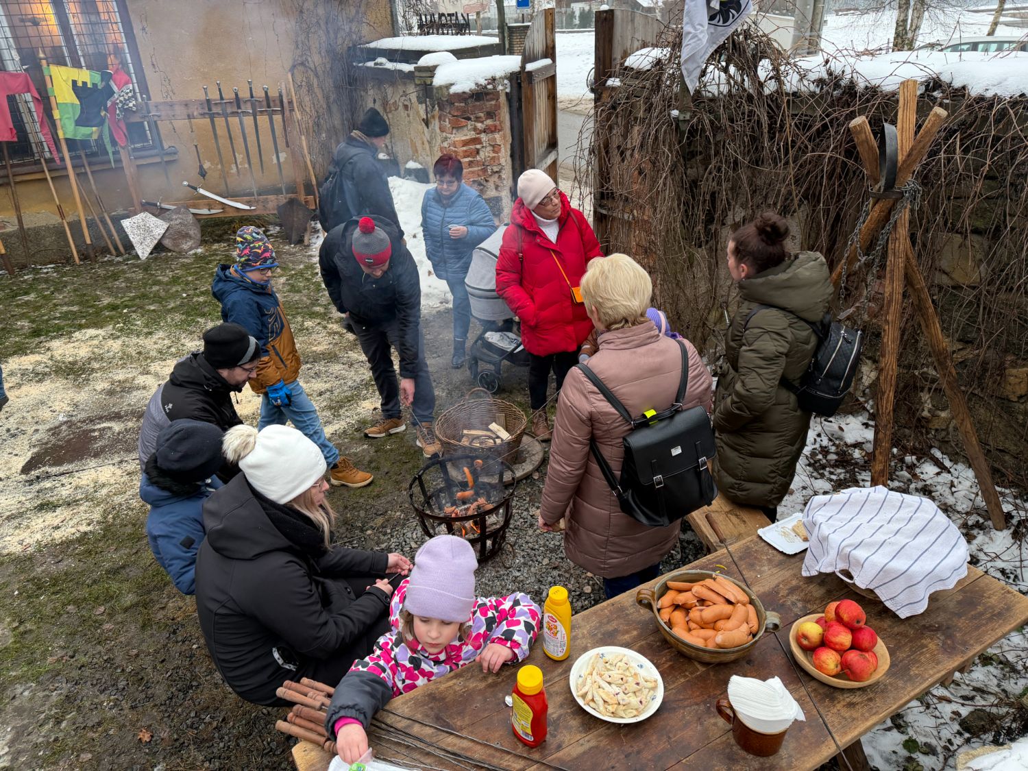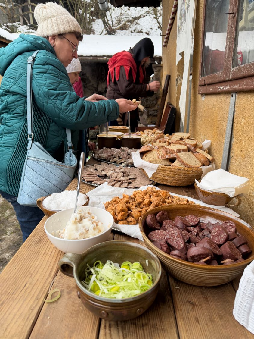 Dveře katovny byly dokořán už ve 13 hodin a hned bylo jasné, že o zážitky nebude nouze. Vzduchem se linula vůně jitrniček, škvarků, tlačenky a dalších dobrot a kdo měl hlad, mohl si opéct párek a v klidu si počkat na začátek programu.