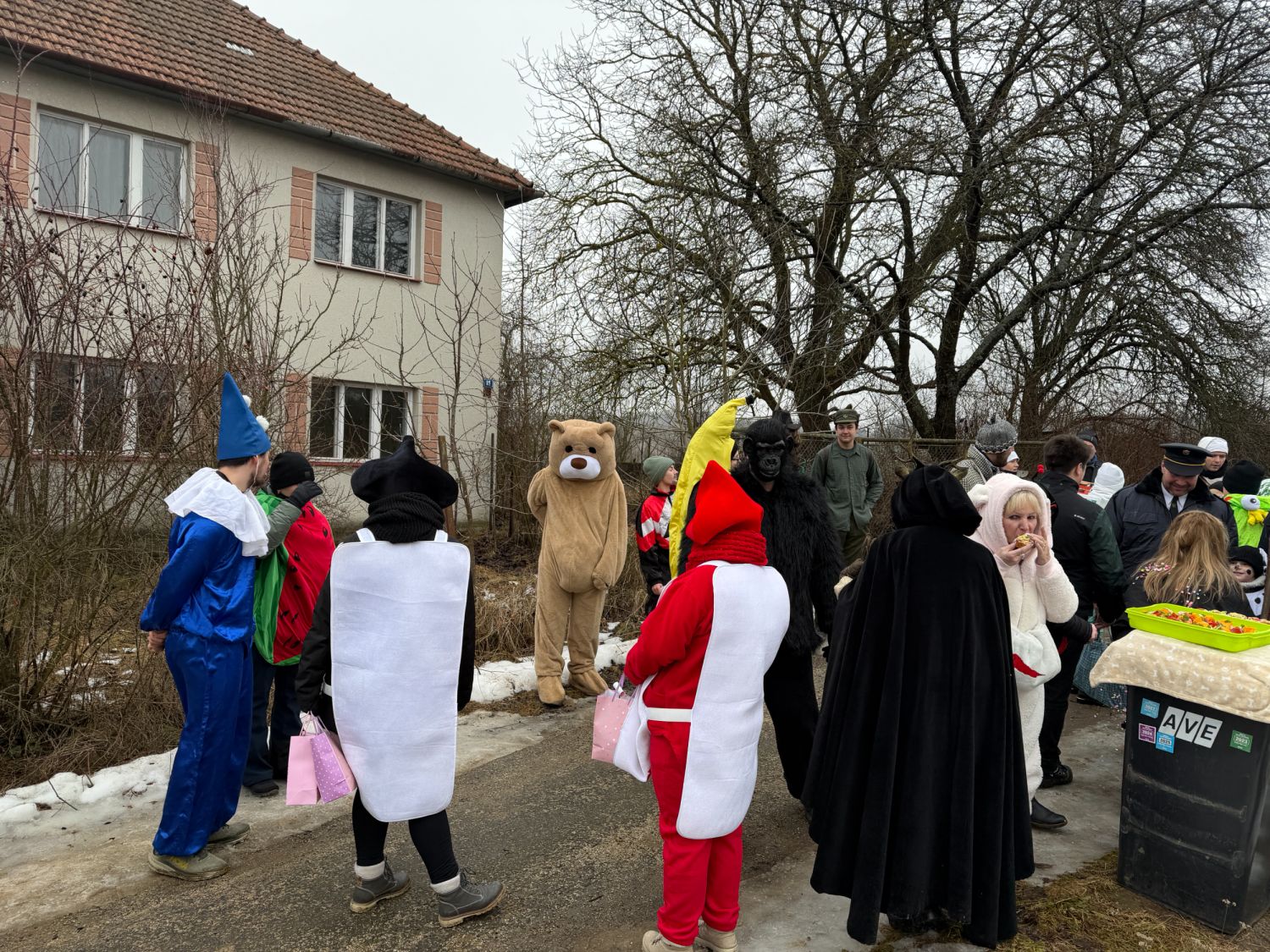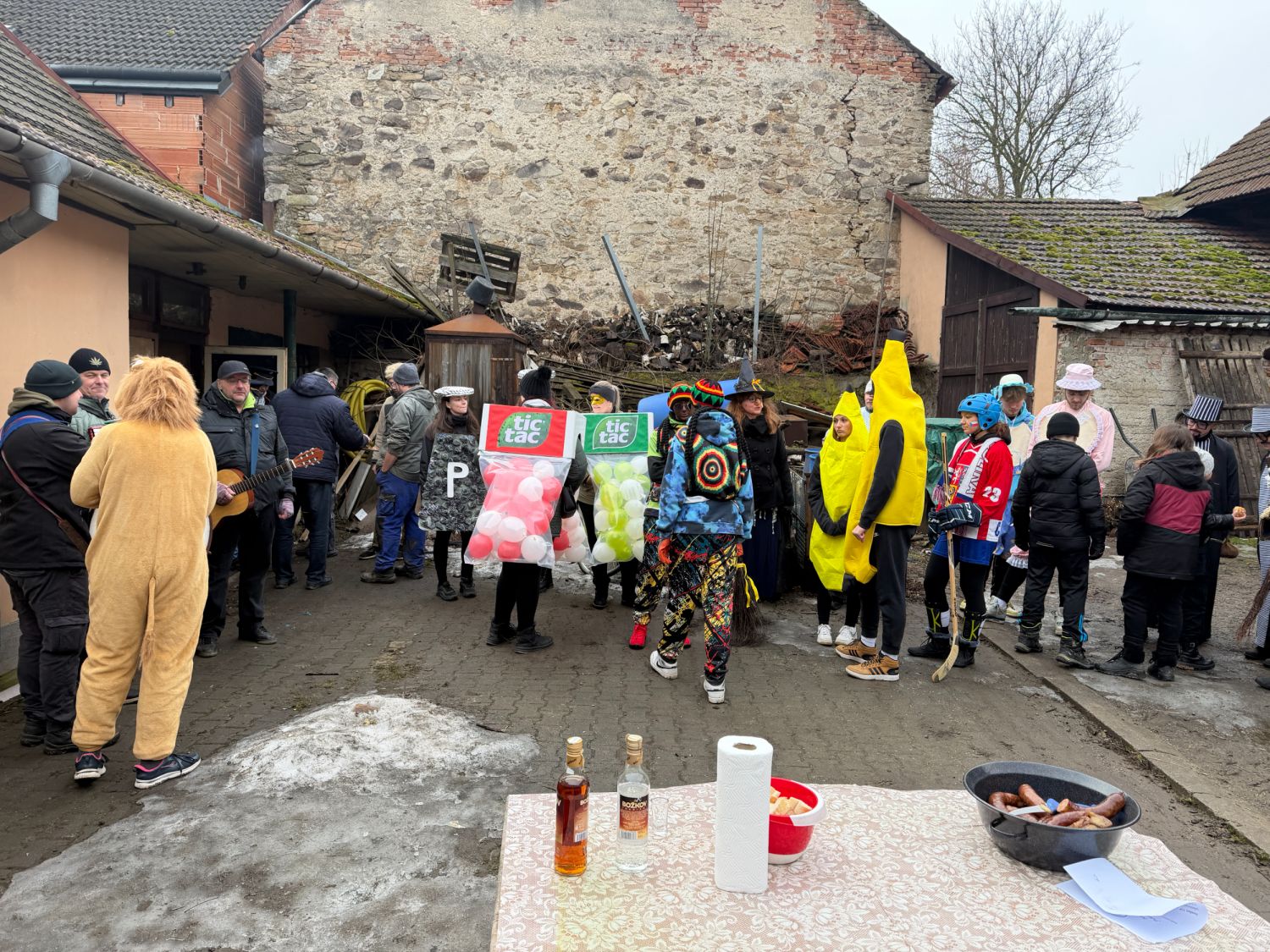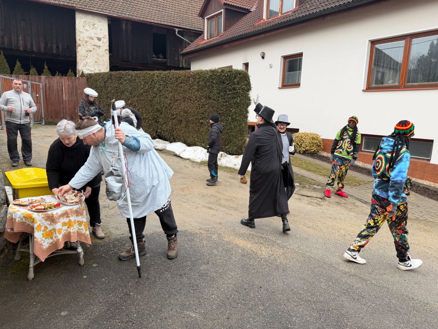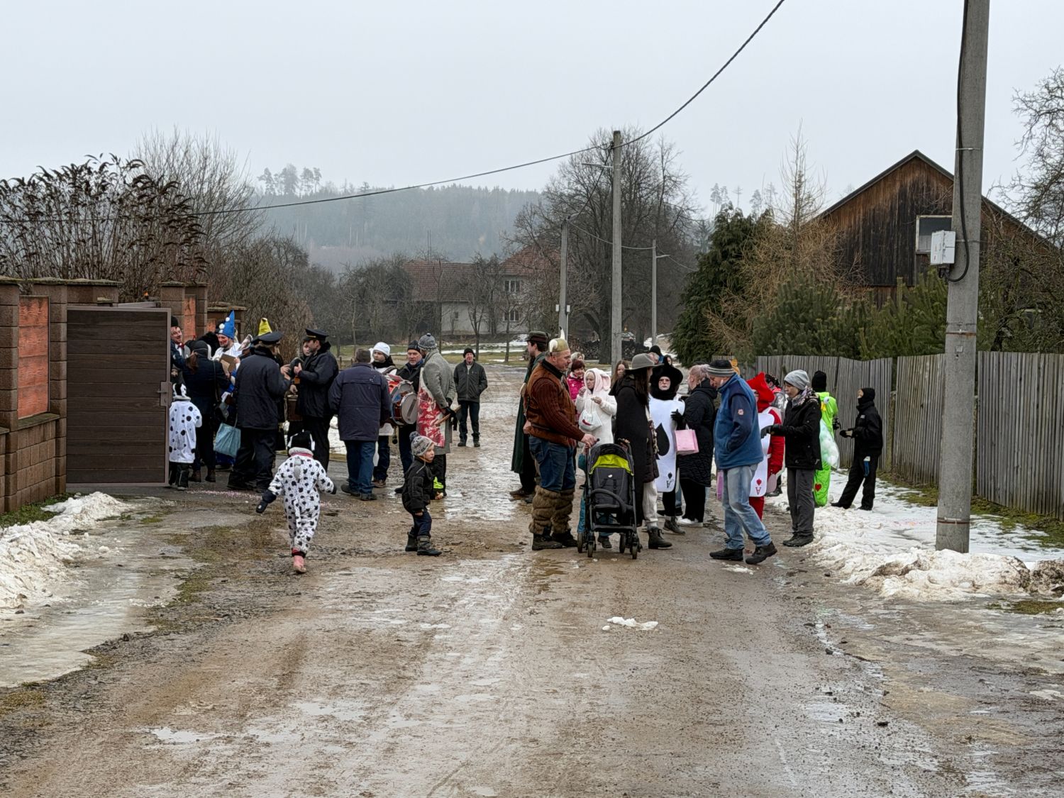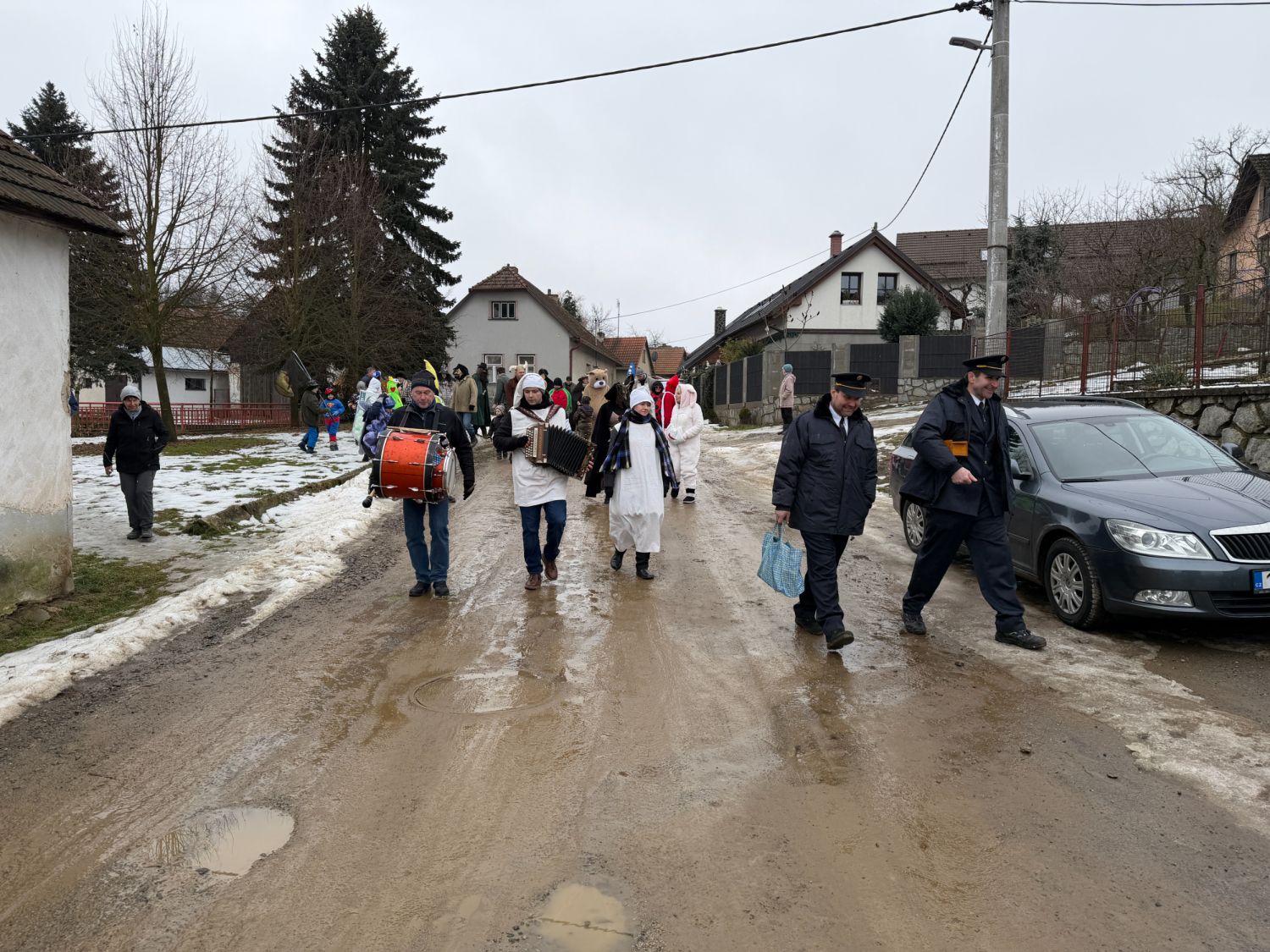 Průvod se tradičně vydal za doprovodu muzikantů dům od domu a místní znovu potvrdili, že jsou skvělými hostiteli. Celou obcí se linula vůně uzeného masa, klobás, koblížků a spousty dalších dobrot. Masopustní veselí bylo zakončeno taneční zábavou v kulturním domě.
