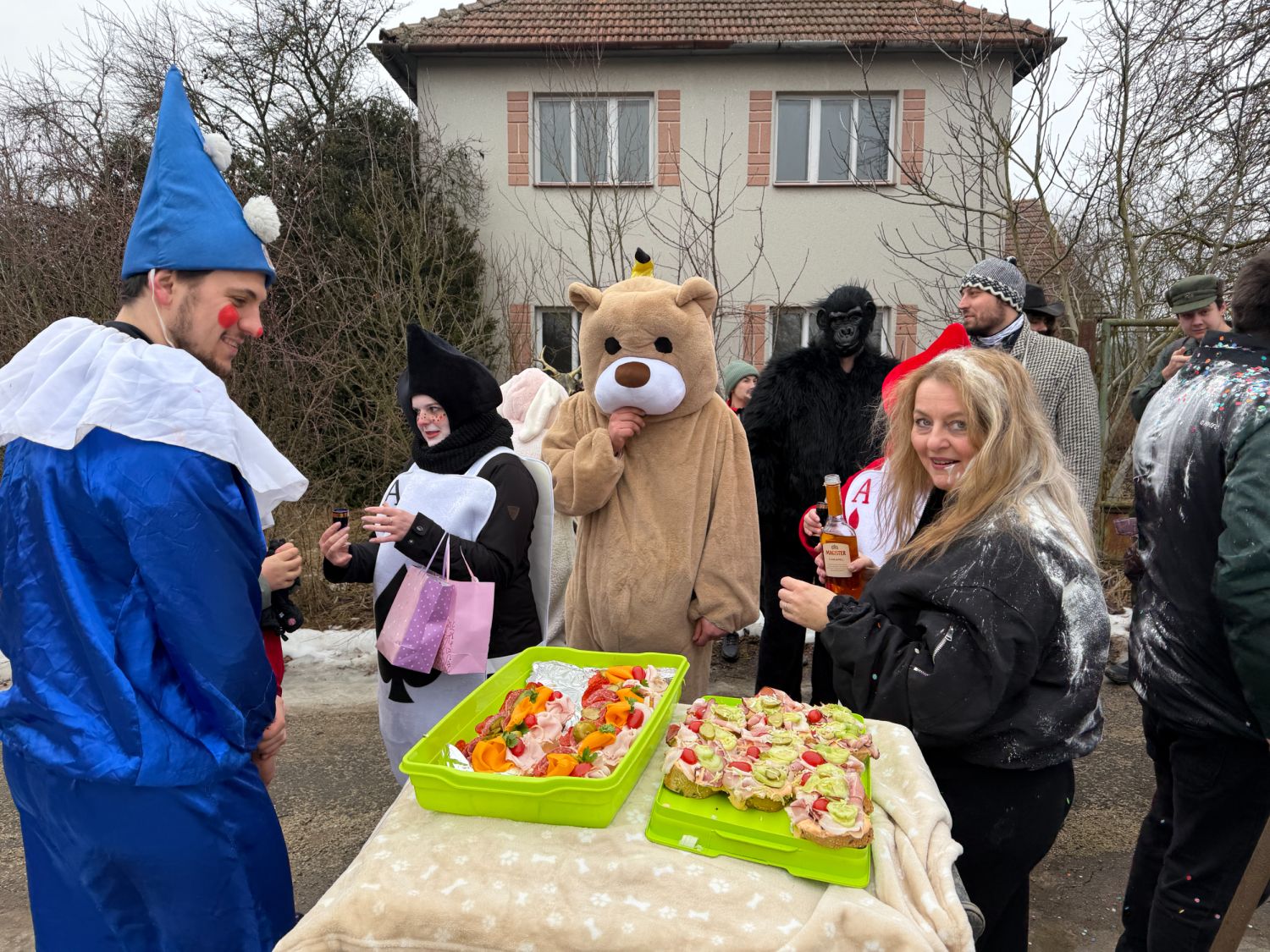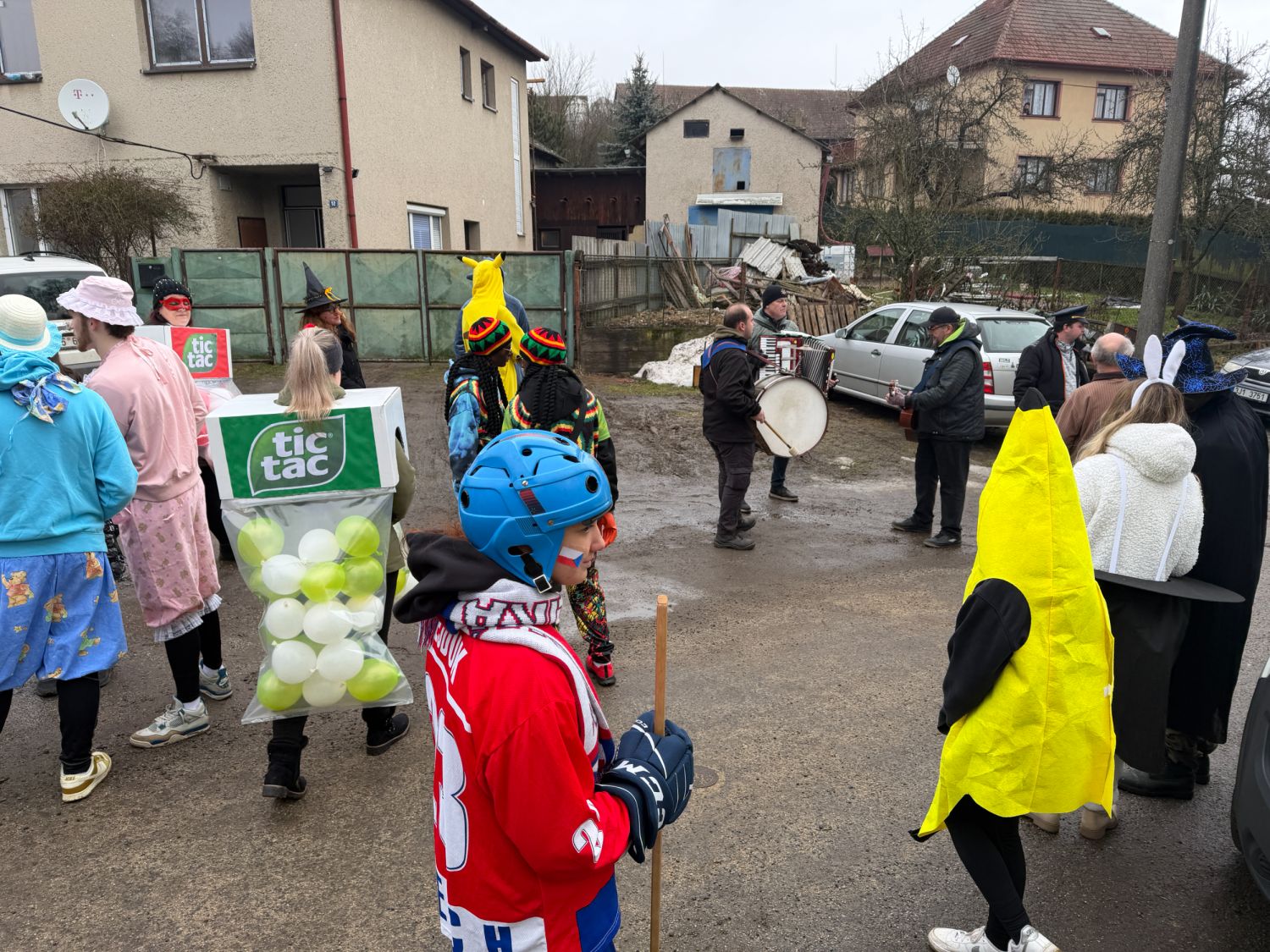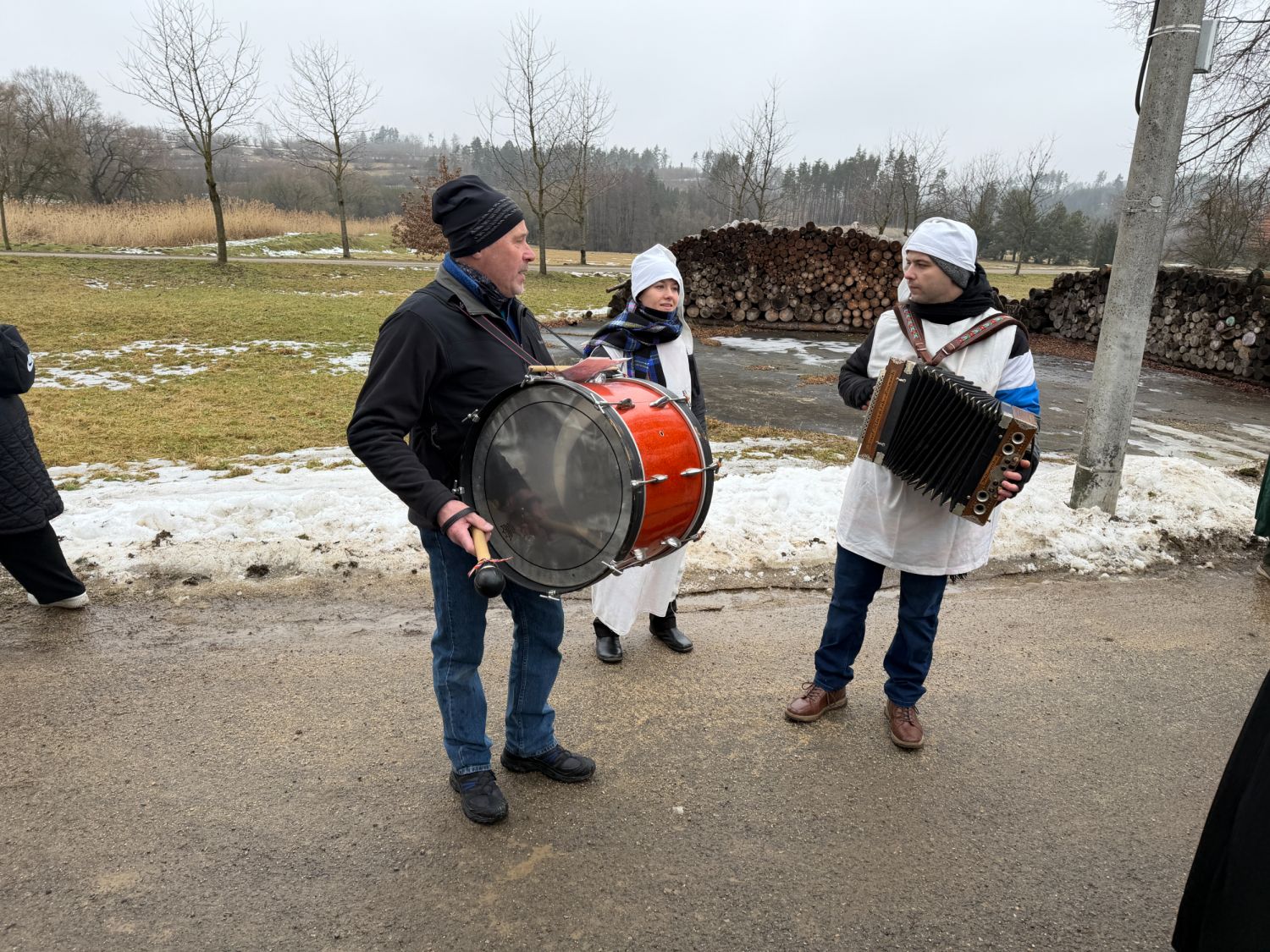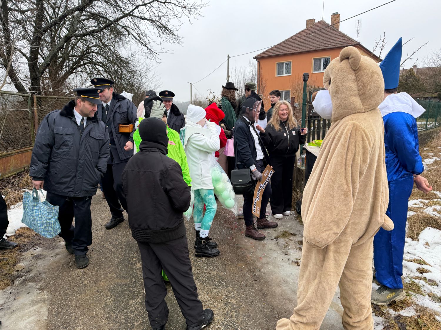 Průvod se tradičně vydal za doprovodu muzikantů dům od domu a místní znovu potvrdili, že jsou skvělými hostiteli. Celou obcí se linula vůně uzeného masa, klobás, koblížků a spousty dalších dobrot. Masopustní veselí bylo zakončeno taneční zábavou v kulturním domě.