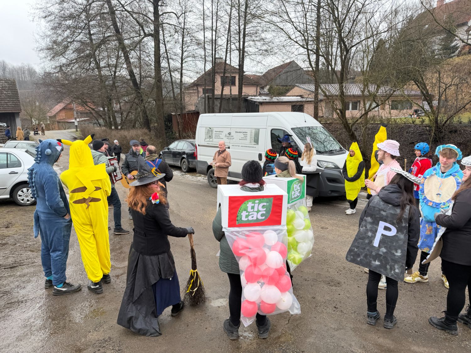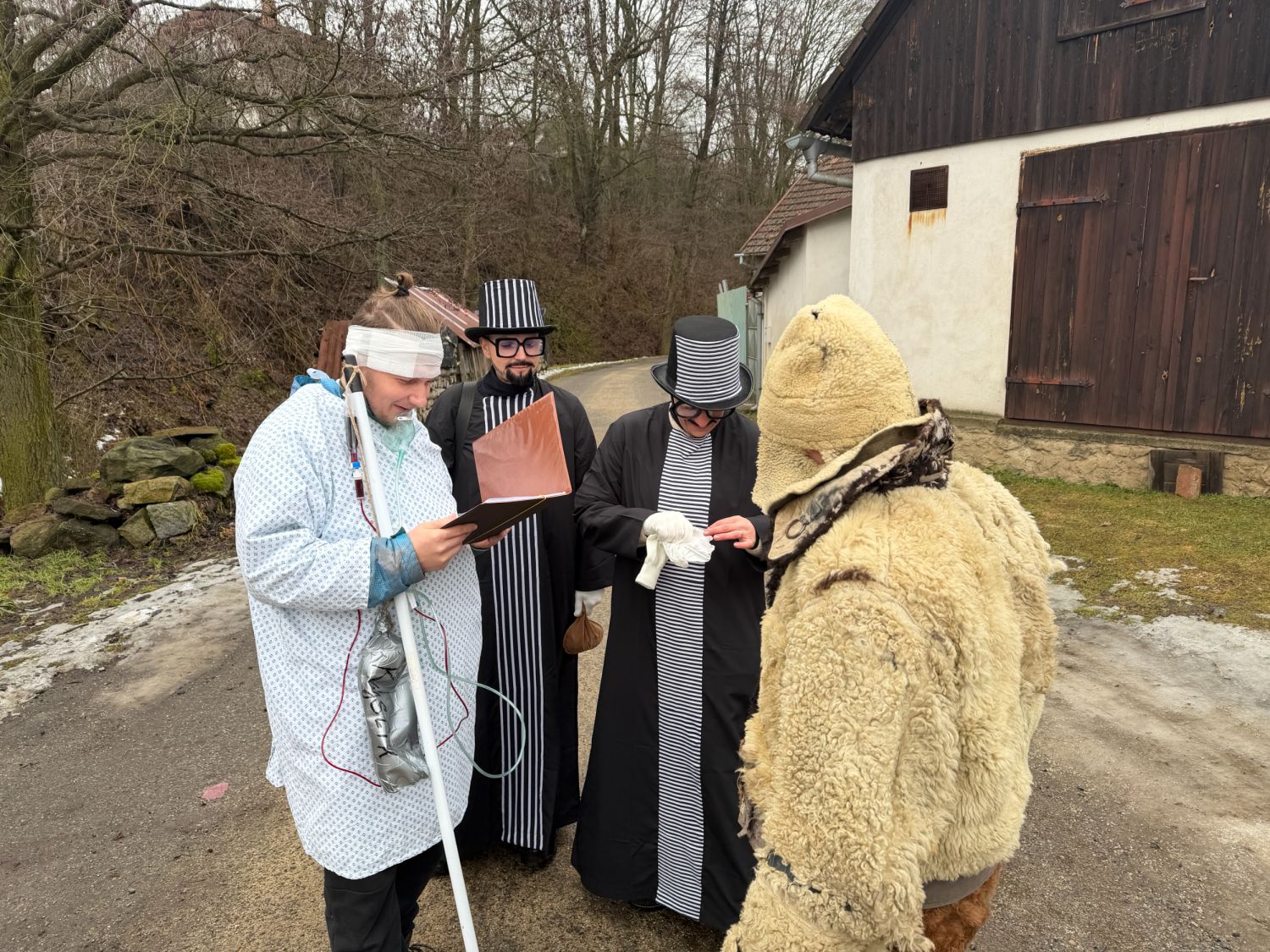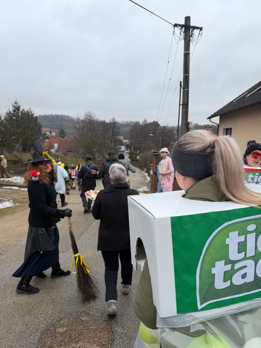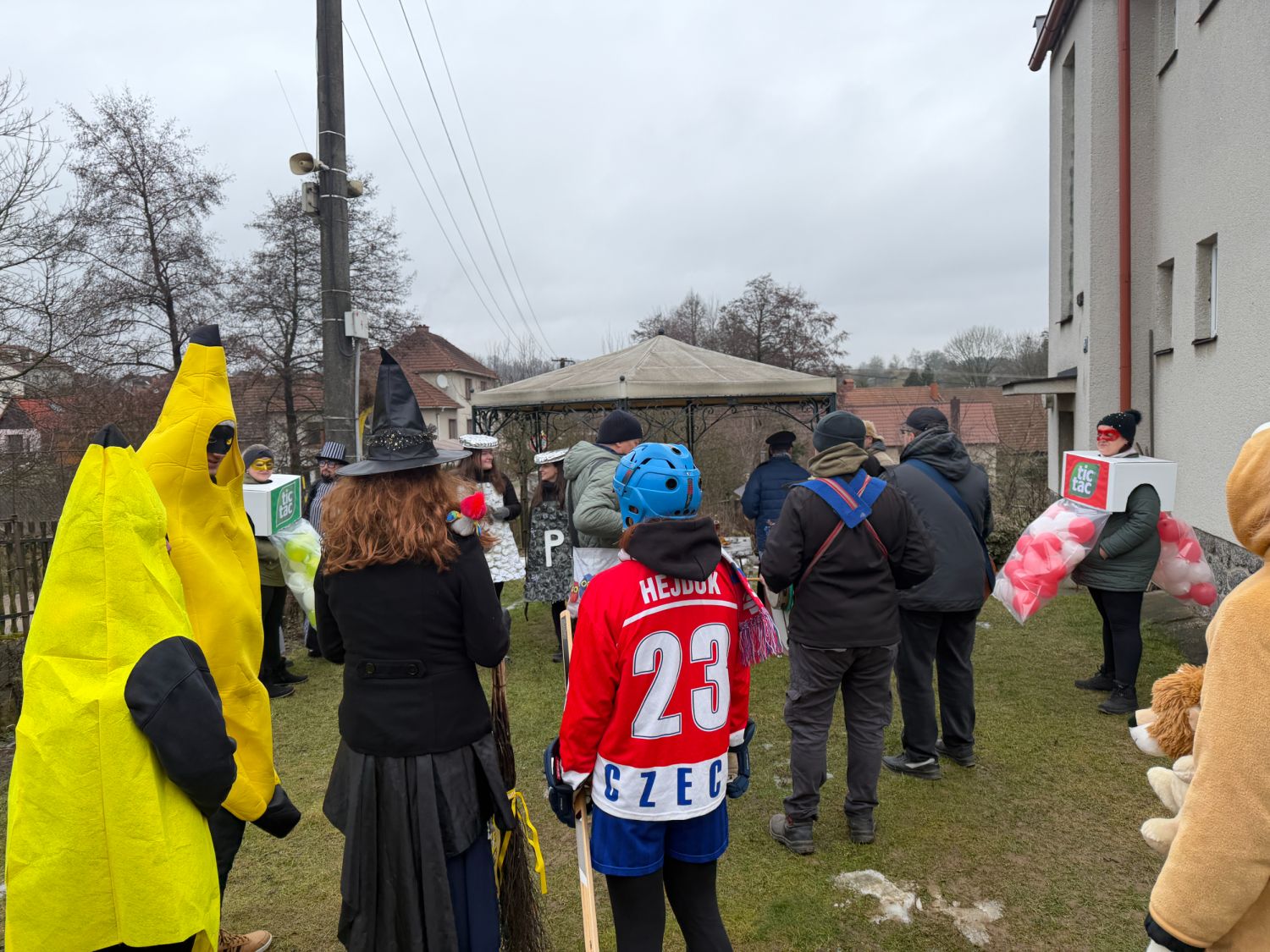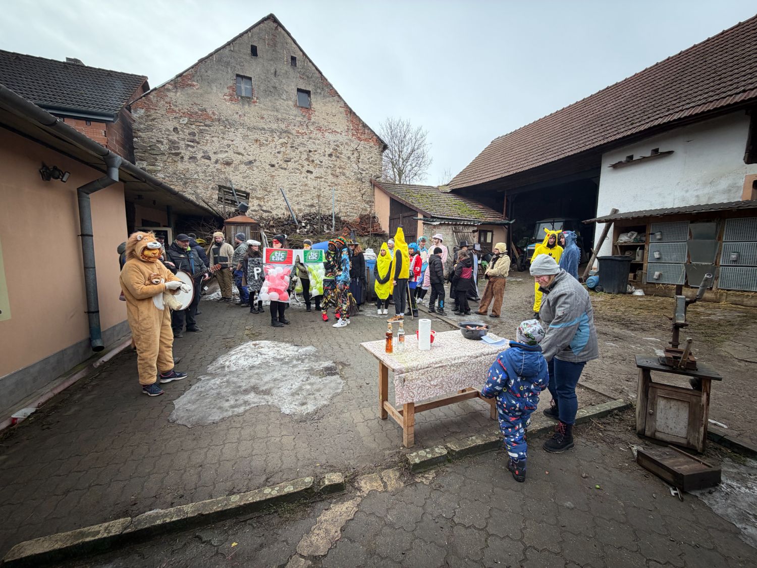 Průvod se tradičně vydal za doprovodu muzikantů dům od domu a místní znovu potvrdili, že jsou skvělými hostiteli. Celou obcí se linula vůně uzeného masa, klobás, koblížků a spousty dalších dobrot. Masopustní veselí bylo zakončeno taneční zábavou v kulturním domě.