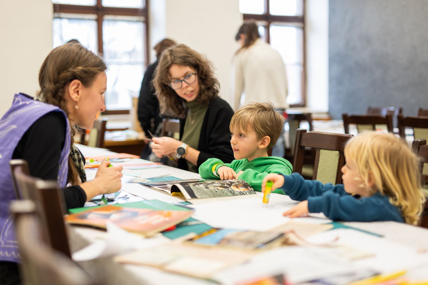 Součástí programu byla také tvůrčí beseda Můj zpravodaj s ilustrátorkou a autorkou Alžbětou Dvořákovou, která přiblížila vznik svého cestopisu inspirovaného stáží v grafickém studiu v Berlíně. Druhá část setkání patřila kolážovému workshopu, během něhož si účastníci vytvořili vlastní malý cestopis.