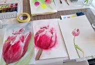 Na rozdíl od loňského předadventního malování se letošní kurz nesl v duchu jara, svěžesti a probouzející se přírody. Hlavním motivem se stal tulipán, jehož tvary a barevnost poskytly účastníkům prostor pro experimentování s akvarelovou technikou. Workshop vytvořil inspirativní prostředí pro setkání celkem patnácti kreativních účastníků napříč generacemi – od úplných začátečníků až po pokročilejší malíře.