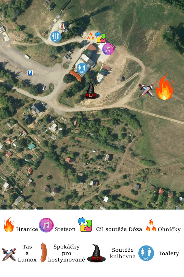 Večerní část programu zahájí vystoupení spolku Tas od 19:00 do 19:40. Následovat bude od 20:40 ohnivá show se zapálením hranice v podání Lumox. Po celý večer se navíc mohou návštěvníci těšit na hudební doprovod kapely Stetson. A kdo dorazí v čarodějnickém či jiném tematickém kostýmu, získá párek s pečivem zdarma.