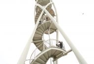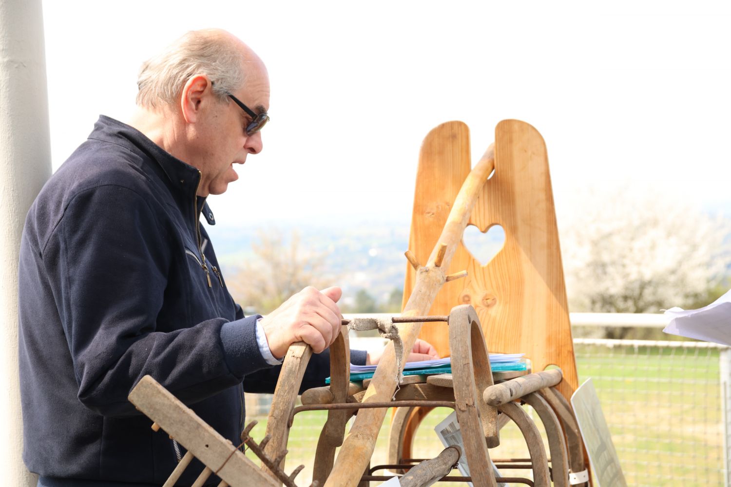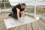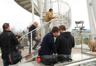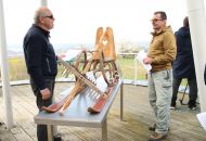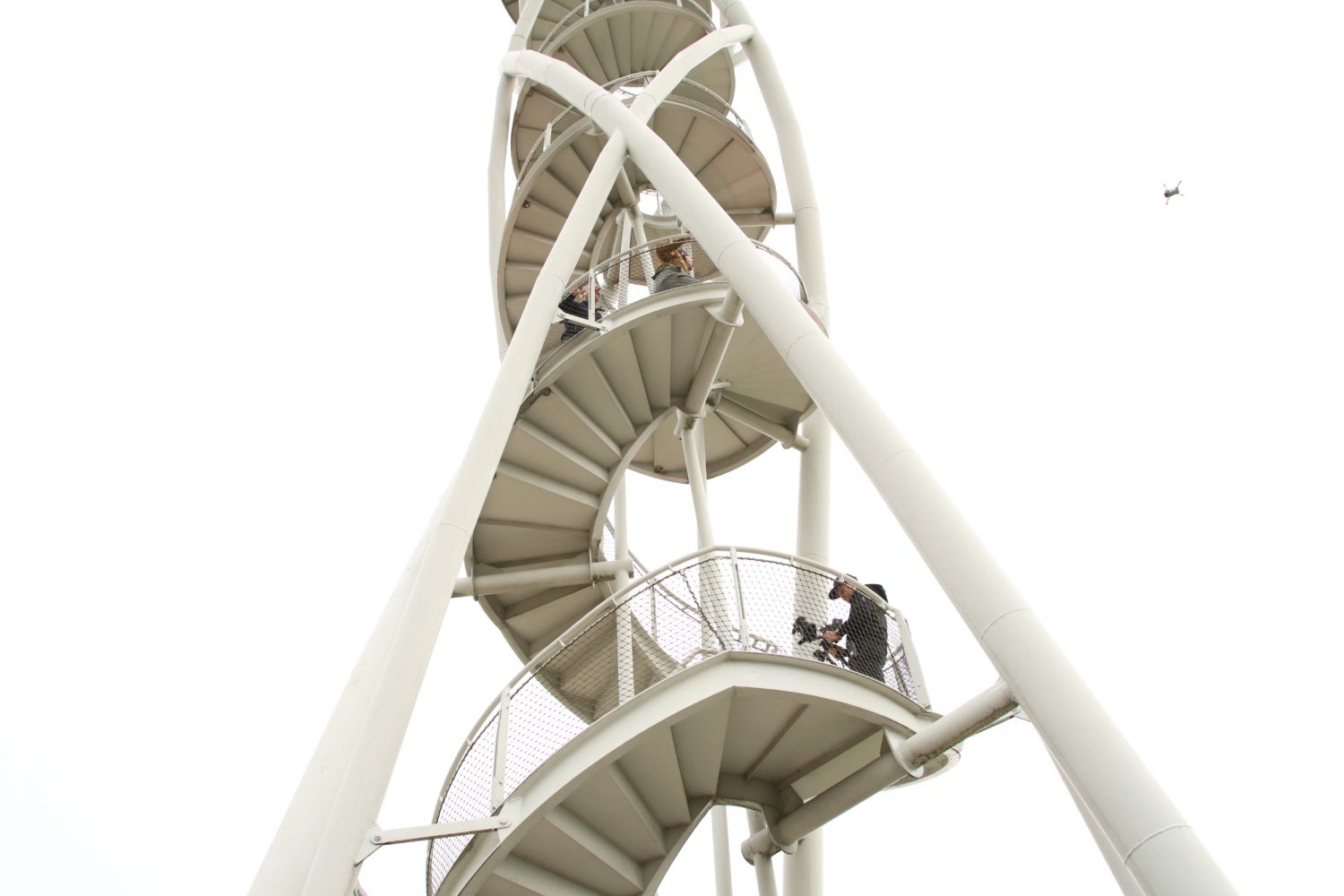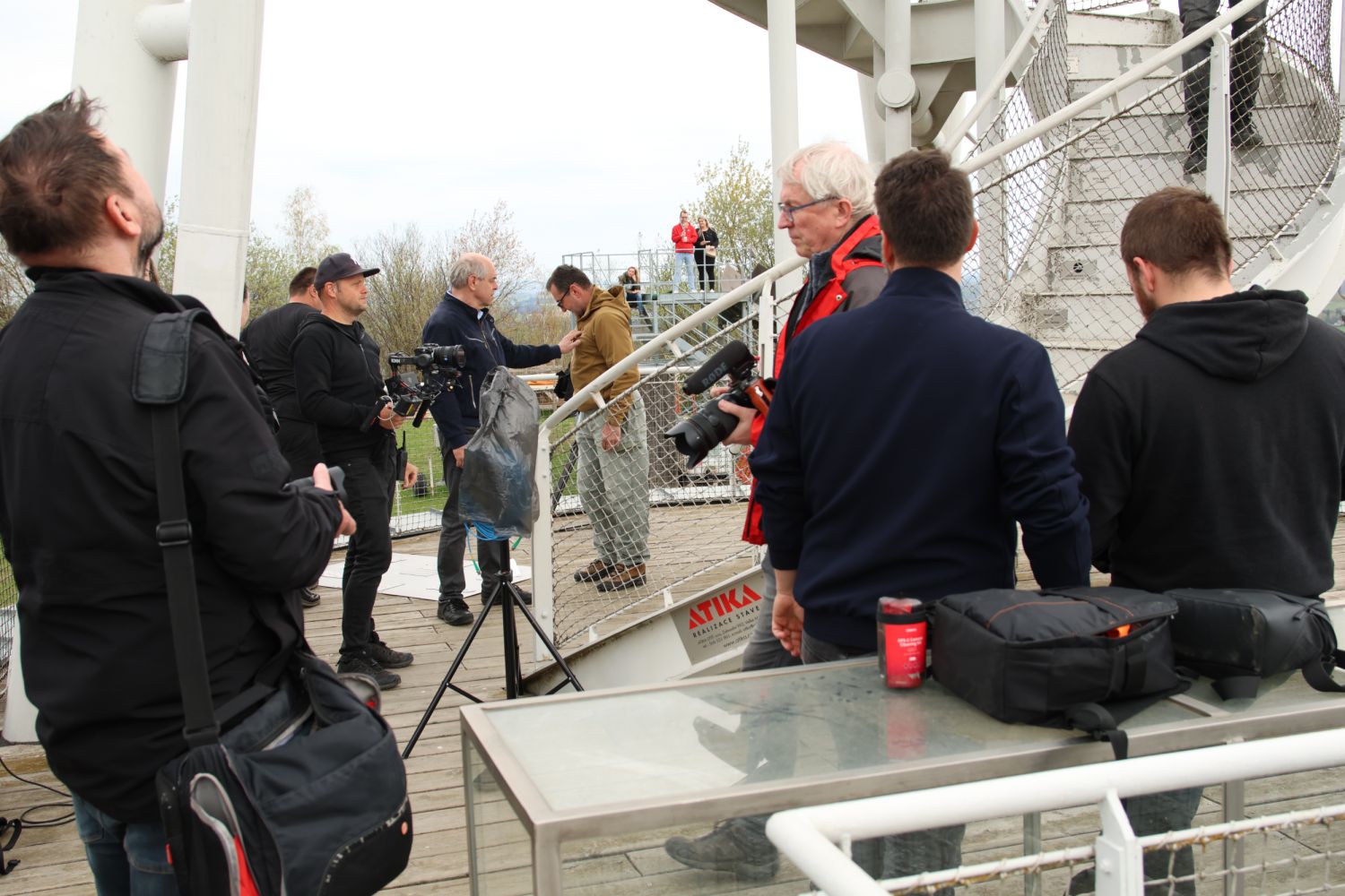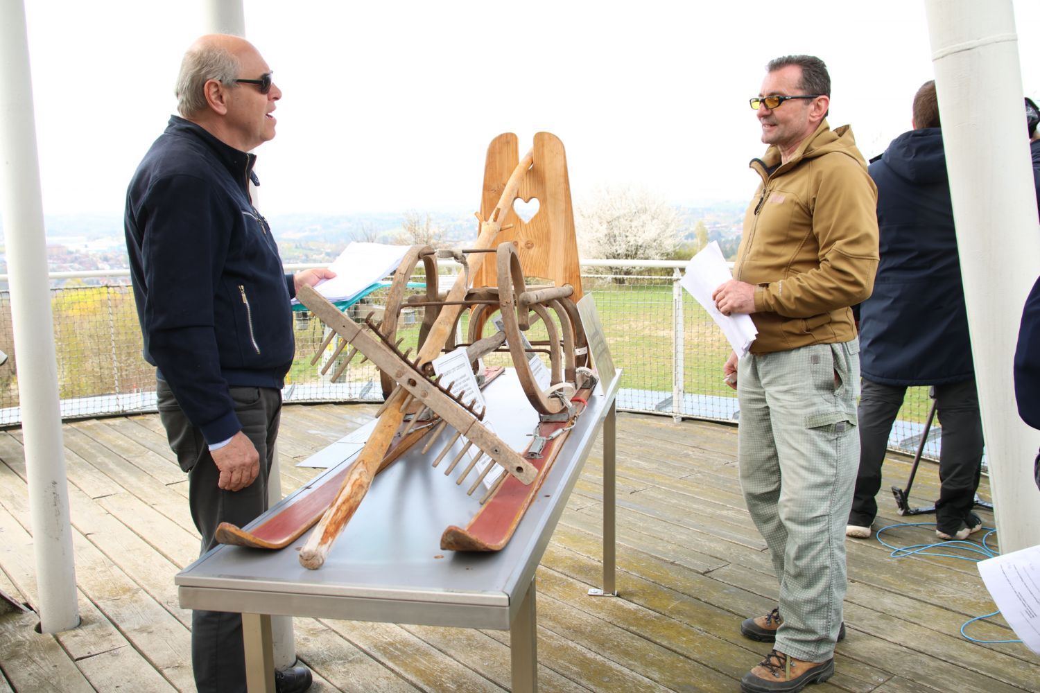 Miroslav Táborský s Ondřejem Vetchým vystoupali i na rozhlednu a pokochali se výhledem do širokého dalekého okolí. A pak se už oba herci naplno věnovali nedostižitelným vynálezům Járy Cimrmana.