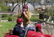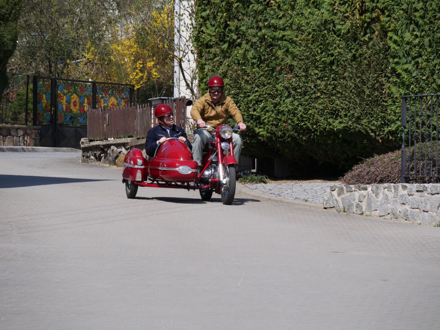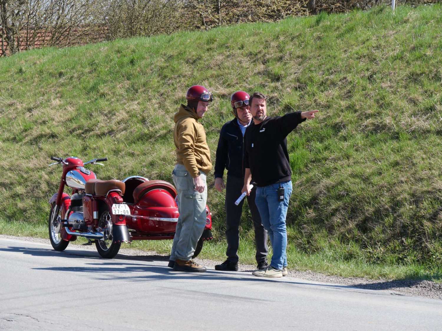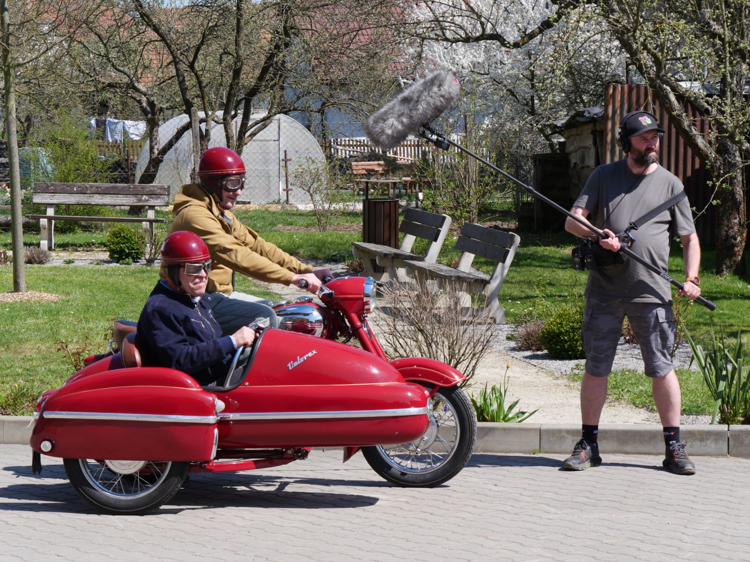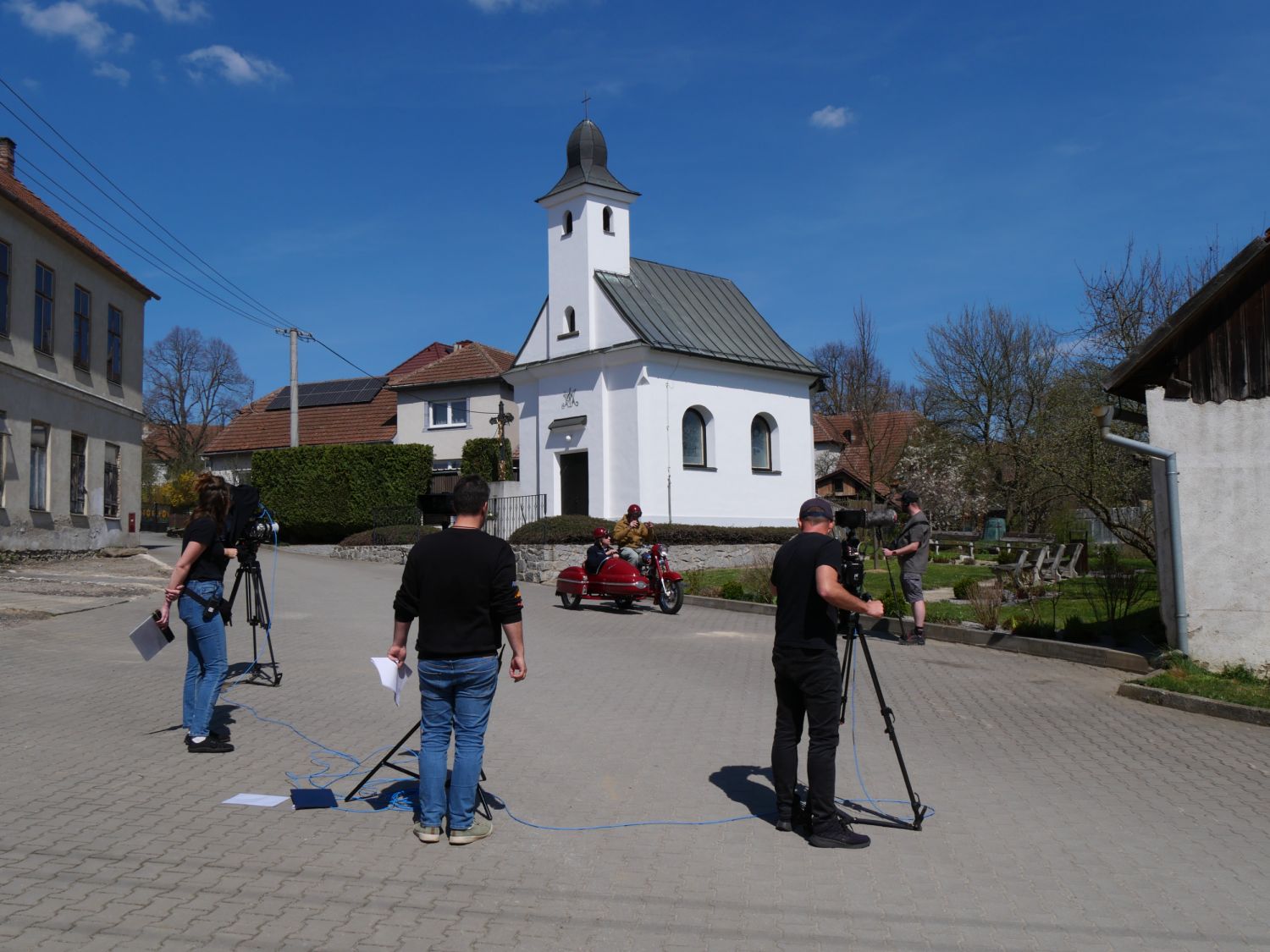V sobotu se za krásného jarního počasí točil příjezd průvodce seriálem Miroslava Táborského a jeho doprovodu v podobě herce Ondřeje Vetchého do Vídně. Miroslav Táborský v sajdě a Ondřej Vetchý za řídítky vymazlené historické Jawy, která byla zapůjčena z nedalekých Rouchovan.