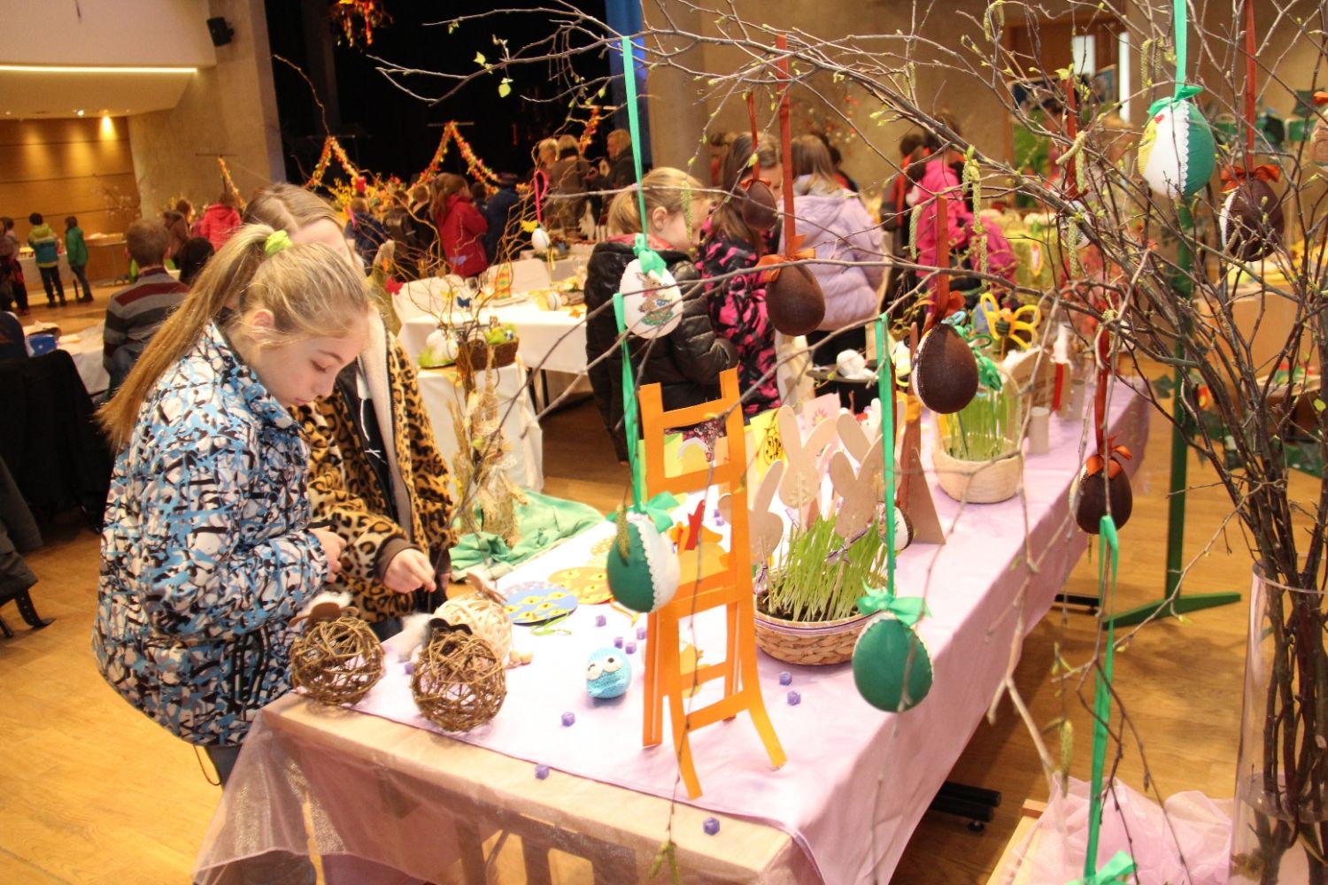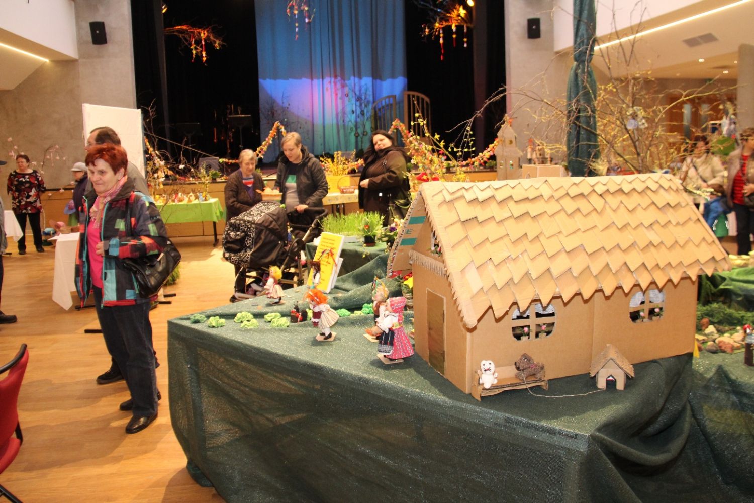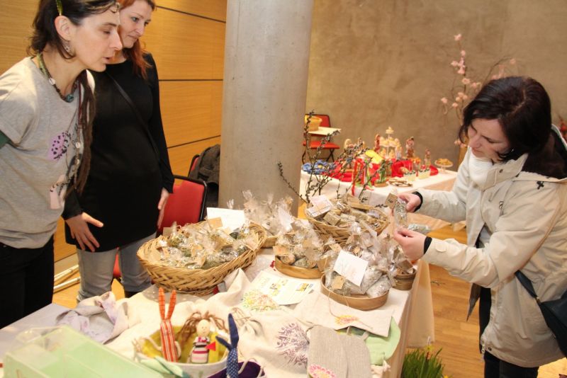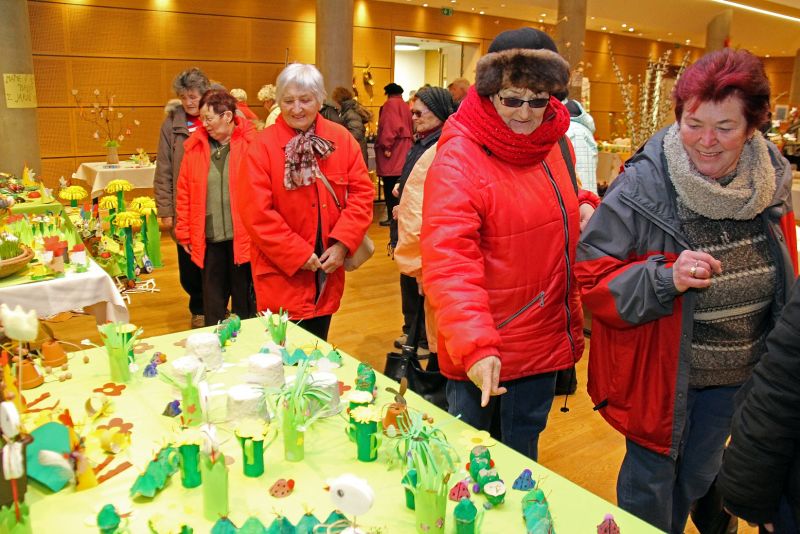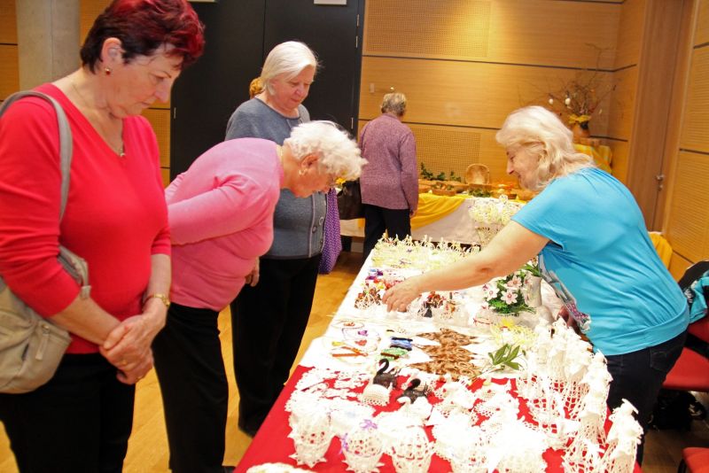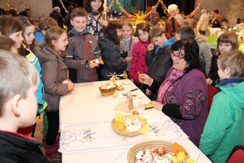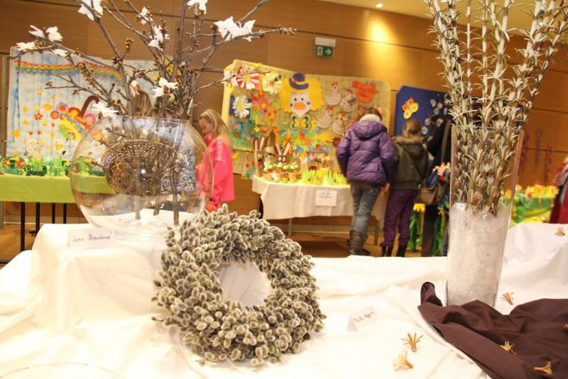 Výstava nese název Přijde jaro přijde..., i když její ranní zahájení doprovázela sněhová nadílka. Ženy připravily pestrou ukázku velikonočních výrobků všeho druhu, z rozličných materiálů a nepřeberného množství nápadů a jarních inspirací. Ukázky své tvorby v sále mají i děti ze zdejších škol, různé organizace i jednotlivci.