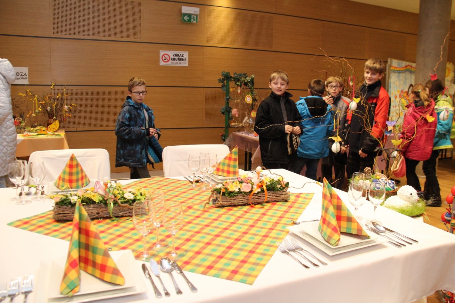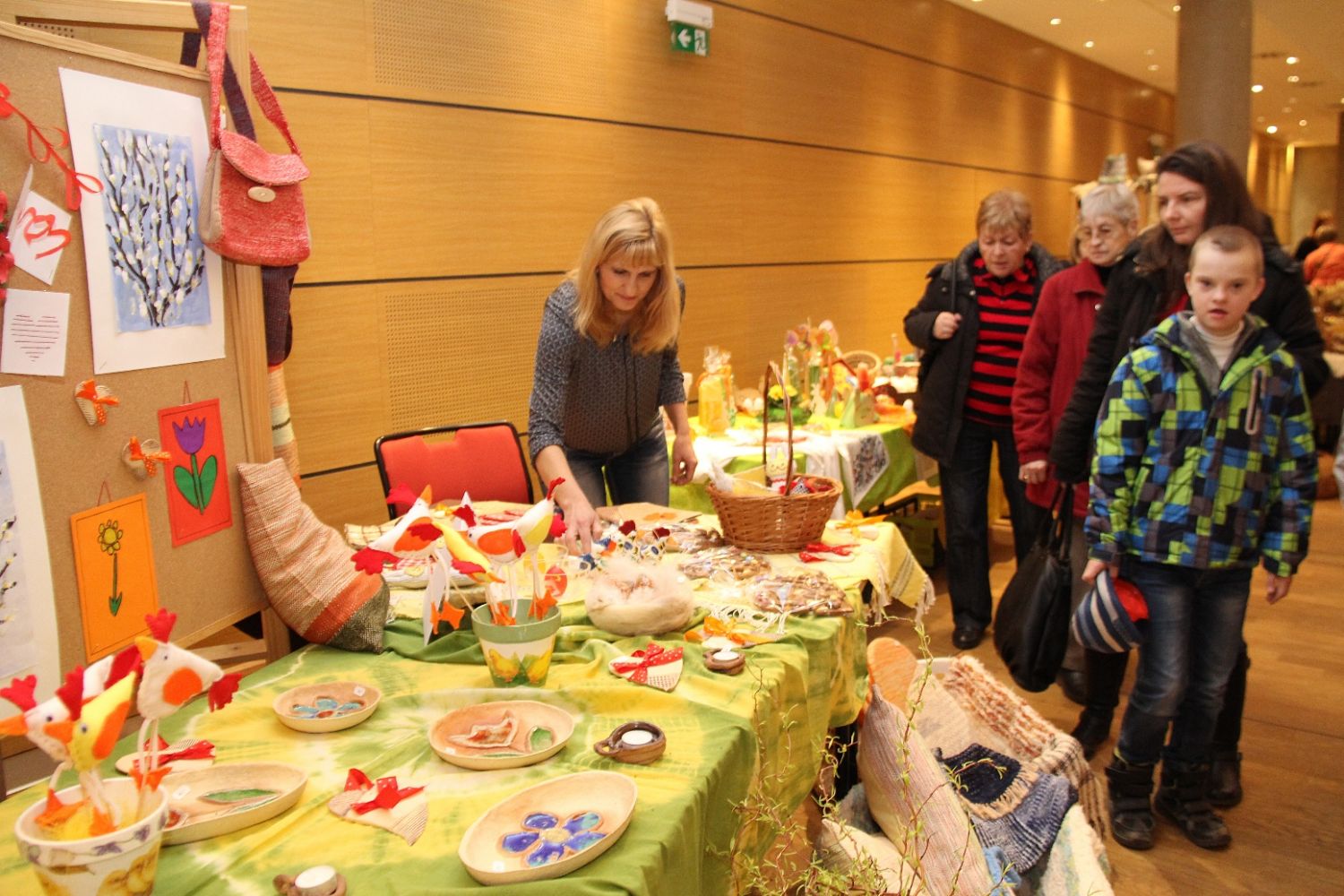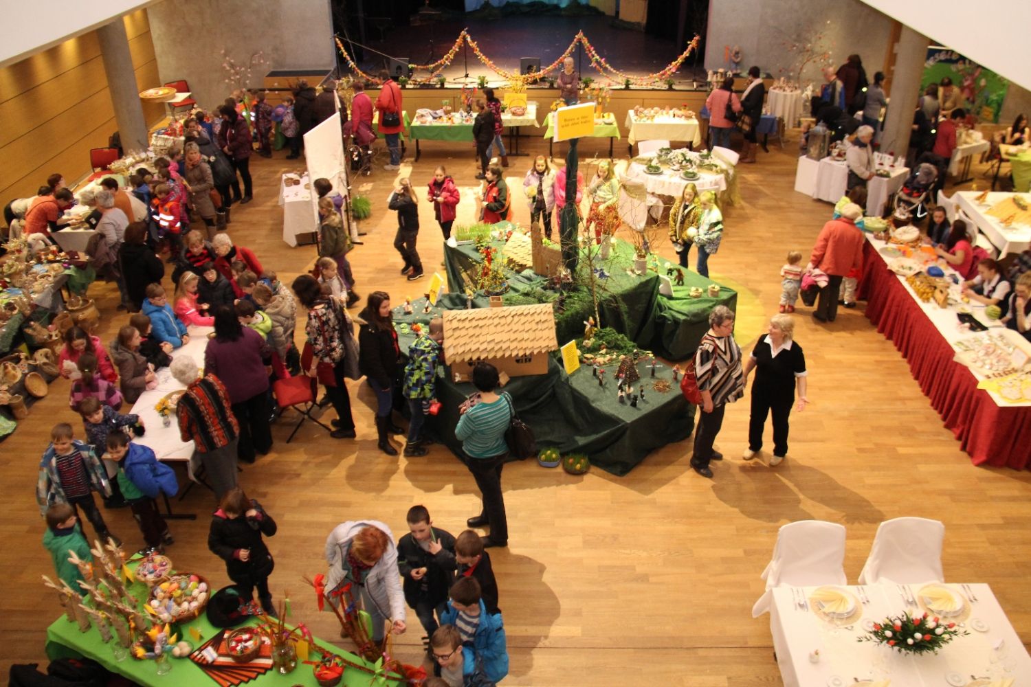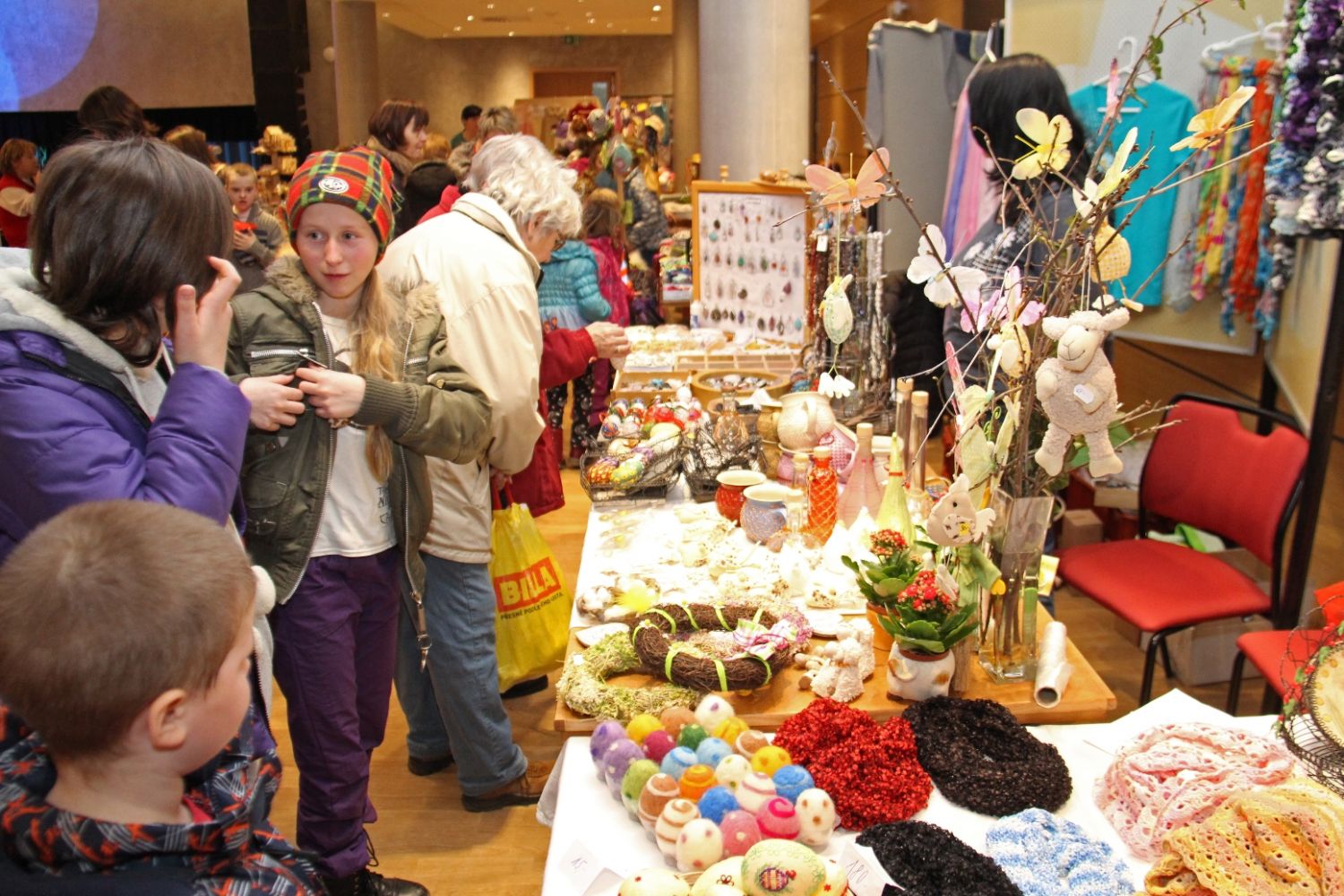 Výstava nese název Přijde jaro přijde..., i když její ranní zahájení doprovázela sněhová nadílka. Ženy připravily pestrou ukázku velikonočních výrobků všeho druhu, z rozličných materiálů a nepřeberného množství nápadů a jarních inspirací. Ukázky své tvorby v sále mají i děti ze zdejších škol, různé organizace i jednotlivci.