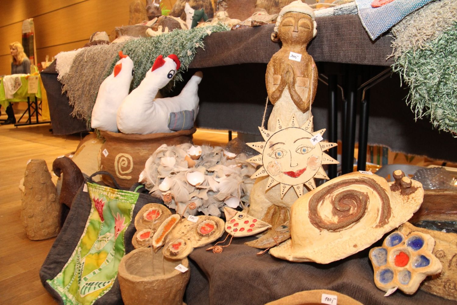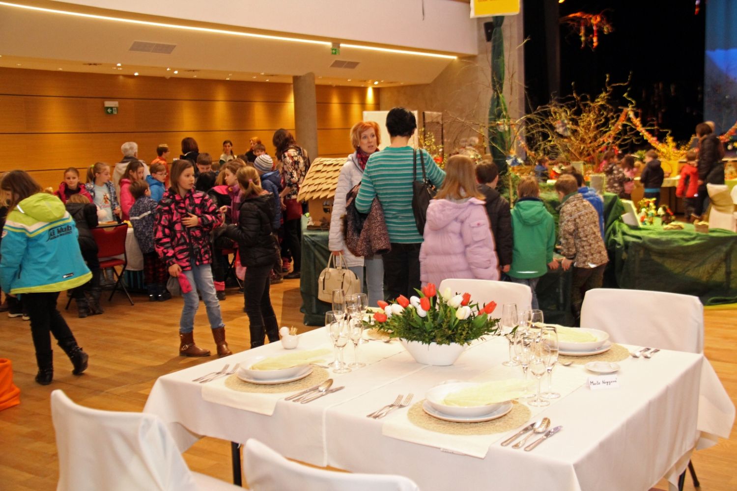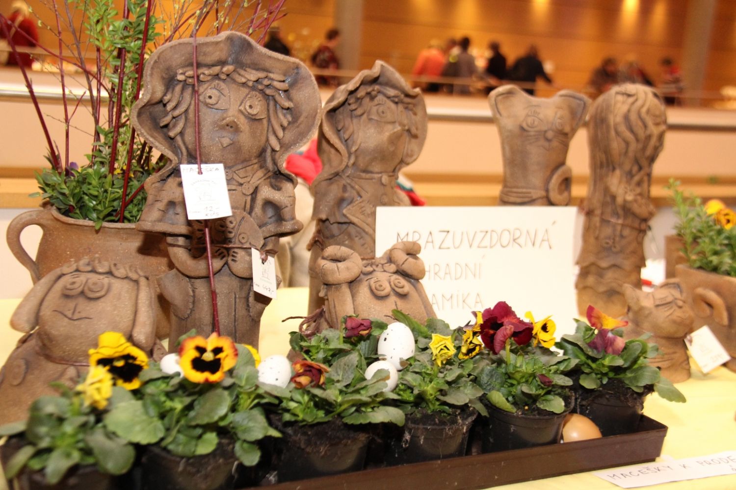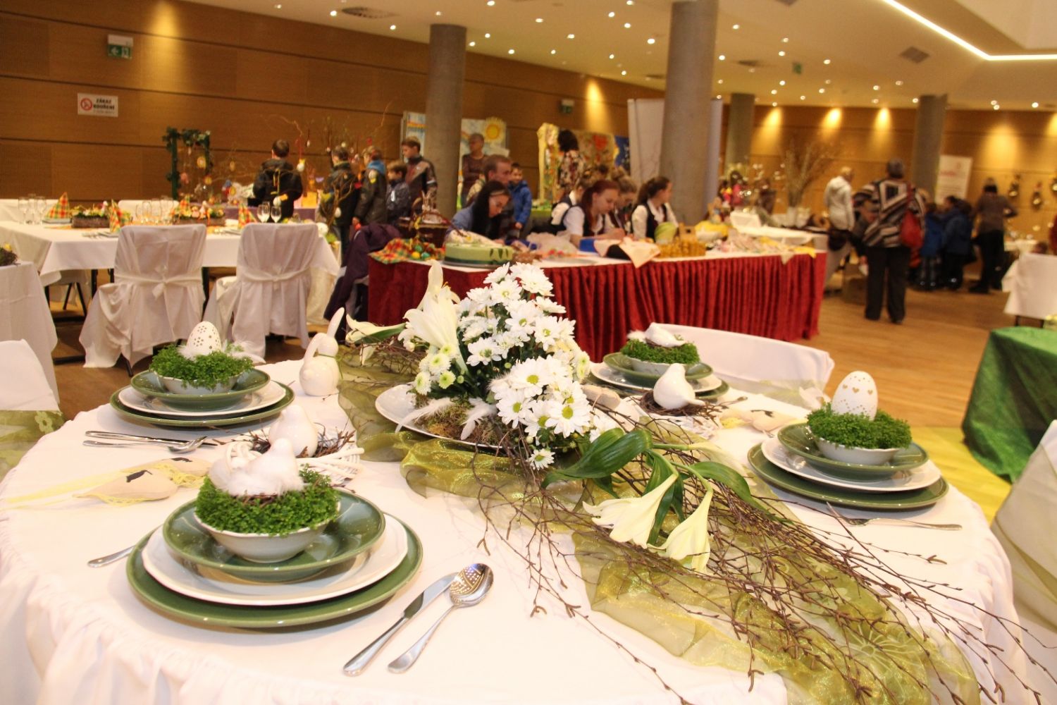 Výstava nese název Přijde jaro přijde..., i když její ranní zahájení doprovázela sněhová nadílka. Ženy připravily pestrou ukázku velikonočních výrobků všeho druhu, z rozličných materiálů a nepřeberného množství nápadů a jarních inspirací. Ukázky své tvorby v sále mají i děti ze zdejších škol, různé organizace i jednotlivci.