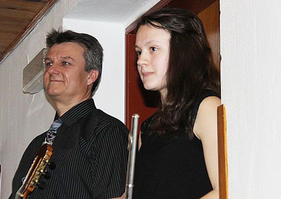 Čtvrteční koncert z Kruhu přátel hudby zahájila Tereza Heralecká z místní základní umělecké školy hrou na příčnou flétnu. Žákyně Kláry Kostelníkové za kytarového doprovodu Petra Němce zahrála skladbu Café 1930 od Astora Piazzolly.