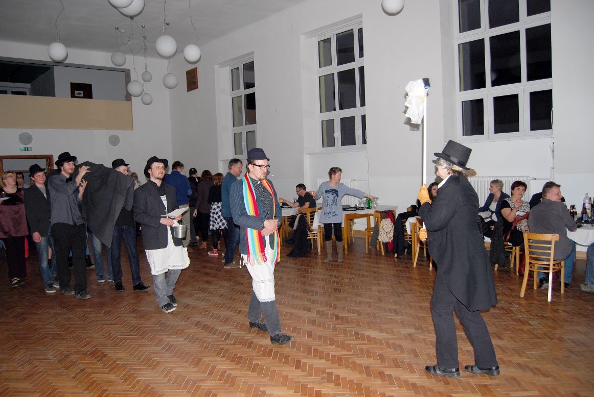 Když na kostelní věži odbila půlnoc, světla v sokolovně potemněla a přes sál se vydal smuteční průvod. V jeho čele kráčela týdny nacvičovaným krokem s koštětem Milena Příhodová, dcera paní Vodičkové, za ní pak Miroslav Sýkora, režisér a herec místního ochotnického souboru Béčko, jako farář, Ondřej Nagy jako kostelník, následovaní Martinem Tichým, Martinem Horníčkem, Milošem Ondráčkem a Milanem Pazderou, kteří na svých ramenou nesli basu zakrytou černou látkou, dále pochodoval dav se svíčkami lkající, naříkající a vzlykající. Když byla po humorném obřadu basa řádně pohřbena, kapela hrála dál a chasa se nerozutekla. Kateřina Suchánková, jedna z účastnic, k tomu tehdy řekla: „Ačkoliv se takto odbočilo od tradice, líbí se mi, že se takovéhle věci zase vrací. K životu na vesnicích a v menších městech to zkrátka patří." Místostarostka Křižanova a vnučka zmiňované paní Vodičkové Radomíra Schmidová celou akci hodnotí slovy: „Sice přišlo málo lidí, ale událost to byla velmi podařená – všichni si ji užili. Rozhodně se v tom bude pokračovat." Městys Křižanov akci finančně podpořil.