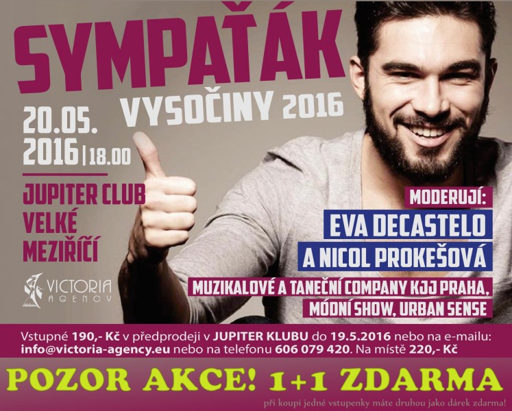 Jupiter club Velké Meziříčí a Victoria agency - produkční a modelingová agentura připravují soutěž Sympaťák Vysočiny 2016