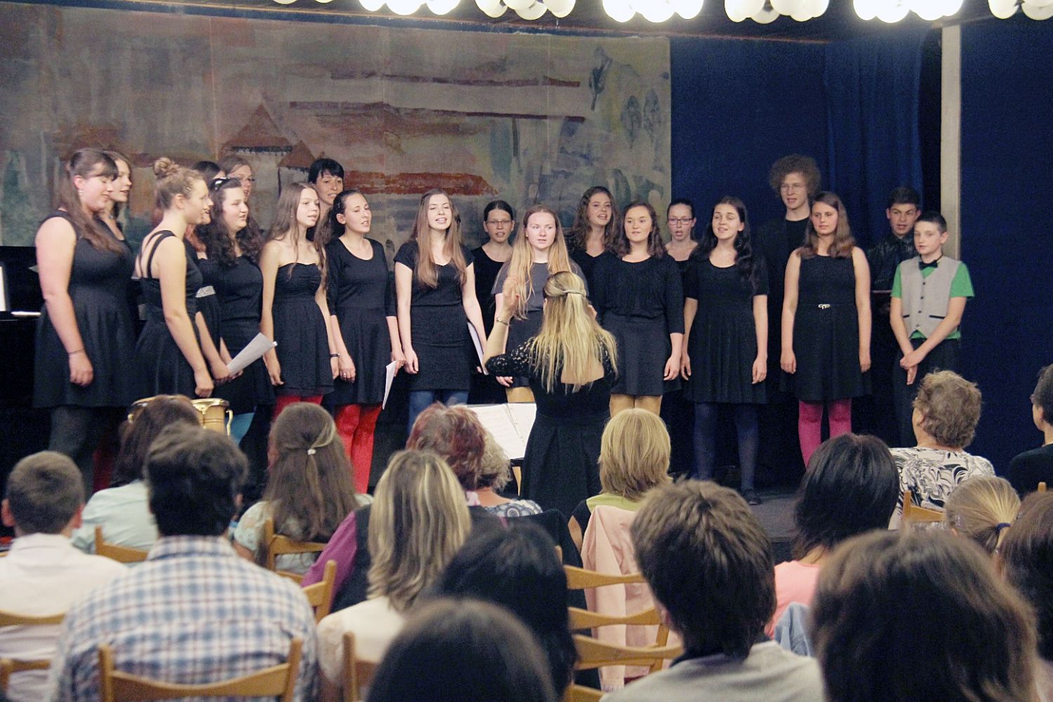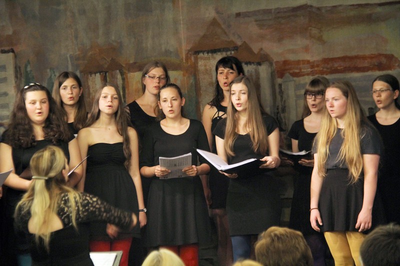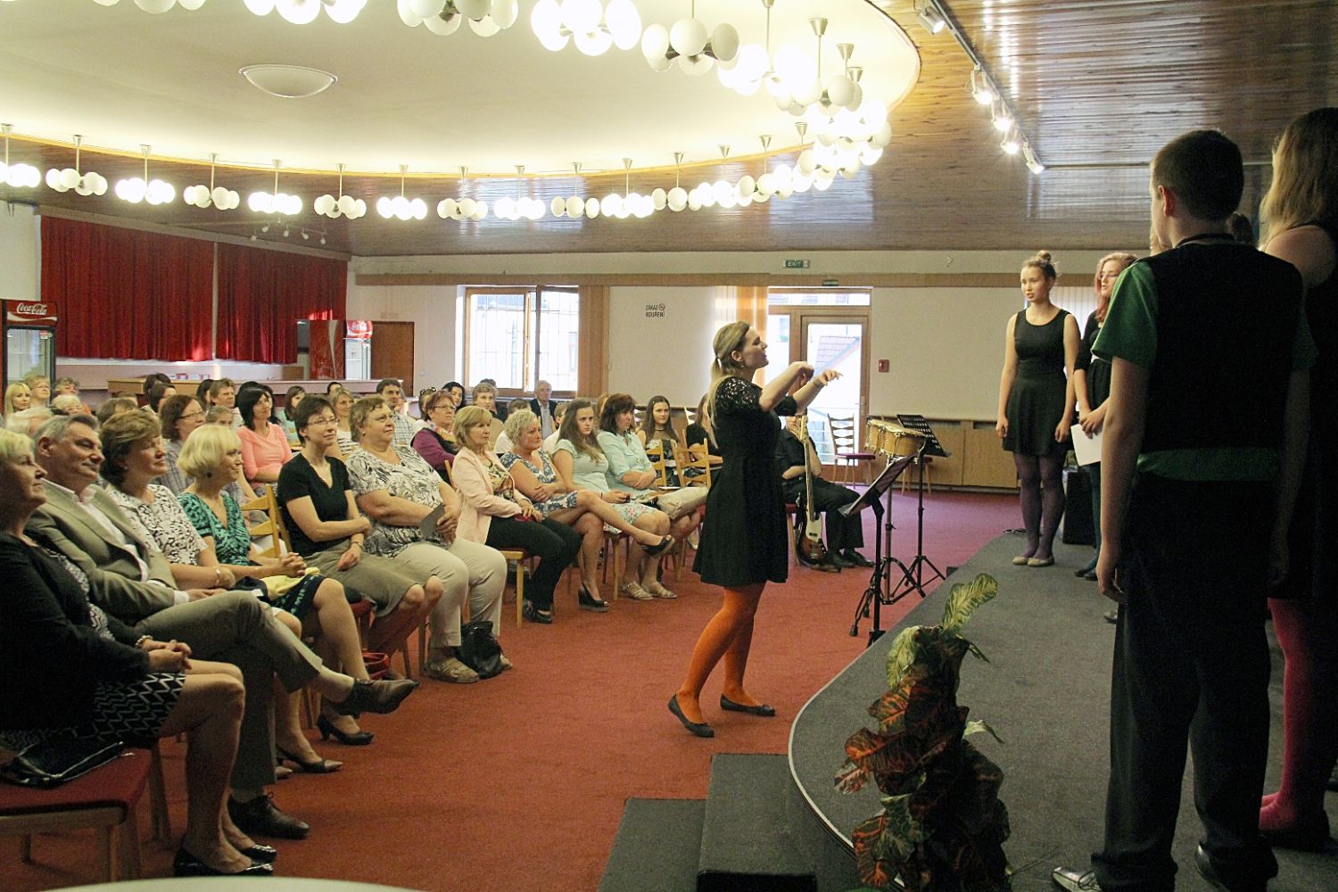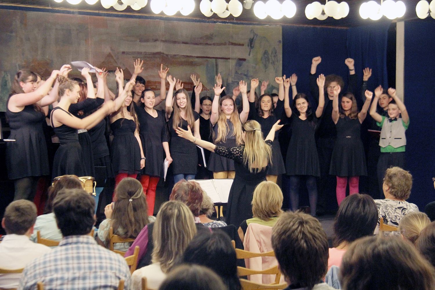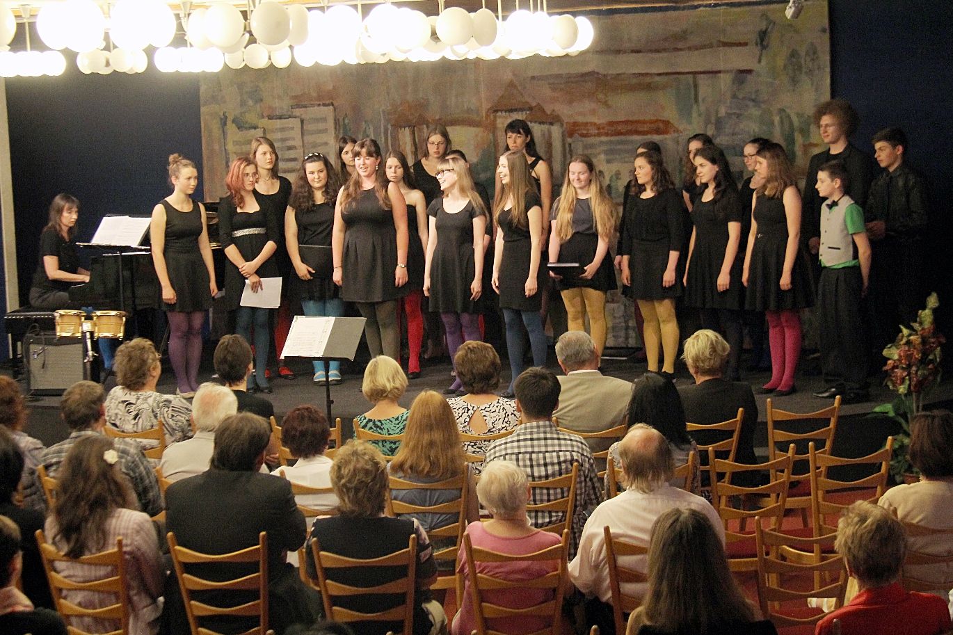 Pěvecký sbor gymnázia Velké Meziříčí se představil v rámci sedmého dne Evropského festivalu filozofie. Zazpíval pod vedením Markéty Prudíkové a za klavírního doprovodu Pavly Kamanové v koncertním sále Jupiter clubu ve čtvrtek večer.