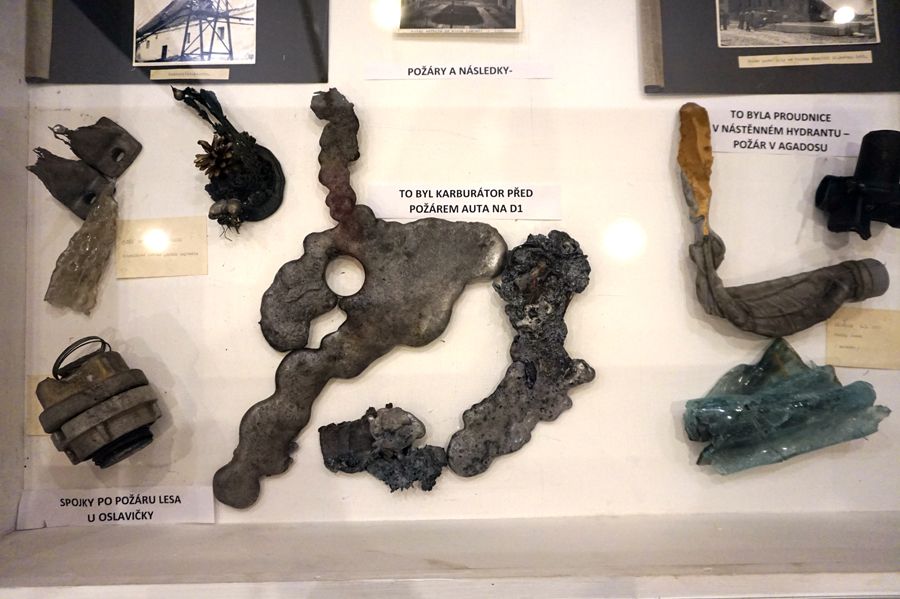 Vitrína s následky požárů budila zaslouženou pozornost.