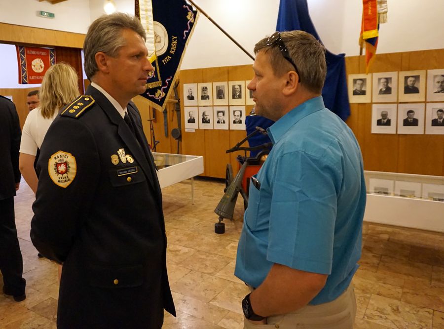 Vernisáž průřezové výstavy o historii i současnosti sboru, která je v předsálí kina Jupiter club otevřena až do třetího července, se nesla zejména v duchu připomínky důležitosti hasičského hnutí nejen pro samotnou hasičskou činnost, ale pro společnost obecně. Například úlohu hasičů při protinacistickém odboji i velkomeziříčské tragédii vyzdvihnul ve svém projevu starosta sboru Stanislav Kratochvíl.