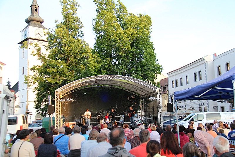 Pódium na náměstí střídal tento víkend koncert za koncertem. Po pátečním Žalozpěvu a sobotním Franta Kasl Bandu ve Velkém Meziříčí zahrál v neděli od 19 hodin Jaroslav Hutka