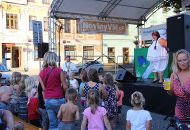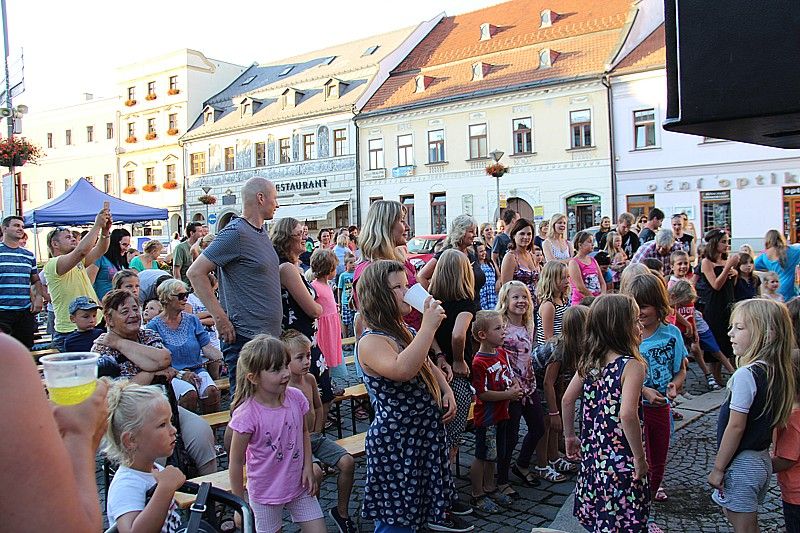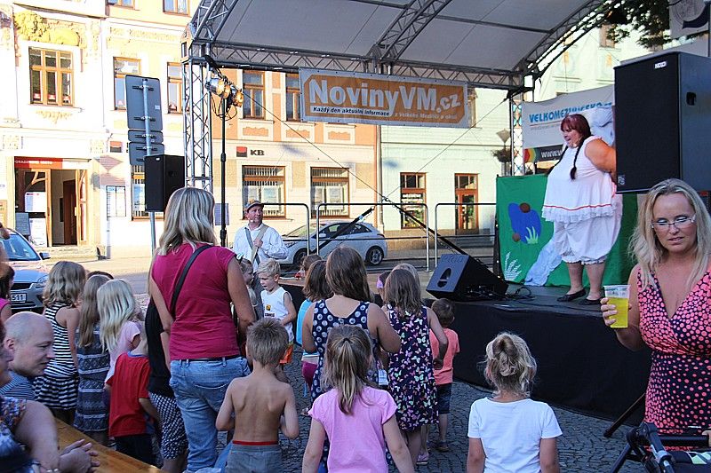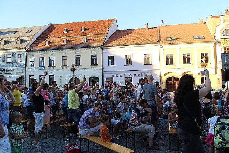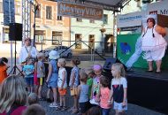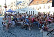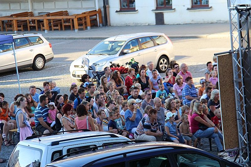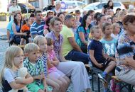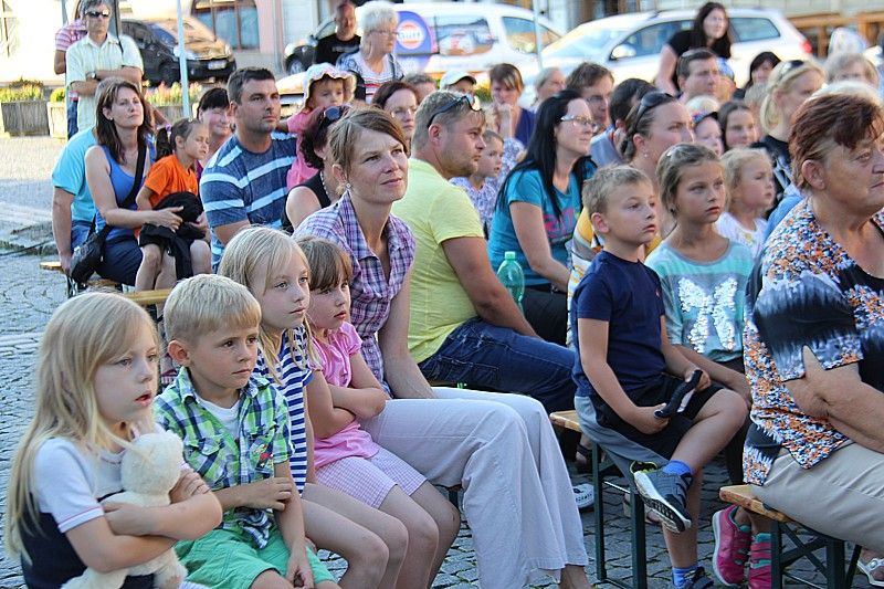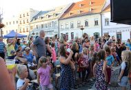 Lavičky u podia zcela zaplnili rodiče s dětmi, které přilákalo pohádkové představení. Dvojice herců během příjemného letního večera zaujala přítomné zábavným vystoupením s lidovými písničkami - Nešťastný šafářův dvoreček aneb putování Zápecníčka za štěstím a Jak si Kuba vysloužil Marjánku.