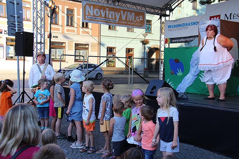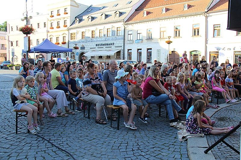 V nabídce Velkomeziříčského kulturního léta nechybělo divadelní představení. Herci z Divadla Kapsa zahráli v sobotu večer na náměstí dvě pohádky