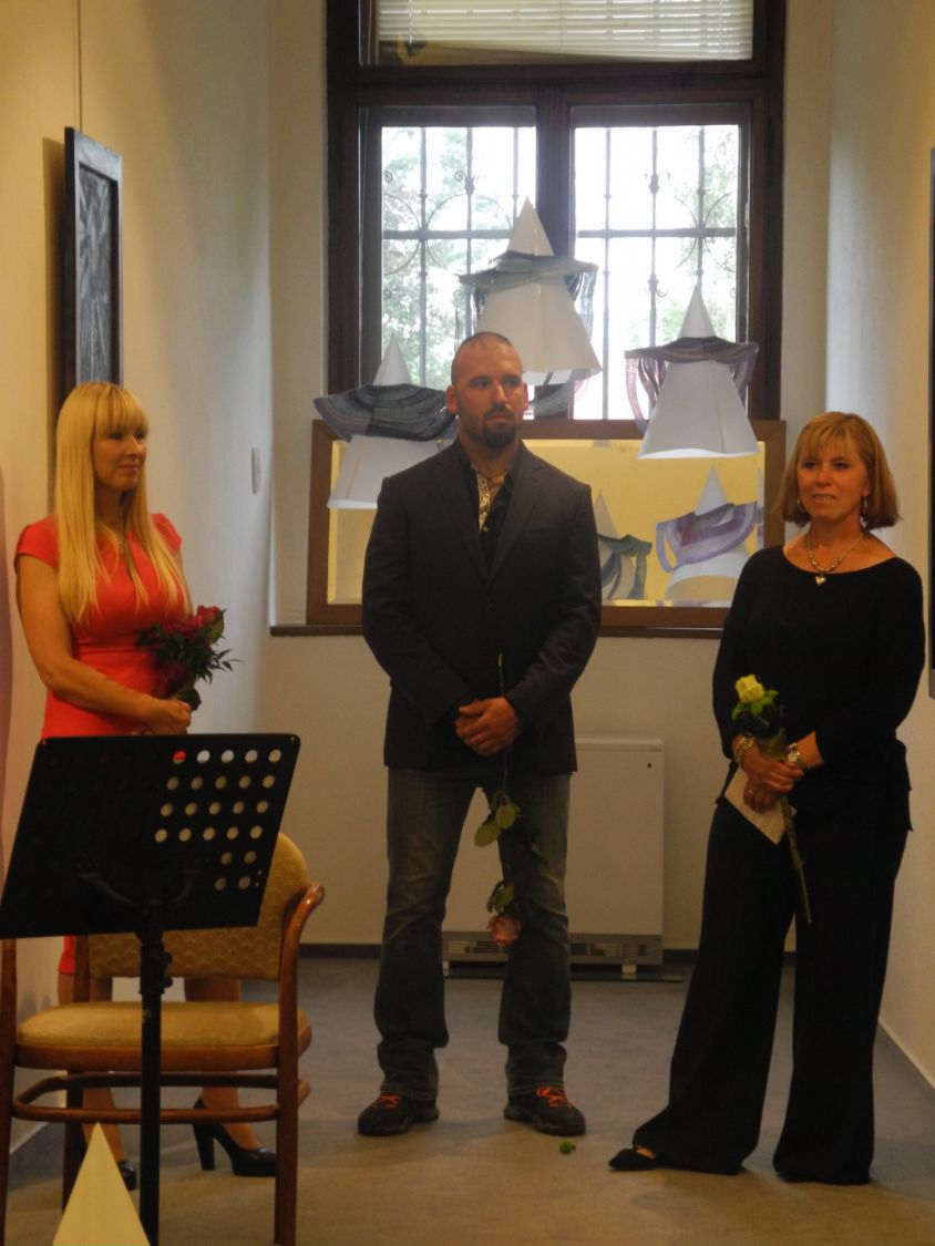 Návštěvníky přivítala ředitelka muzea Mgr. Irena Tronečková, hudební doprovod zprostředkovali Aneta Vrbková, Jana Mikysková a Radek Polášek. Umělci byli představeni kurátorkou Mgr. Petrou Czumalovou, která poutavě pohovořila o vzájemné propojenosti jejich tvorby, vyzdvihla rukodělnost coby základní atribut umění, ocenila dekorativní kvalitu děl i nemalou míru expresivity. Návštěvníci si mohli prohlédnout kombinované techniky a porcelánové mozaiky, kterými jsou obohacené sugestivní akrylové obrazy Ivany Hladíkové, a to: Okno plné hvězd, Voda ve vzduchu, Země vzdálená, Kapka naděje, Kruhy ve vodě, Život je kvíz, Protiklady, Zrození světla a Tři srdce – Potrat dítěte. Naproti tomu Jakub Jašek vystavil tři velkoformátové akryly expresivního stylu comics noir. Plošná tvorba byla citlivě doplněna paličkovanými náhrdelníky z tvorby Aliny Jaškové, pro niž je typická vysoká ornamentálnost, kombinace materiálů i různost tvarů.