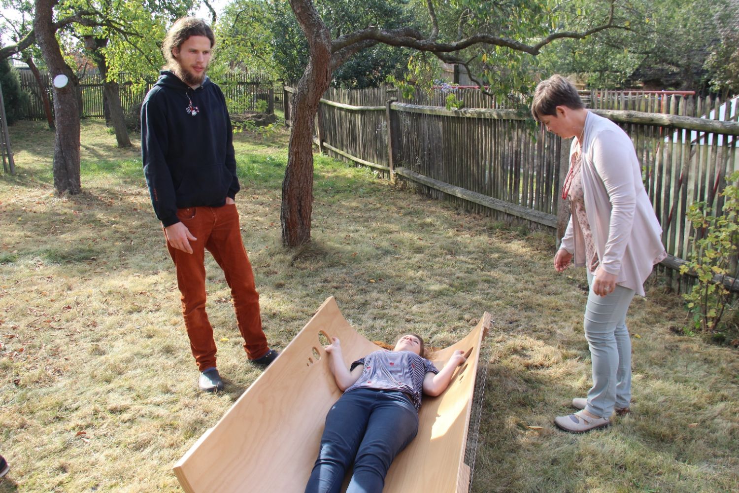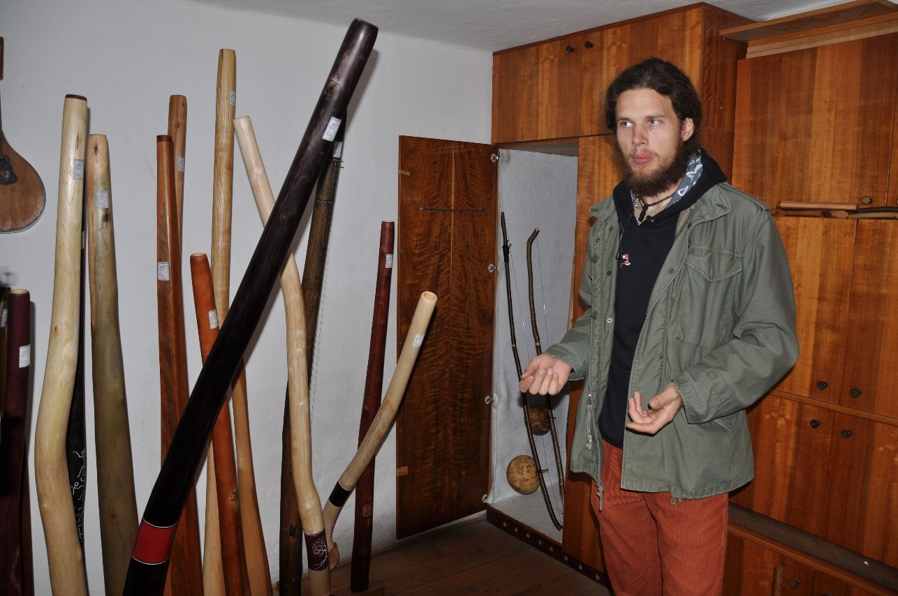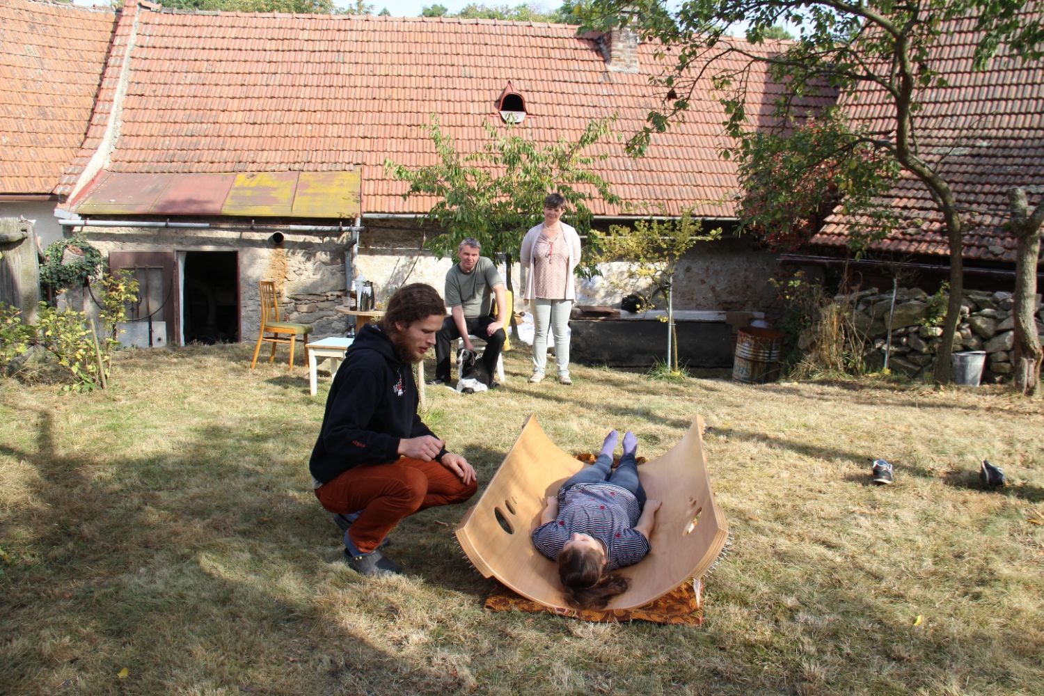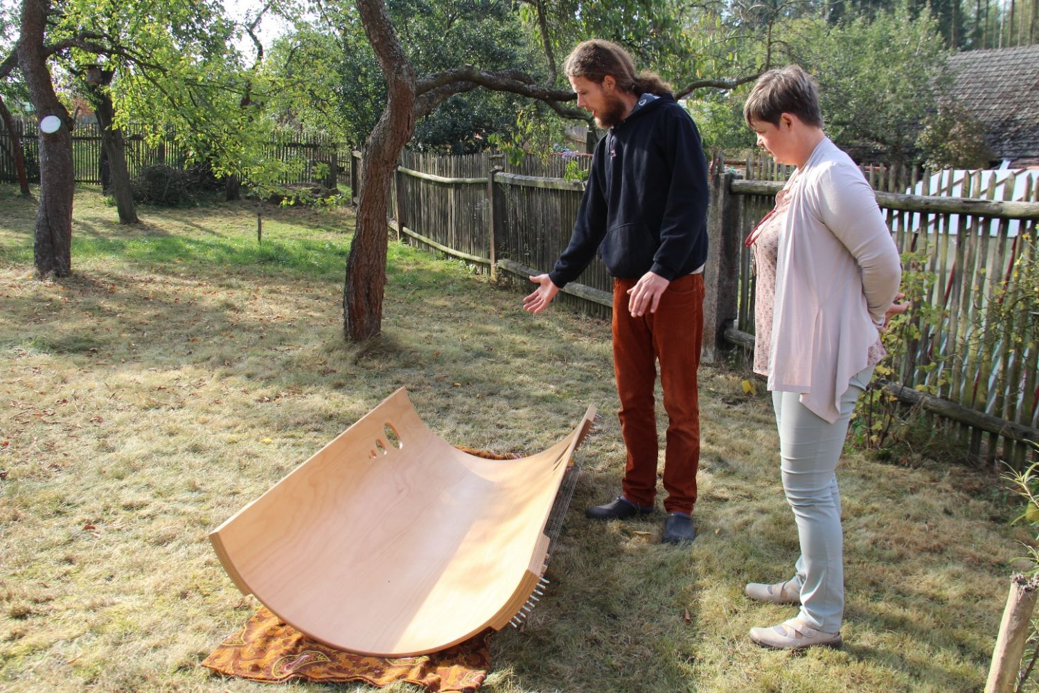 Svoji vlastní, nedávno opravenou dílnu v Dolních Radslavicích otevřel i Tomáš Dufek, jenž vyrábí dřevěné hudební nástroje. Nejvíce didgeridoo, ale i různé bubny, ústní harfy. Zájemci si je mohli vyzkoušet, dokonce si odnášeli některé kousky domů. Tomáš návštěvníkům představil svoji novinku. „Je to můj prvovýrobek. Jde o harmonizační lůžko. Jeho finální podobu jsem dolaďoval asi tak rok, samotná výroba pak zabrala zhruba měsíc,“ popsal. Kdo chtěl, mohl do něj ulehnout a nechat se spolu s ním „rozeznít“.