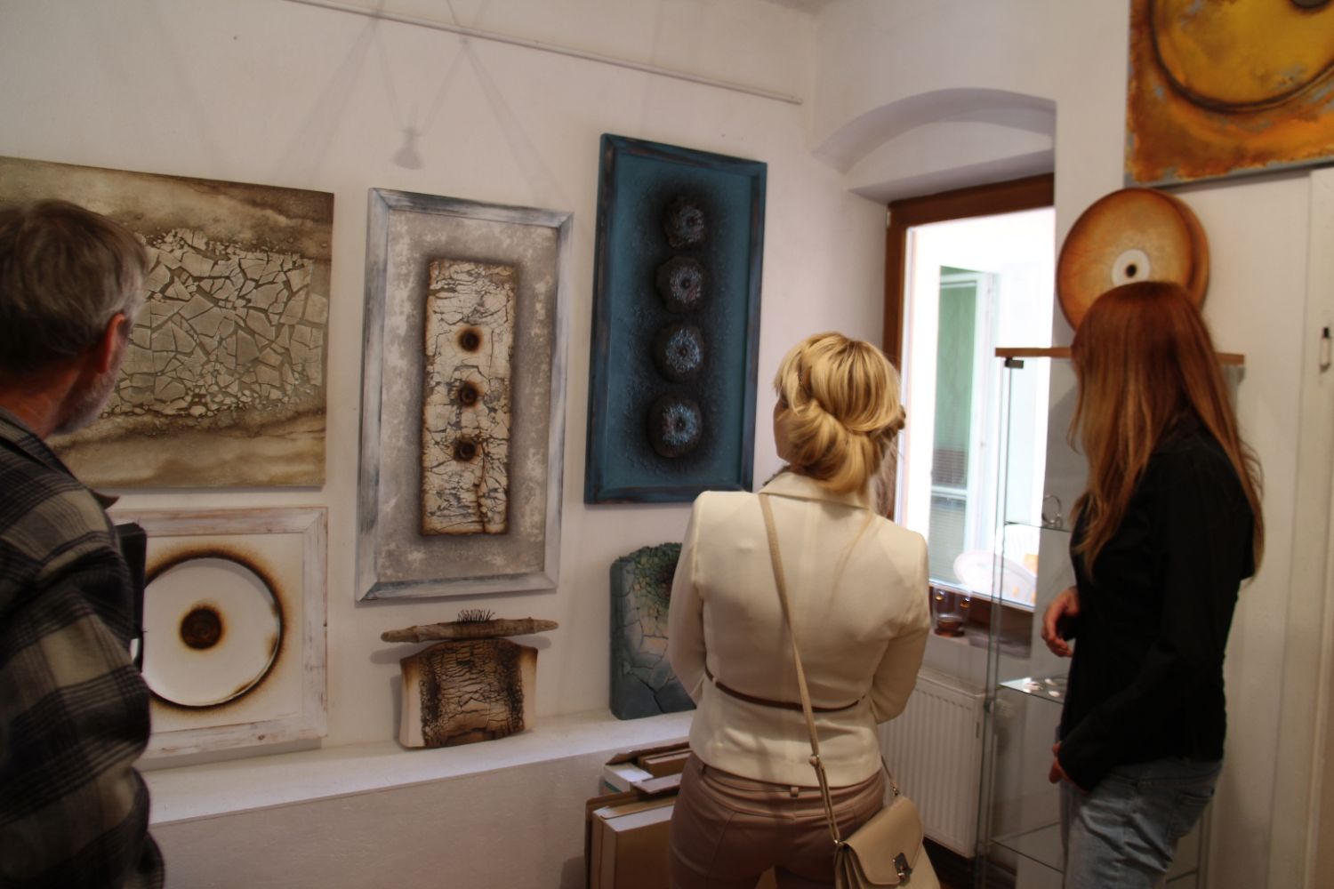 I na Velkomeziříčsku zvaly k návštěvě desítky tvůrců. Někteří uspořádali společnou vernisáž, jako třeba skupina VelMez Art no. 2, která vystavuje v Jupiter clubu letos podruhé. „Zveme k účasti na společné výstavě ty, kteří nemají vlastní prostory a chtějí se přidat k nám. Naše skupina tedy nemá stálou sestavu,“ vysvětlily její zakladatelky Libuše Kotoučková a Martina Pospíšilová. Podobně i Ateliér V Podloubí pokaždé seskupuje jiné výtvarníky. „My se účastníme již pošesté, tedy od prvního ročníku akce,“ sdělila Jana Mikysková, majitelka ateliéru. K ní se pravidelně přidává šperkař Miroslav Štěpánek. „Letos jsou tu s námi i Míla Svobodová s oděvní tvorbou a Alice Trojanová s ukázkou klobouků,“ dodala J. Mikysková.