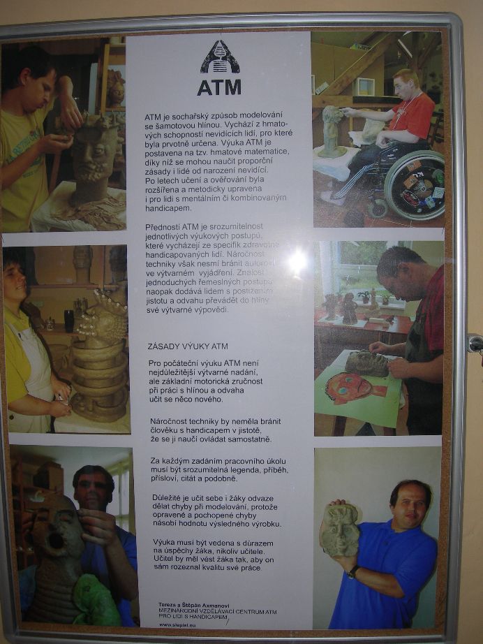 Lidé se mohli blíže seznámit s Axmanovou technikou modelování, podívat se na svět očima nevidících. Ke zhlédnutí byla výstava jedinečného souboru reliéfů, které vyobrazují život Ježíše Krista, od nevidícího autora Pavla Slámy. Vystaveny byly i další sochy od nevidících studentů a pro děti byla připravena venkovní kuličková dráha s hmatovými hračkami.