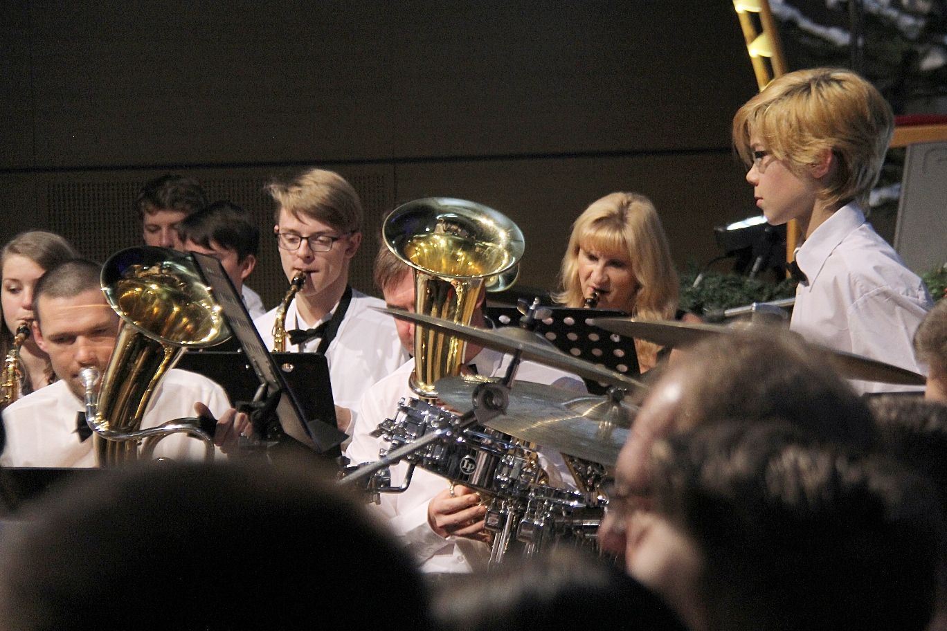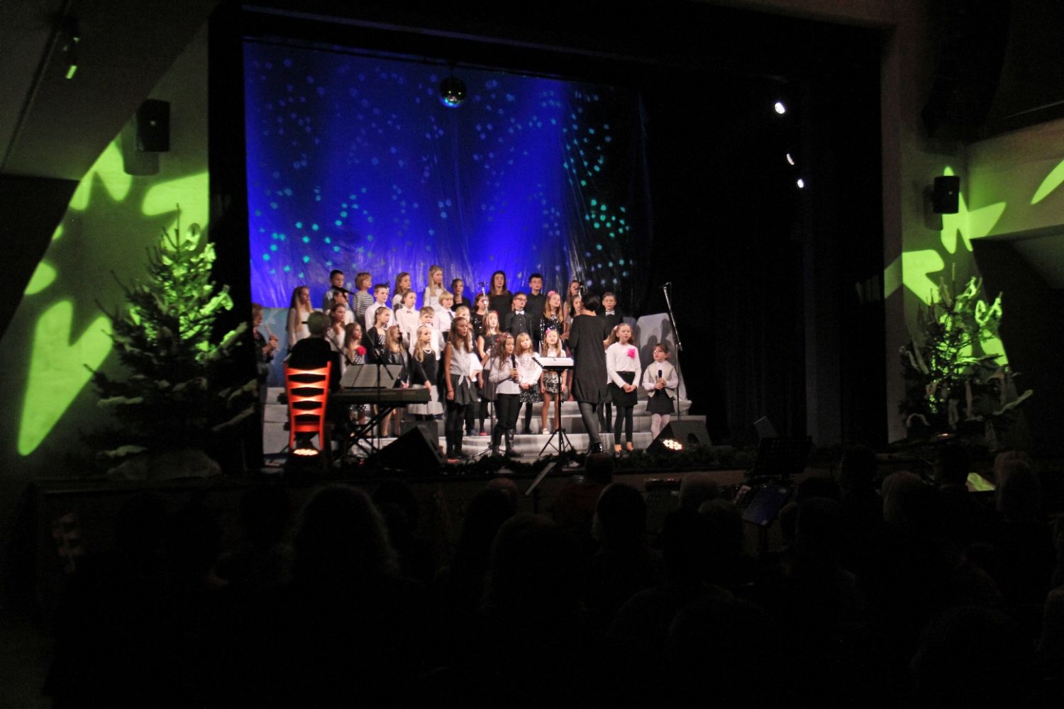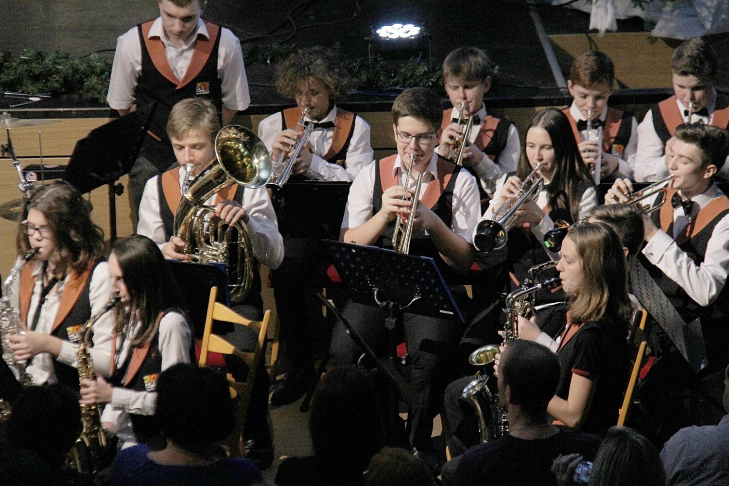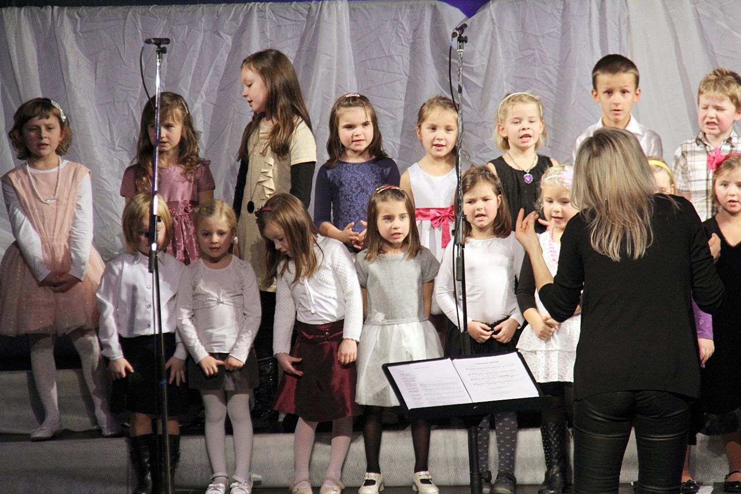 Po přestávce už patřil program výhradně základní umělecké škole. Nastoupilo něžné dechové trio vedené Klárou Kostelníkovou. A hned za nimi pěvecké sbory Andantino a Andante Heleny Valové. Ty bylo vidět na pódiu v podstatě až do samého konce pořadu, neboť spoluúčinkovaly i se Smíšeným orchestrem ZUŠ, který pod taktovkou Martina Karáska koncert uzavíral. Zazněly i skladby F. Sinatry May Way či M. Jacksona Heal The World. A ve finále tradiční koleda Narodil se Kristus Pán. Těsně před ní i s oběma moderátory programu Adélou Ubrovou a Jakubem Karbanem připil přítomným na zdraví Milan Dufek, který se s posluchači s přáním krásných Vánoc prožitých v kruhu rodinném rozloučil.
