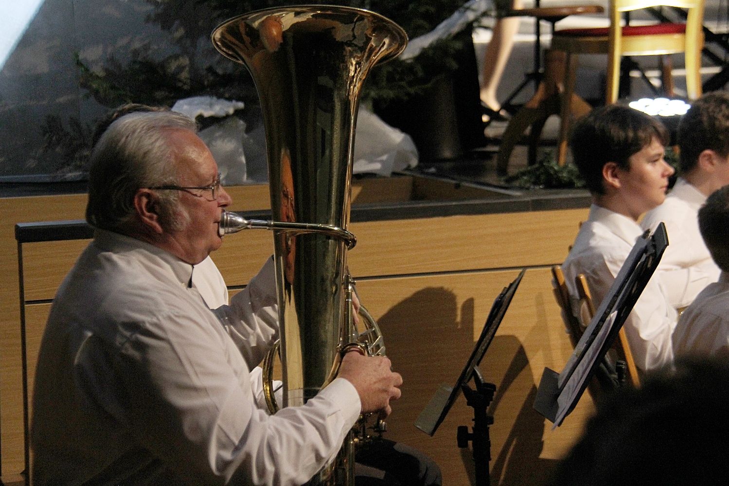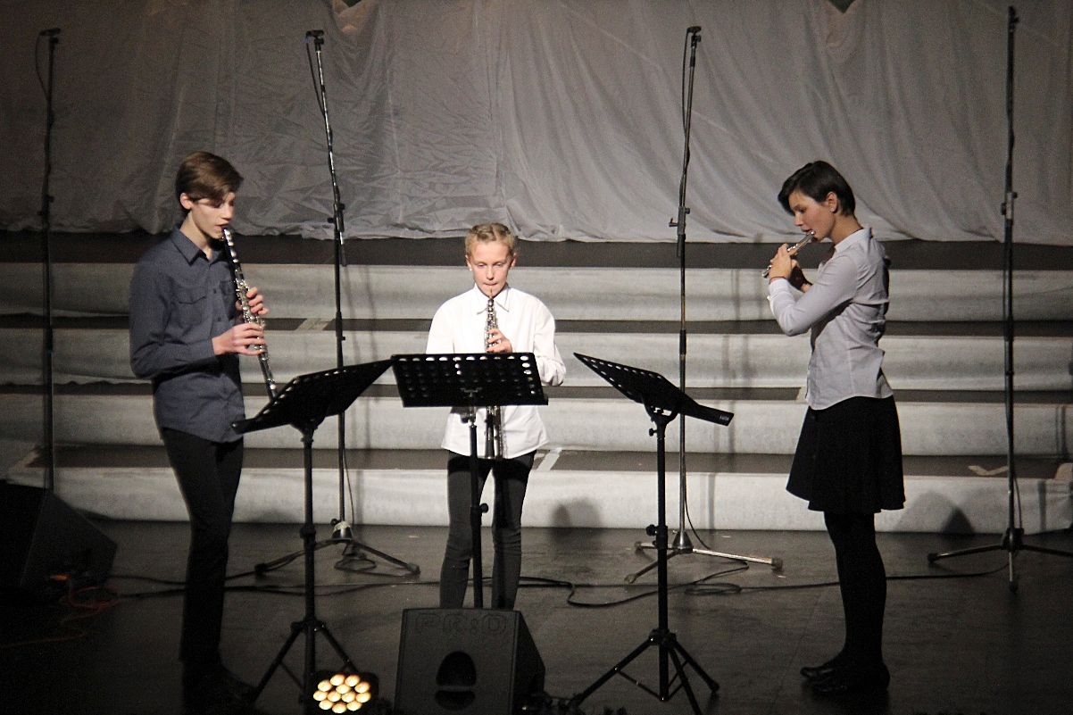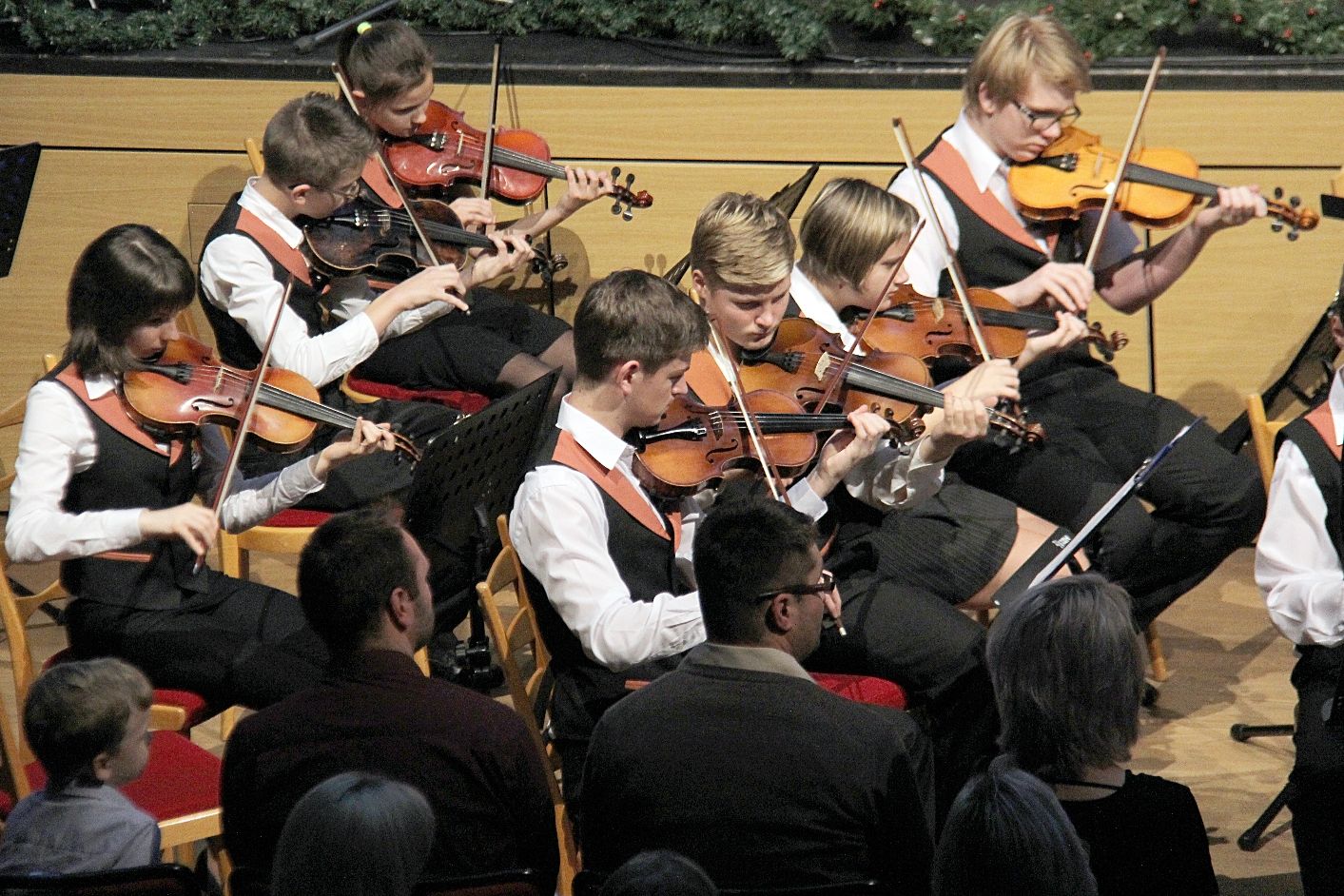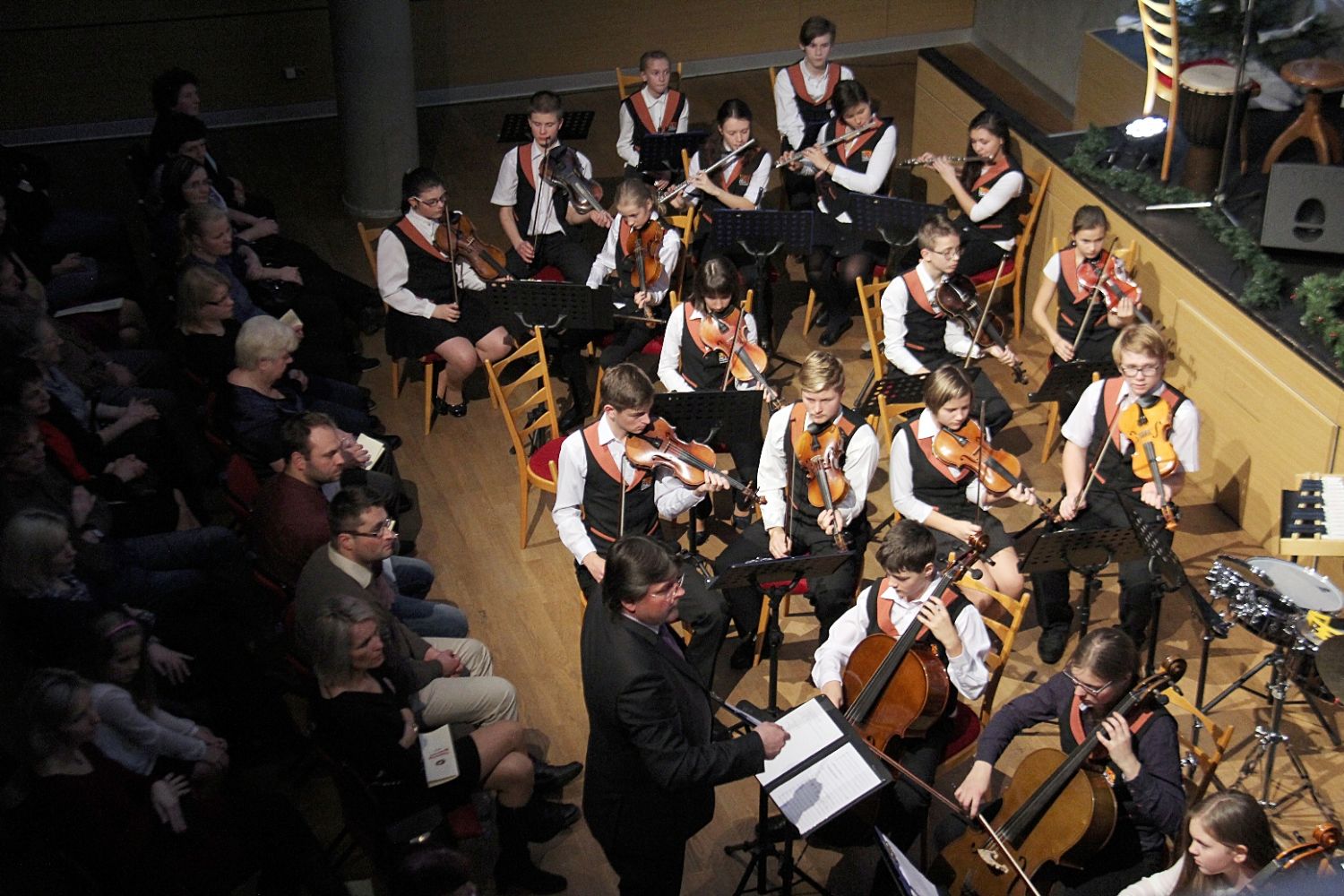 Po přestávce už patřil program výhradně základní umělecké škole. Nastoupilo něžné dechové trio vedené Klárou Kostelníkovou. A hned za nimi pěvecké sbory Andantino a Andante Heleny Valové. Ty bylo vidět na pódiu v podstatě až do samého konce pořadu, neboť spoluúčinkovaly i se Smíšeným orchestrem ZUŠ, který pod taktovkou Martina Karáska koncert uzavíral. Zazněly i skladby F. Sinatry May Way či M. Jacksona Heal The World. A ve finále tradiční koleda Narodil se Kristus Pán. Těsně před ní i s oběma moderátory programu Adélou Ubrovou a Jakubem Karbanem připil přítomným na zdraví Milan Dufek, který se s posluchači s přáním krásných Vánoc prožitých v kruhu rodinném rozloučil.
