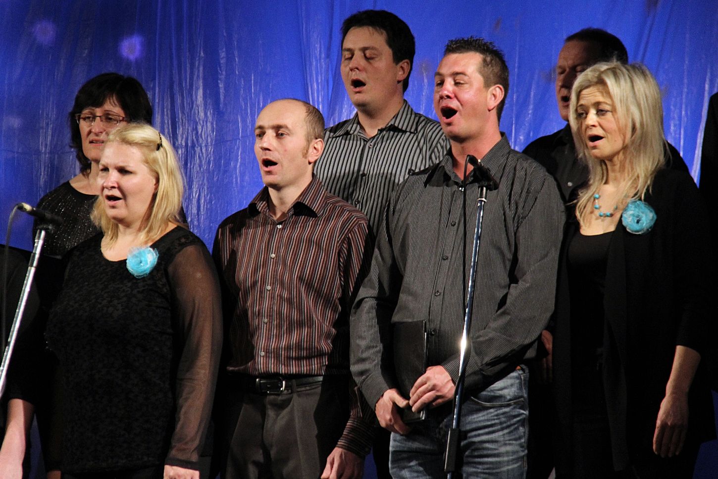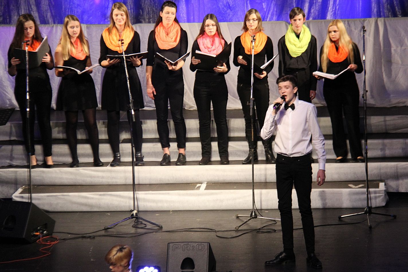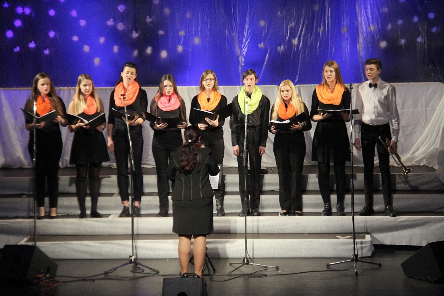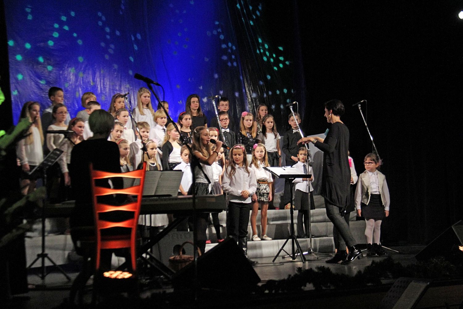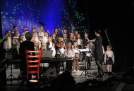 „Máme v tom našem zdejším hudebním světě tolik talentovaných dětí i dospělých, že by byla obrovská škoda je tady neprezentovat,“ podotkl ředitel pořádajícího Jupiter clubu Milan Dufek. A tak se hned úvodem na pódium velkého sálu nahrnuly desítky těch nejmenších účinkujících, kteří teprve začínají sbírat svoje první pěvecké zkušenosti. Program s dětmi ze sboru Sluníčko pro vystoupení připravily Věra Havlišová s Barborou Rösslerovou. Malinko otrkanější jsou již jejich starší kolegové ze Slunka, které vedou Andrea Svobodová s Olgou Ubrovou. Pod jejich taktovkou ostatně zazpívaly nejen Slunka, ale i Harmonie. V jejich podání zněly třeba duchovní písně. Iuventus si připravil zase spirituál. Závěr první půle koncertu patřil Tanečnímu orchestru ZUŠ pod vedením Josefa Vaňhary, který nasadil svižné tempo, jak už jsou ostatně posluchači zvyklí. Několik písní si s nimi „střihli“ zpěváci z Harmonie a Iuventusu.