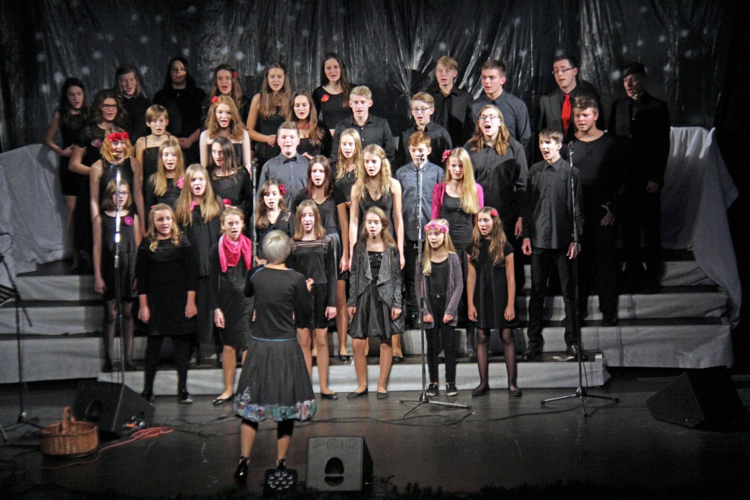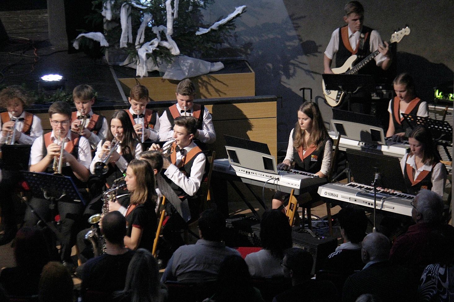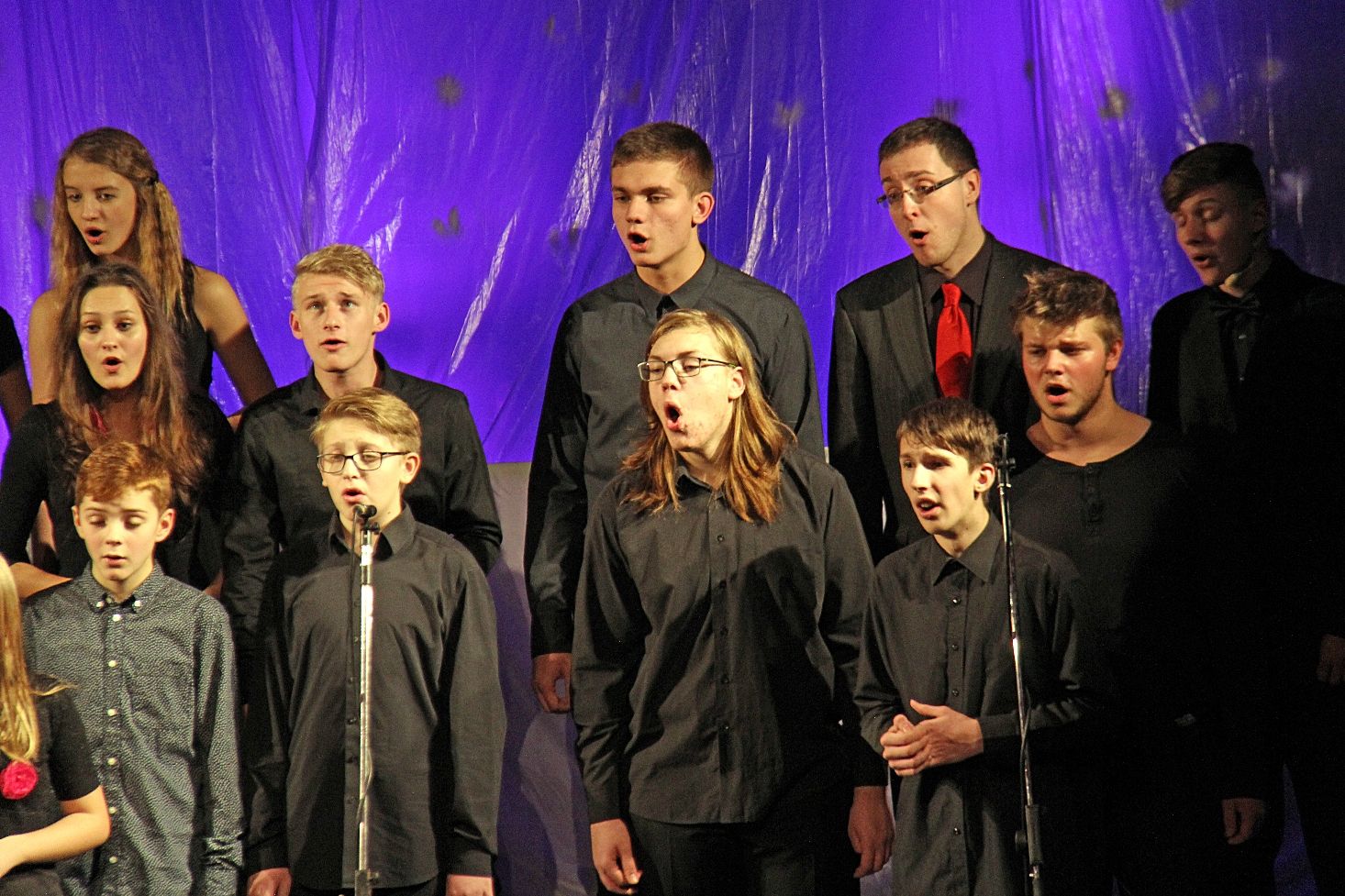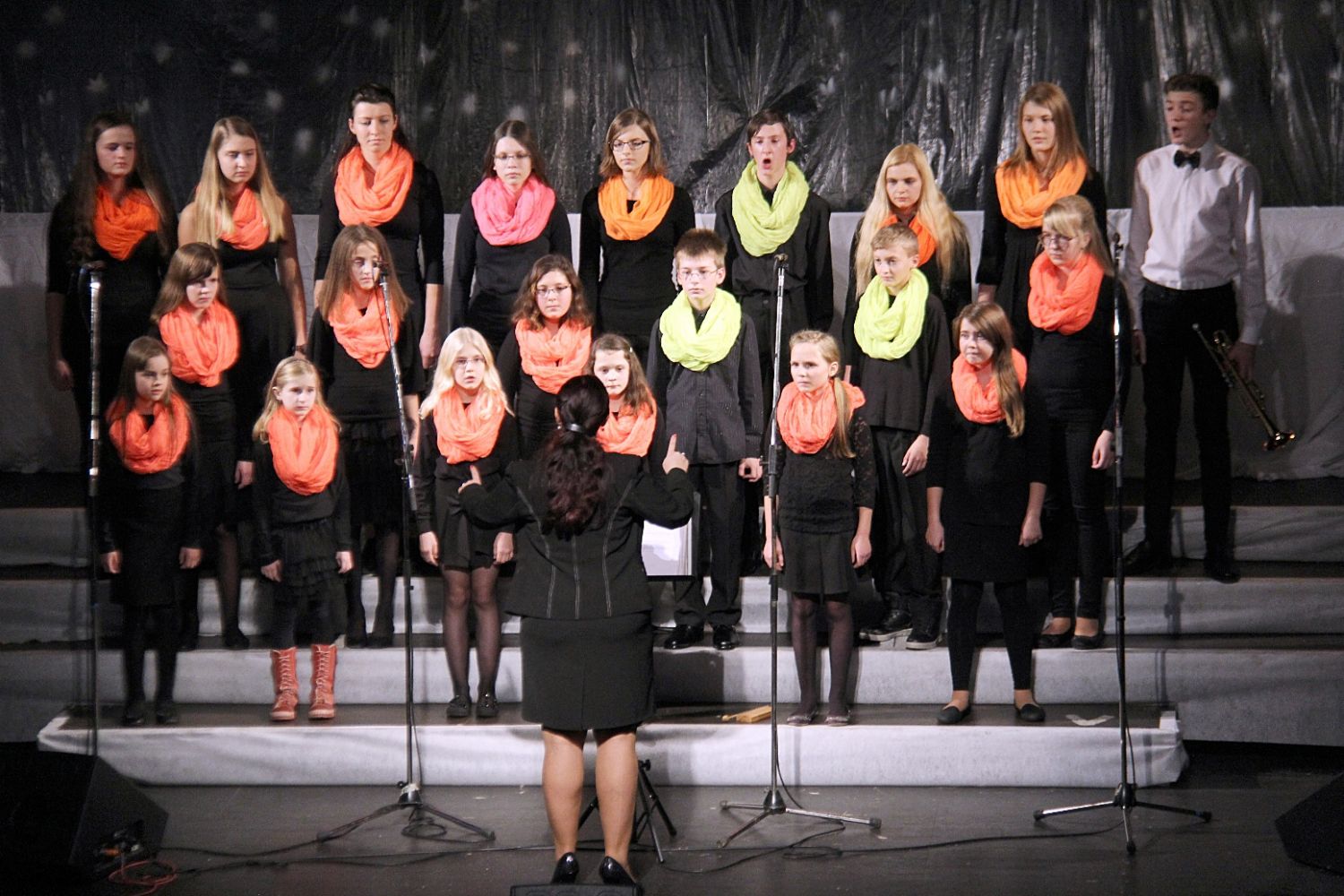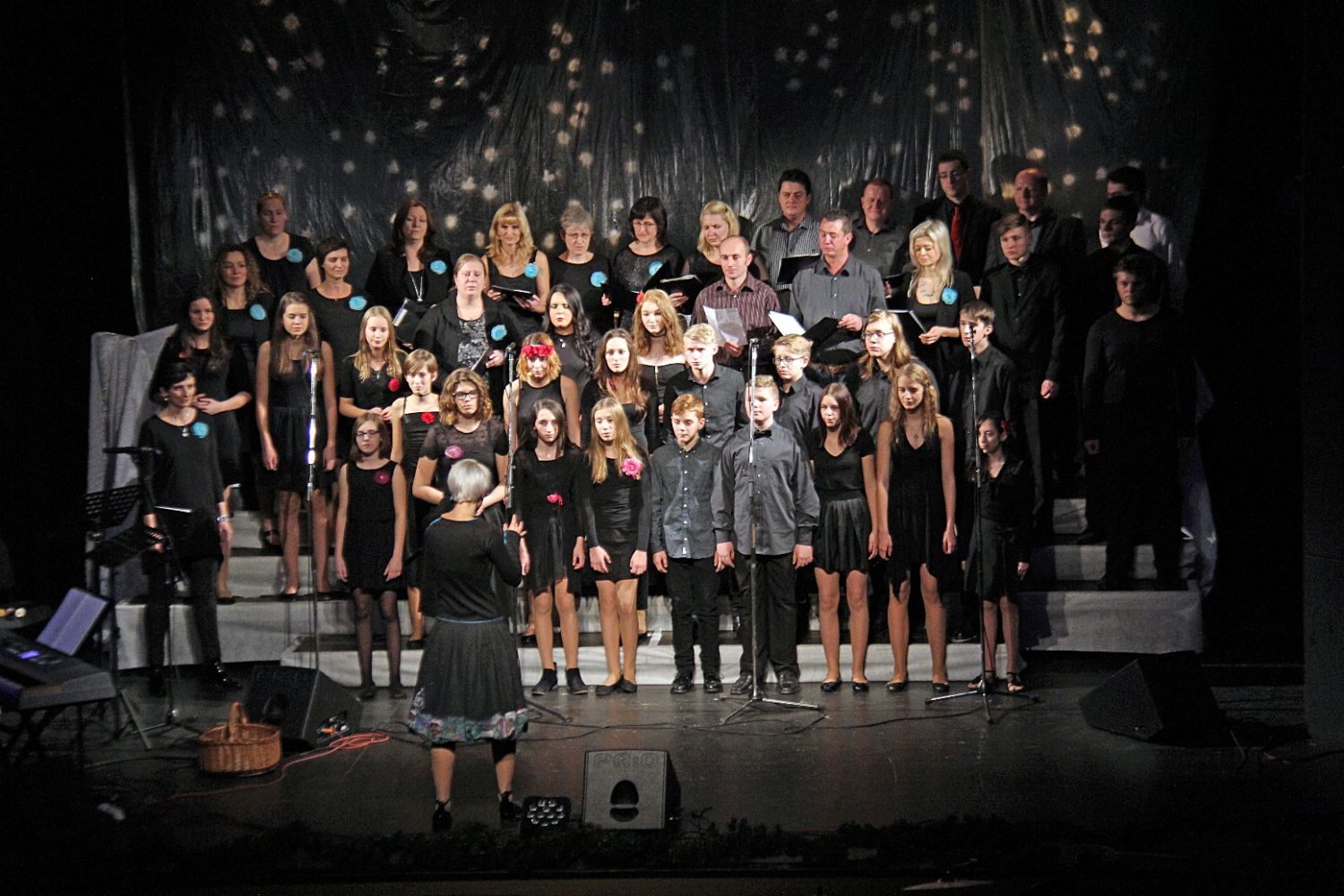 „Máme v tom našem zdejším hudebním světě tolik talentovaných dětí i dospělých, že by byla obrovská škoda je tady neprezentovat,“ podotkl ředitel pořádajícího Jupiter clubu Milan Dufek. A tak se hned úvodem na pódium velkého sálu nahrnuly desítky těch nejmenších účinkujících, kteří teprve začínají sbírat svoje první pěvecké zkušenosti. Program s dětmi ze sboru Sluníčko pro vystoupení připravily Věra Havlišová s Barborou Rösslerovou. Malinko otrkanější jsou již jejich starší kolegové ze Slunka, které vedou Andrea Svobodová s Olgou Ubrovou. Pod jejich taktovkou ostatně zazpívaly nejen Slunka, ale i Harmonie. V jejich podání zněly třeba duchovní písně. Iuventus si připravil zase spirituál. Závěr první půle koncertu patřil Tanečnímu orchestru ZUŠ pod vedením Josefa Vaňhary, který nasadil svižné tempo, jak už jsou ostatně posluchači zvyklí. Několik písní si s nimi „střihli“ zpěváci z Harmonie a Iuventusu.
