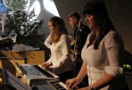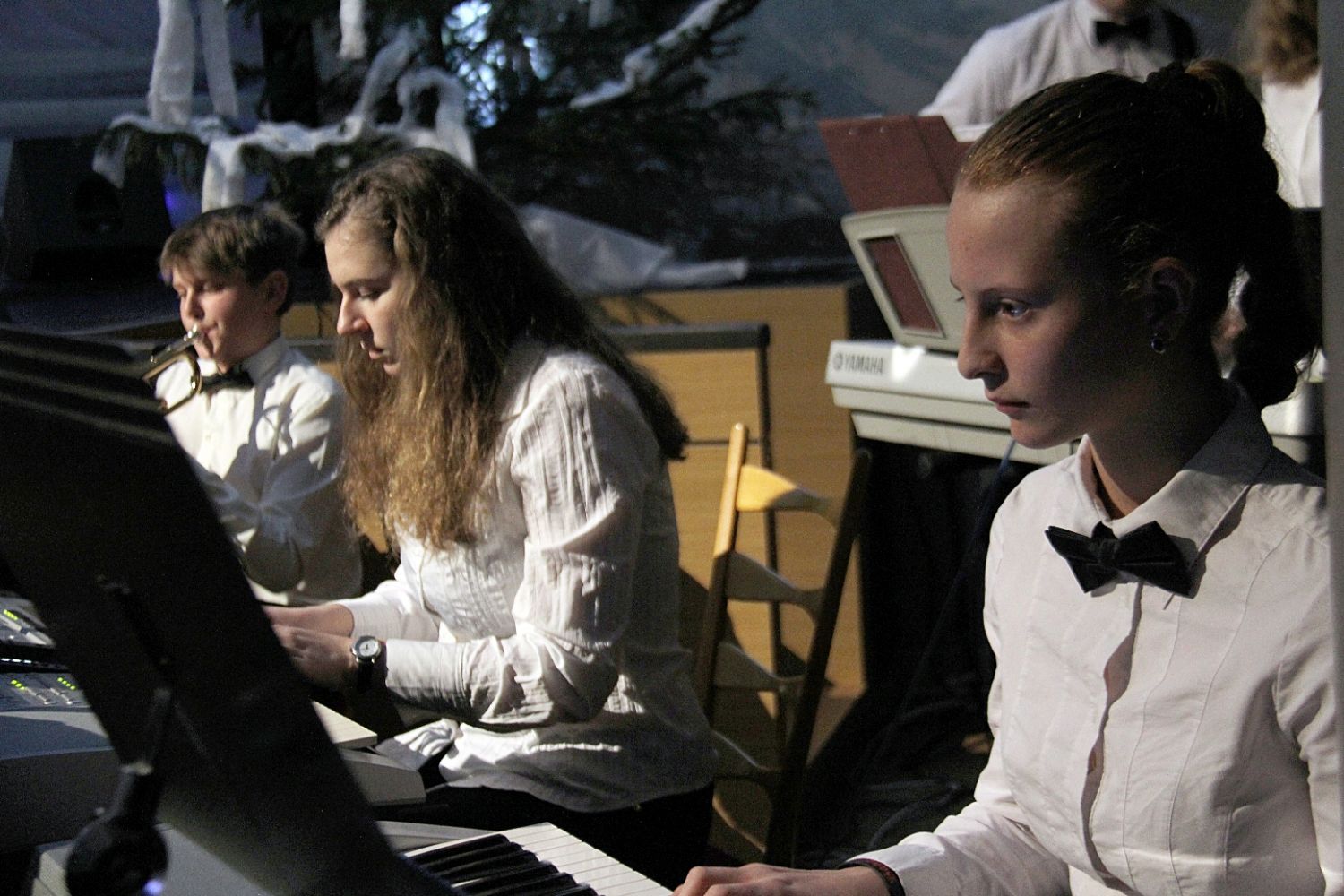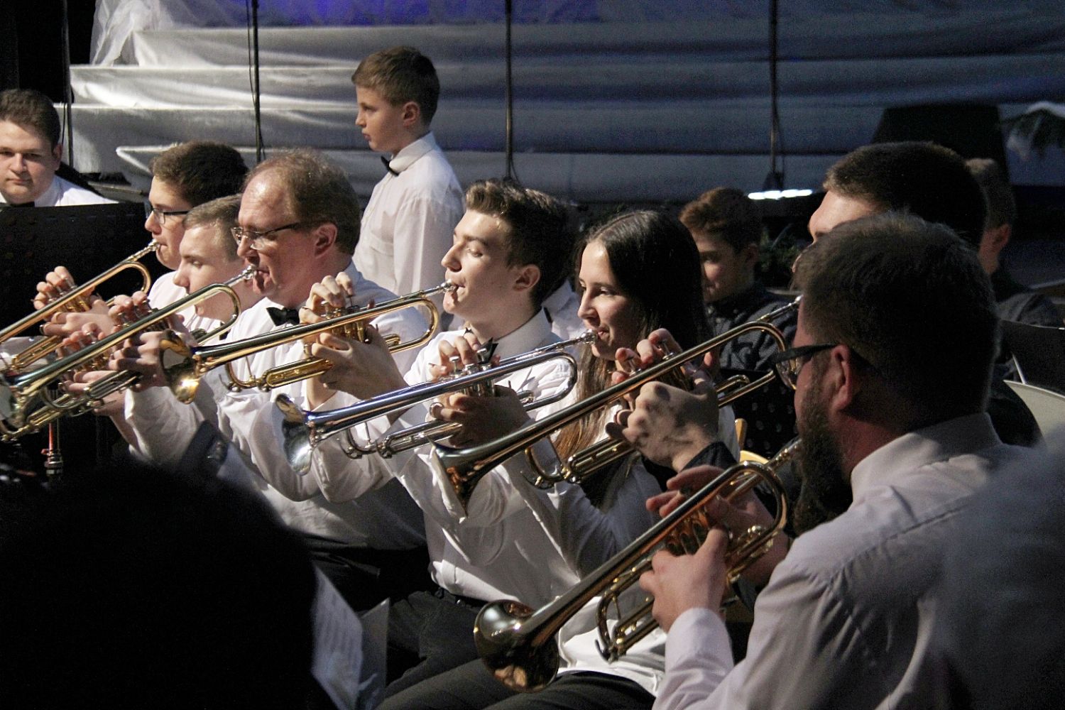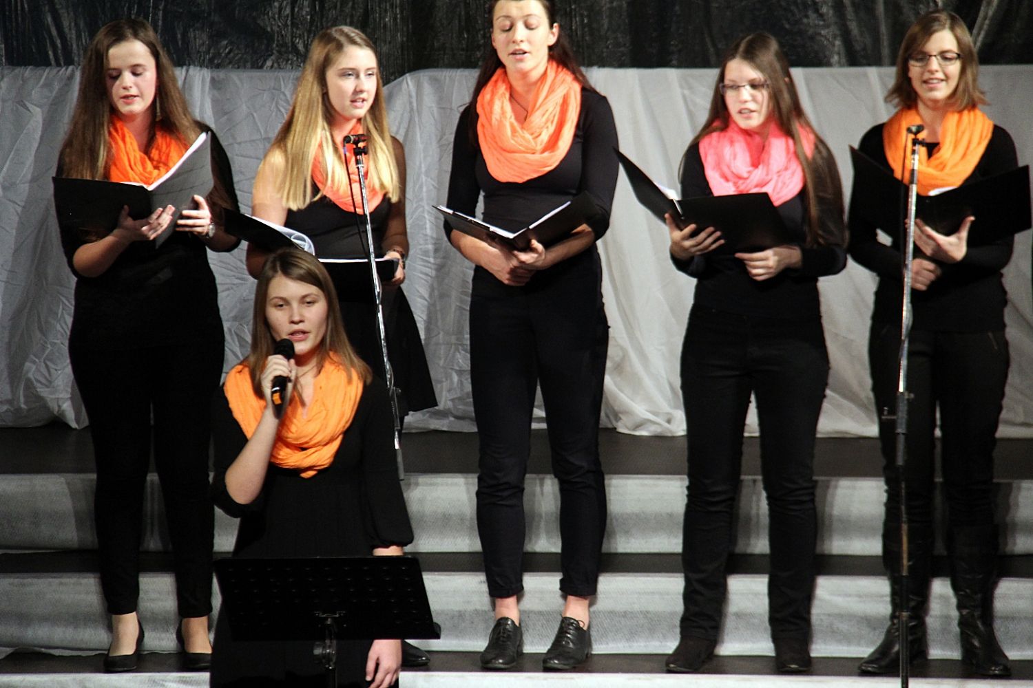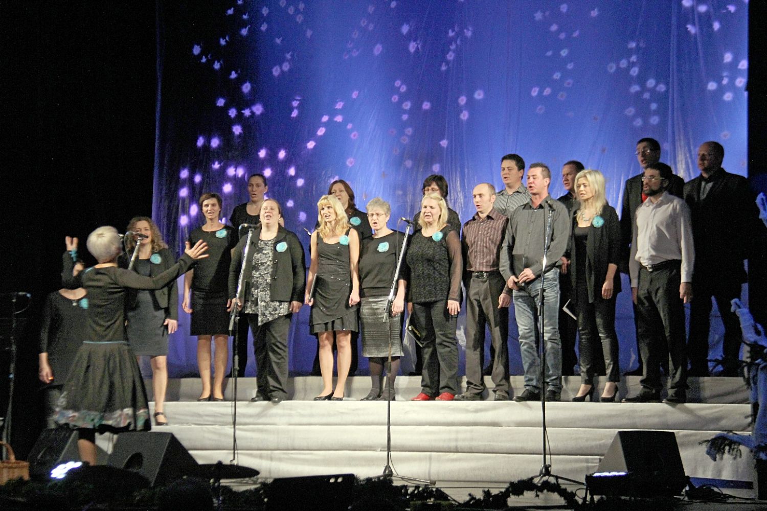 „Máme v tom našem zdejším hudebním světě tolik talentovaných dětí i dospělých, že by byla obrovská škoda je tady neprezentovat,“ podotkl ředitel pořádajícího Jupiter clubu Milan Dufek. A tak se hned úvodem na pódium velkého sálu nahrnuly desítky těch nejmenších účinkujících, kteří teprve začínají sbírat svoje první pěvecké zkušenosti. Program s dětmi ze sboru Sluníčko pro vystoupení připravily Věra Havlišová s Barborou Rösslerovou. Malinko otrkanější jsou již jejich starší kolegové ze Slunka, které vedou Andrea Svobodová s Olgou Ubrovou. Pod jejich taktovkou ostatně zazpívaly nejen Slunka, ale i Harmonie. V jejich podání zněly třeba duchovní písně. Iuventus si připravil zase spirituál. Závěr první půle koncertu patřil Tanečnímu orchestru ZUŠ pod vedením Josefa Vaňhary, který nasadil svižné tempo, jak už jsou ostatně posluchači zvyklí. Několik písní si s nimi „střihli“ zpěváci z Harmonie a Iuventusu.