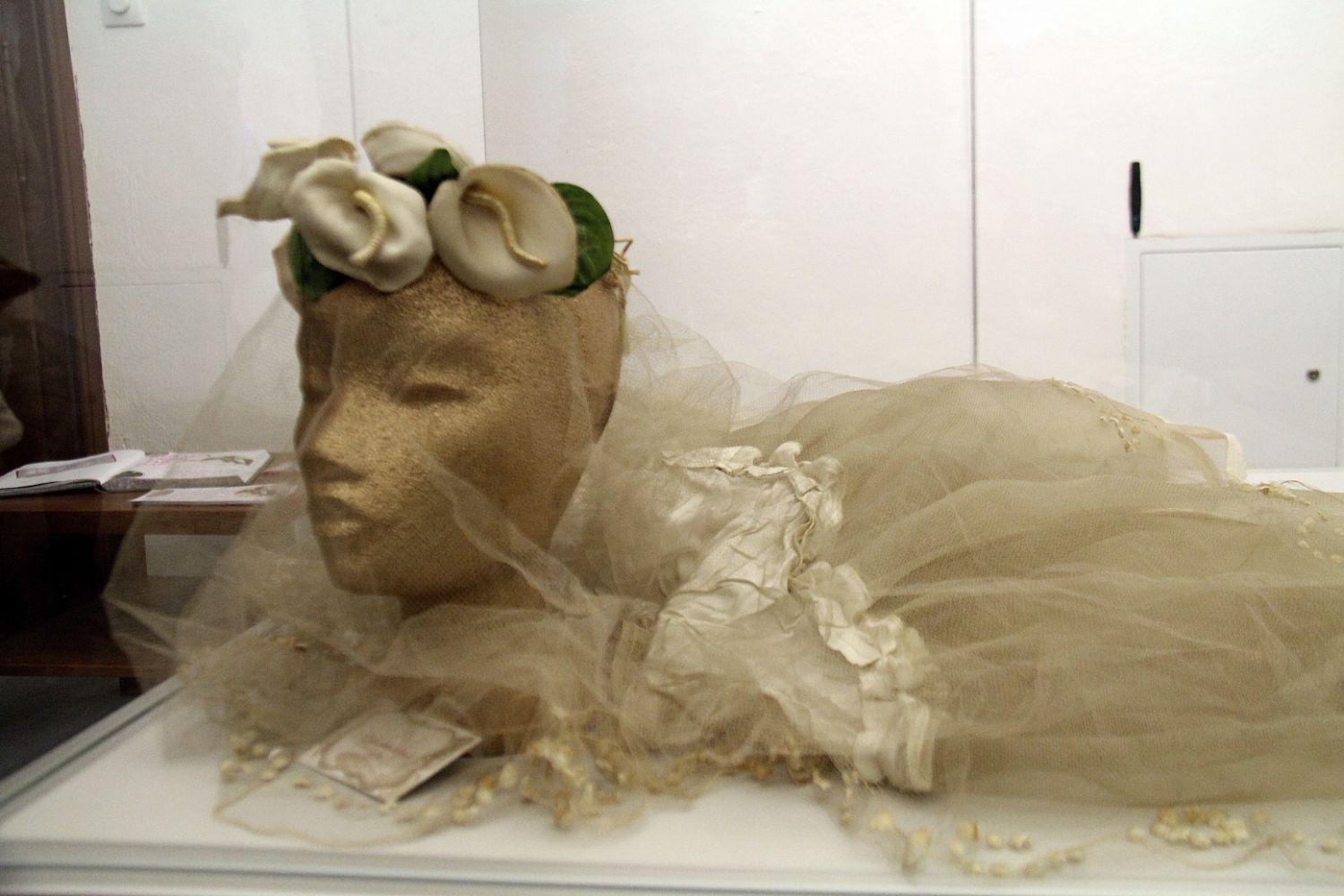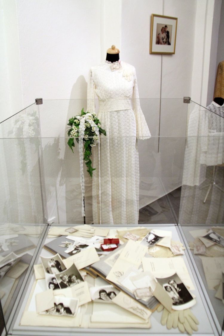 Nejstarší model svatebních šatů na výstavě v muzeu je z roku 1946